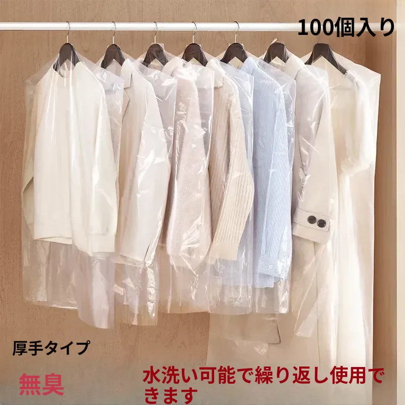 日本製 透明防塵カバー 衣類収納バッグ - ハンガー式コート・スーツ・ダウンジャケット用、家での衣類整理に最適!スッキリとした収納で、いつでも清潔な衣服を保ちます。