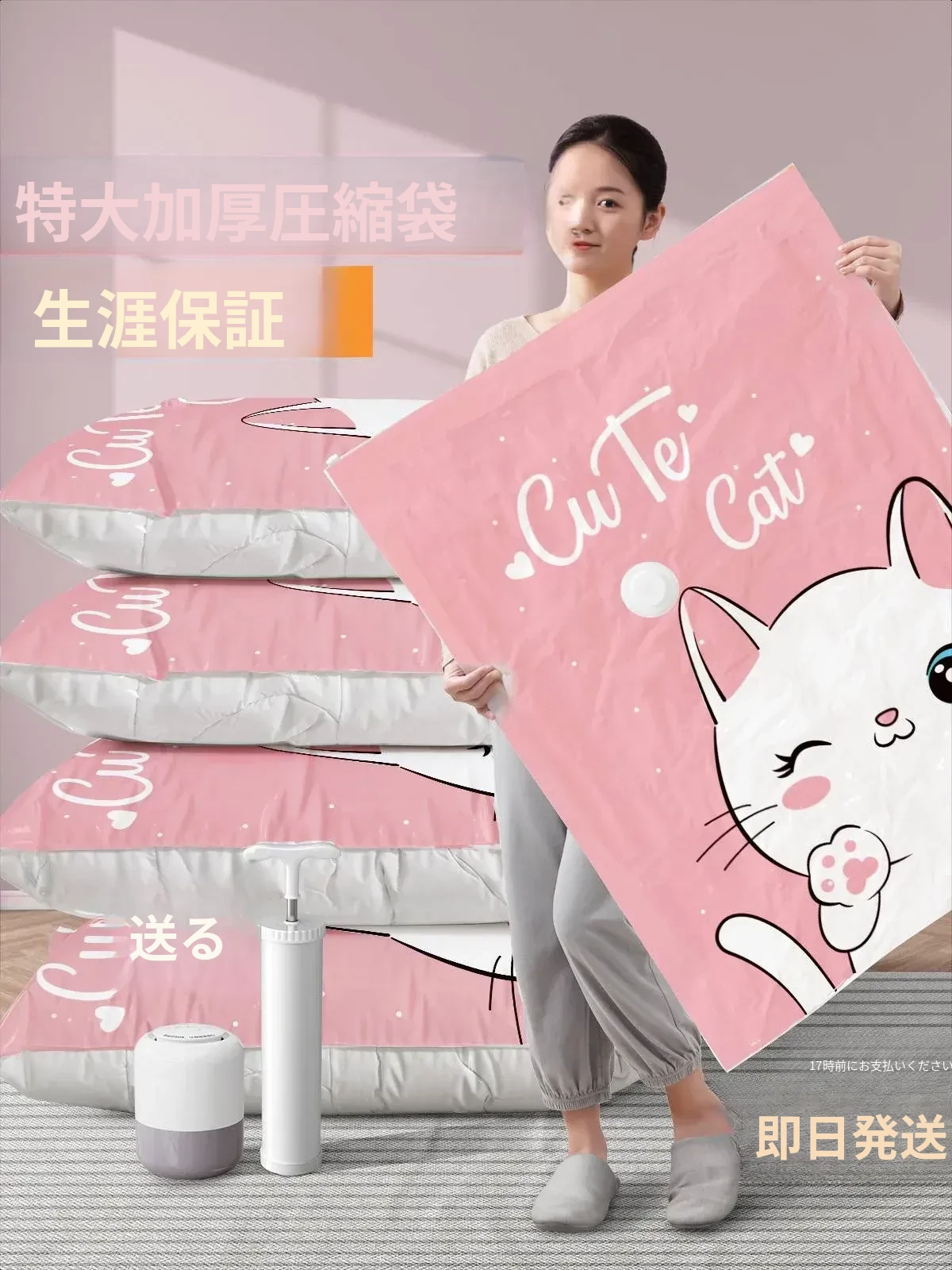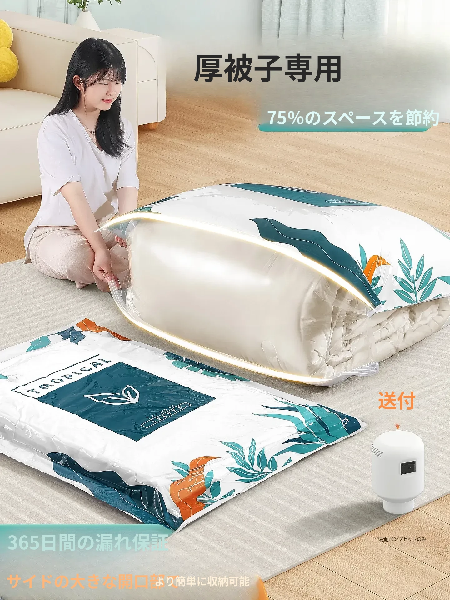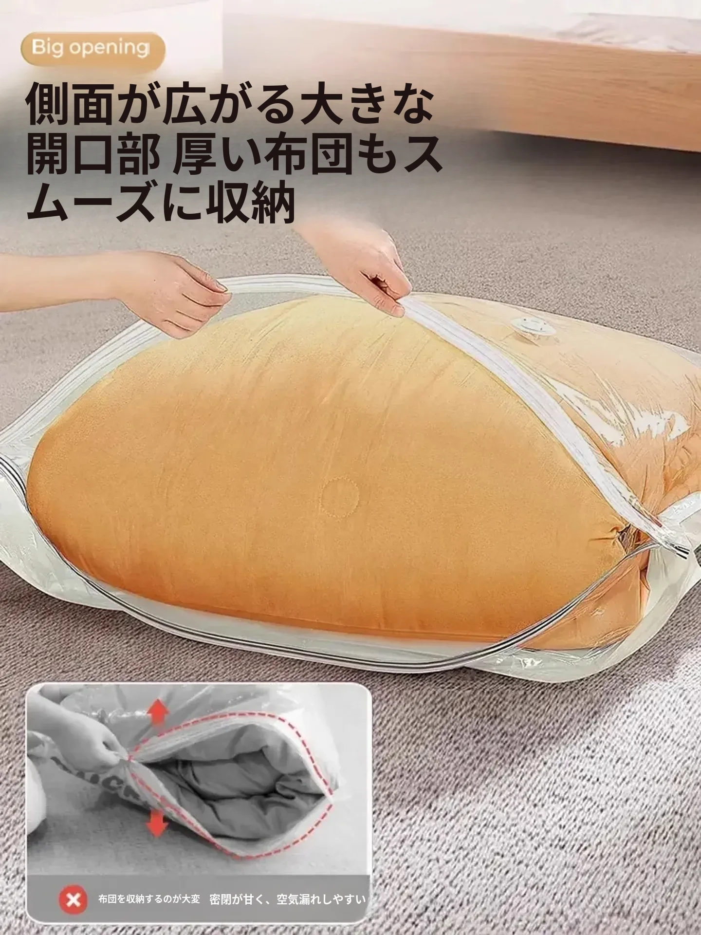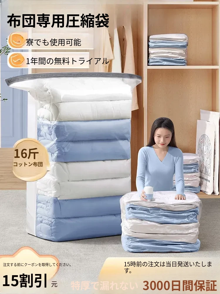 超厚真空圧縮袋!布団や衣類をスマートに収納!空気を抜いて省スペース、羽毛布団やダウンジャケット専用で安心・便利!整理整頓が簡単に!