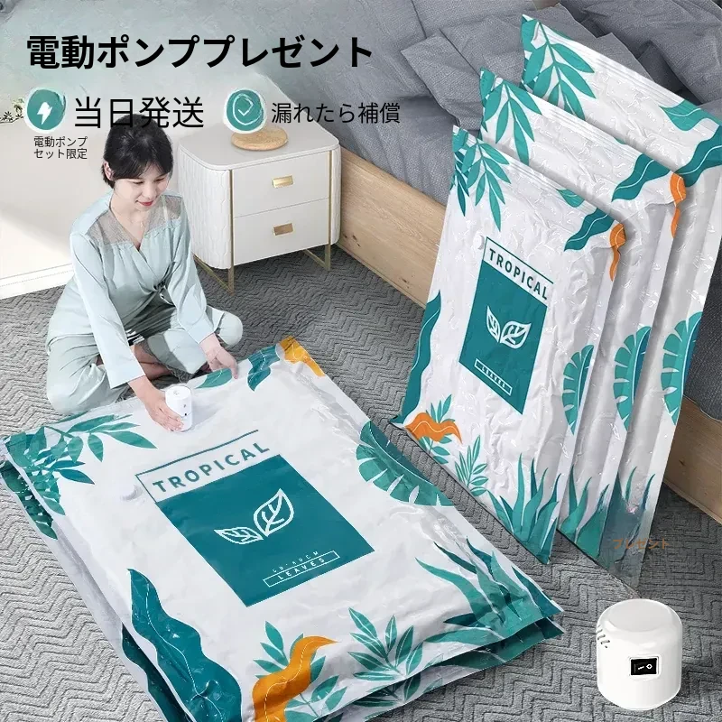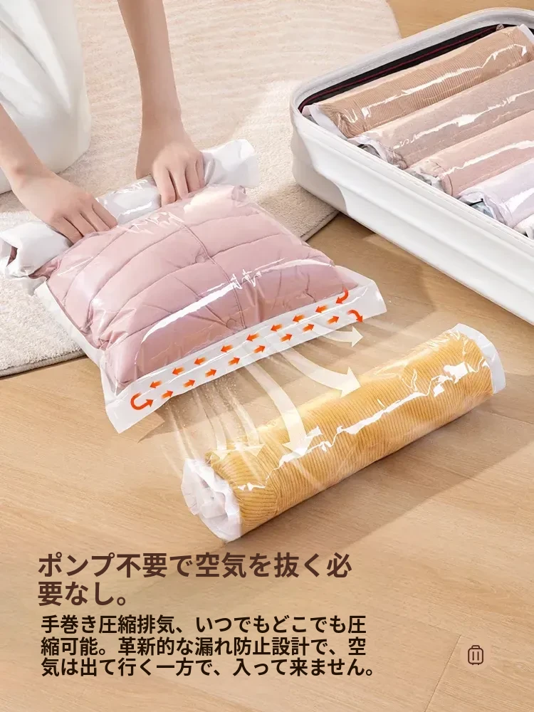 真空圧縮袋 - 布団や衣類、ダウンジャケットに最適!旅行や収納に便利な特別設計の圧縮袋。スペースを節約し、持ち運びも簡単!あなたの荷物をスッキリ整理しましょう!