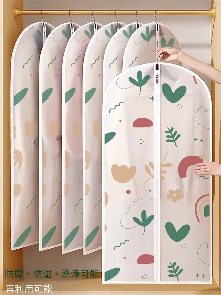 衣類を守る!透明防塵カバー付きハンガー式衣類収納袋 - 家庭用湿気対策、大衣やダウンジャケット、スーツも安心収納!おしゃれで実用的な衣類保護アイテム。