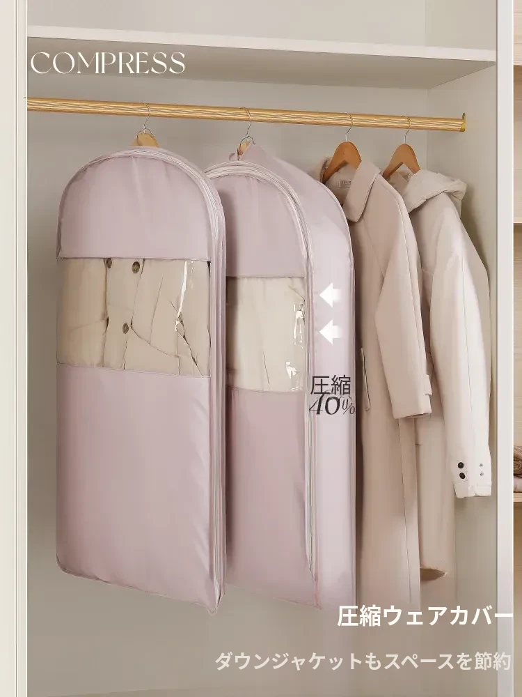 防塵カバー付き衣類収納袋|コート・スーツ・ダウンジャケットをしっかり守る透明バッグ|家での整理整頓に最適!あなたの衣類をホコリから守り、清潔感をキープします!