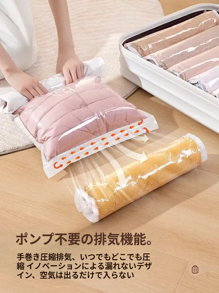 旅行用真空圧縮袋|衣類・ダウンジャケット専用|手巻きで簡単収納|スーツケースにぴったり|スペースを節約し、旅行をもっと快適に!