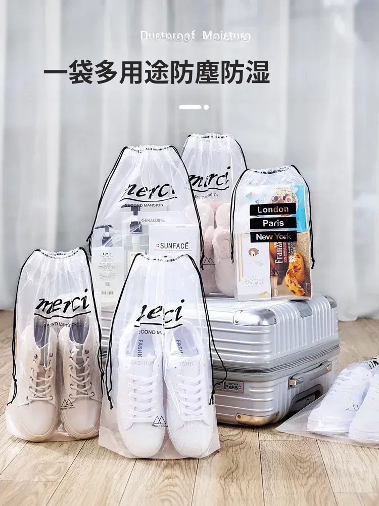 旅行に最適!透明な防塵&防水シューズ収納袋 - シューズを守るおしゃれな巾着袋!湿気や汚れから大切な靴をしっかりガードし、スーツケースやクローゼットでの整理整頓も簡単に。旅行や家庭用にぴったり!