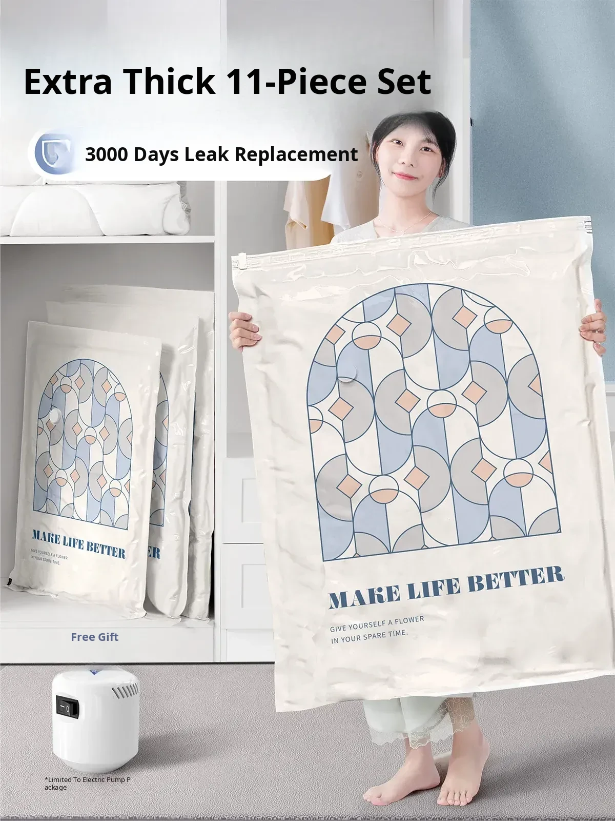 Vacuum Storage Bags for Home Use - Space-Saving Compression Bags for Comforters, Down Jackets, and Clothes with Electric Pump - Thick and Durable Design for Efficient Organization