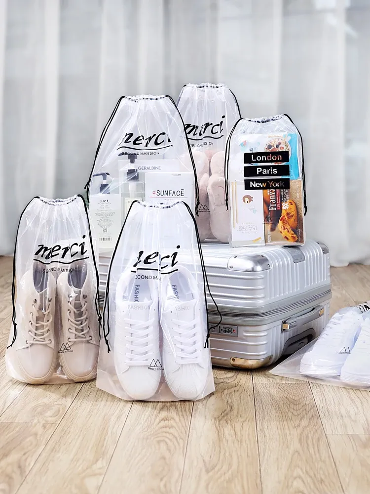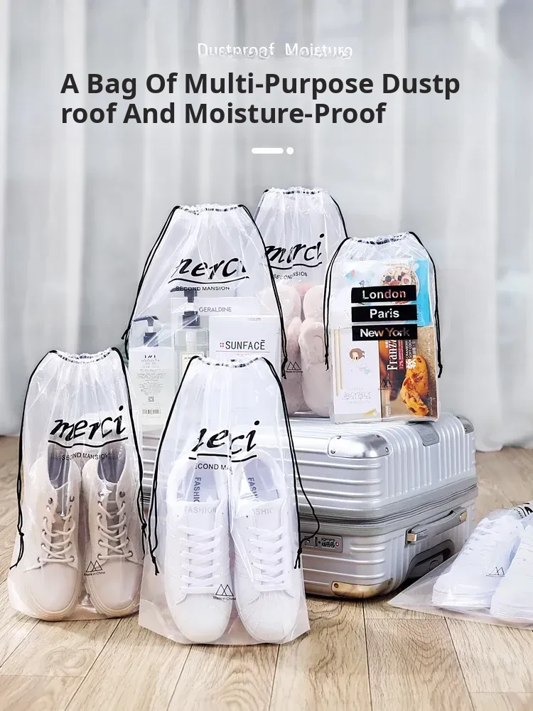 Travel Shoe Storage Bag - Waterproof, Dustproof, and Moisture-Proof Pouch for Organizing Shoes at Home and on the Go - Transparent Drawstring Design for Easy Access and Packing