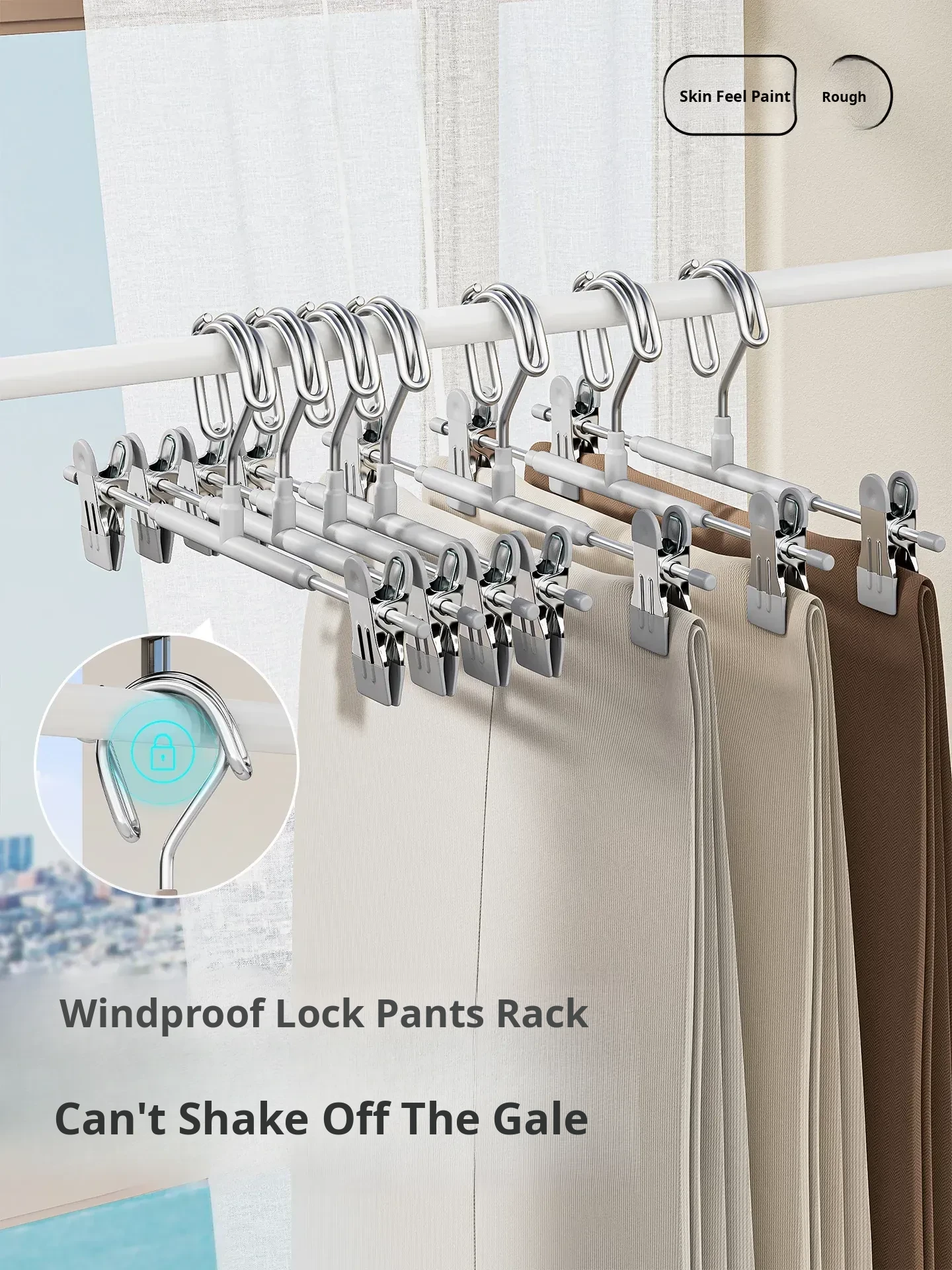 German Quality Automatic Locking Windproof Clothes Hanger - Anti-Fall, No Marks, No Bumps - Ideal for High-Rise Drying at Home