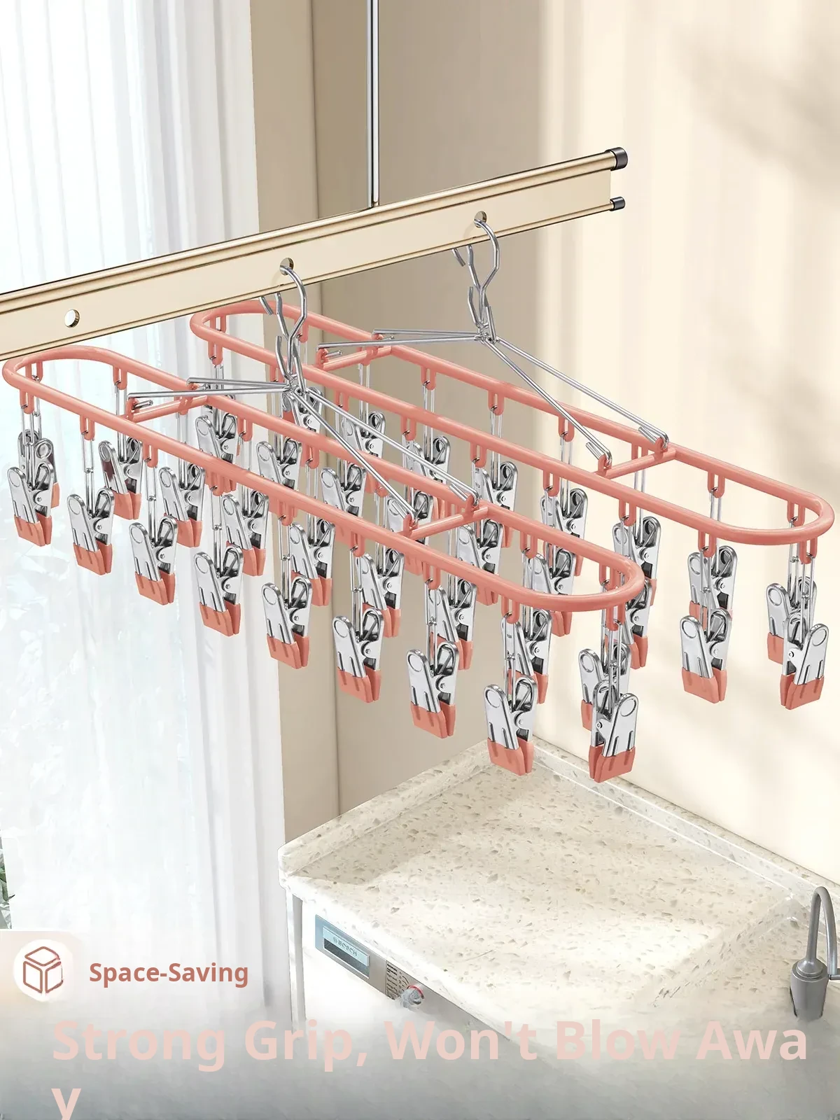 Professional Organizer's Recommended Sock Drying Rack - No Trace, Non-Slip Clothes Hanger for Underwear and Socks - Multi-Clip Balcony Drying Solution for Effortless Laundry!