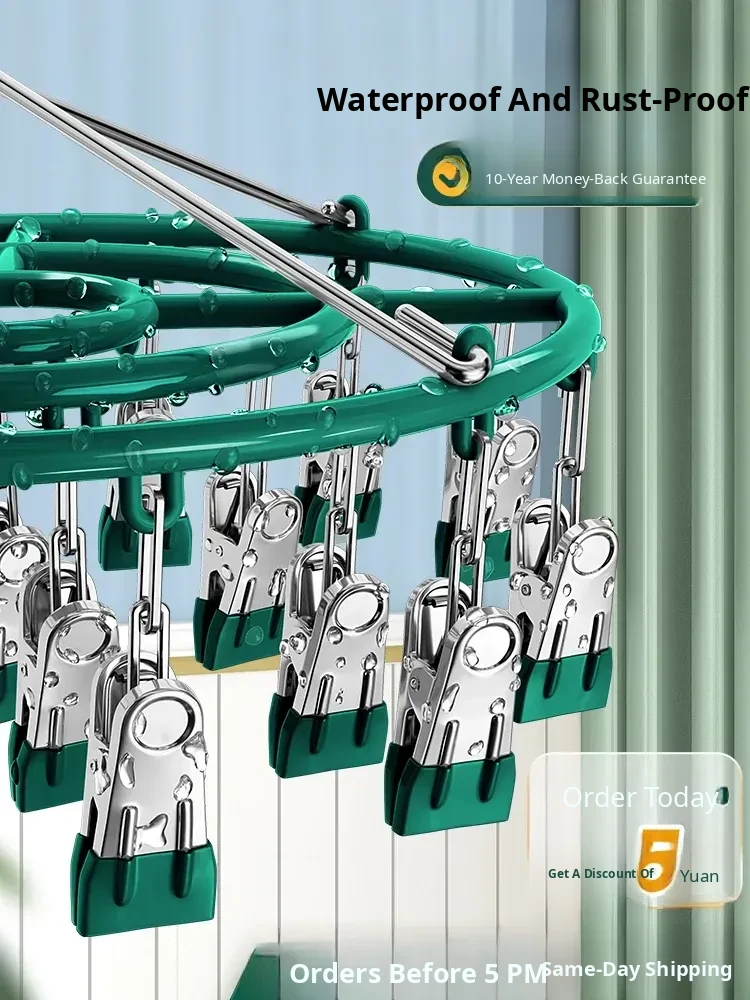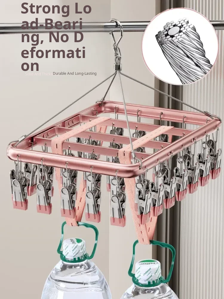 Stainless Steel Sock Drying Rack with Multi-Clips - No Trace Indoor/Outdoor Clothes Hanger for Underwear and Socks, Versatile Windproof Balcony Solution!
