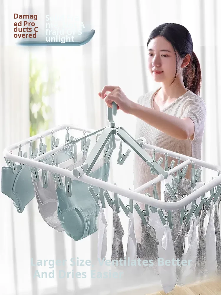 Foldable Multi-Clip Clothes Drying Rack - Windproof Sock Clips for Baby Socks, Perfect for Indoor and Balcony Drying of Underwear and Lingerie - The Ultimate Drying Solution!