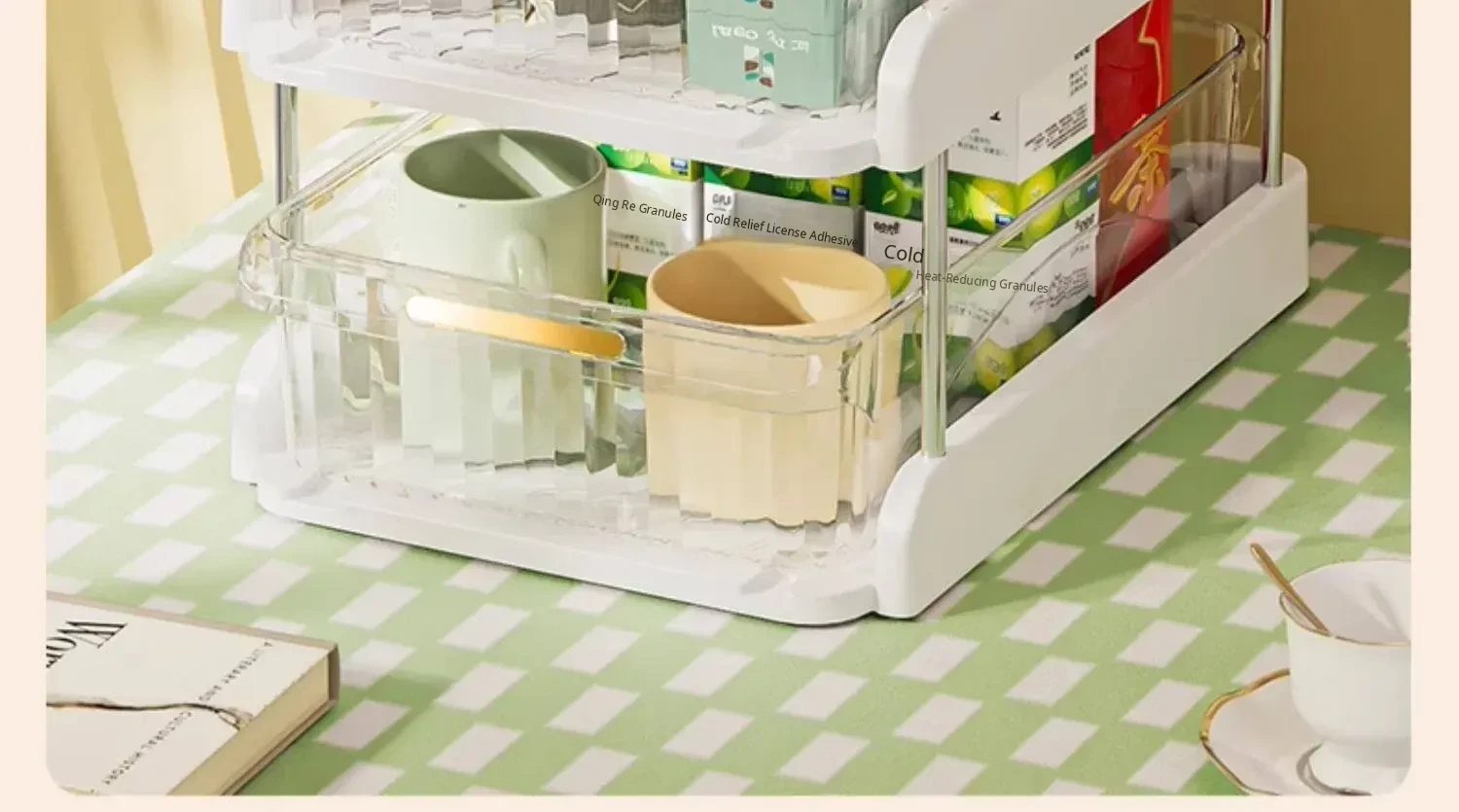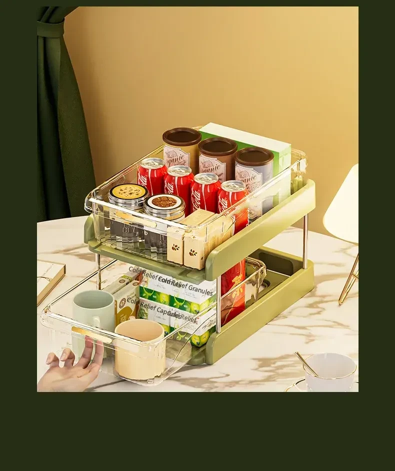 Desktop Storage Rack - Ultimate Organizer for Snacks and Essentials, Perfect for Dining Tables and Living Room Surfaces, Includes Drawer for Cup and Item Organization