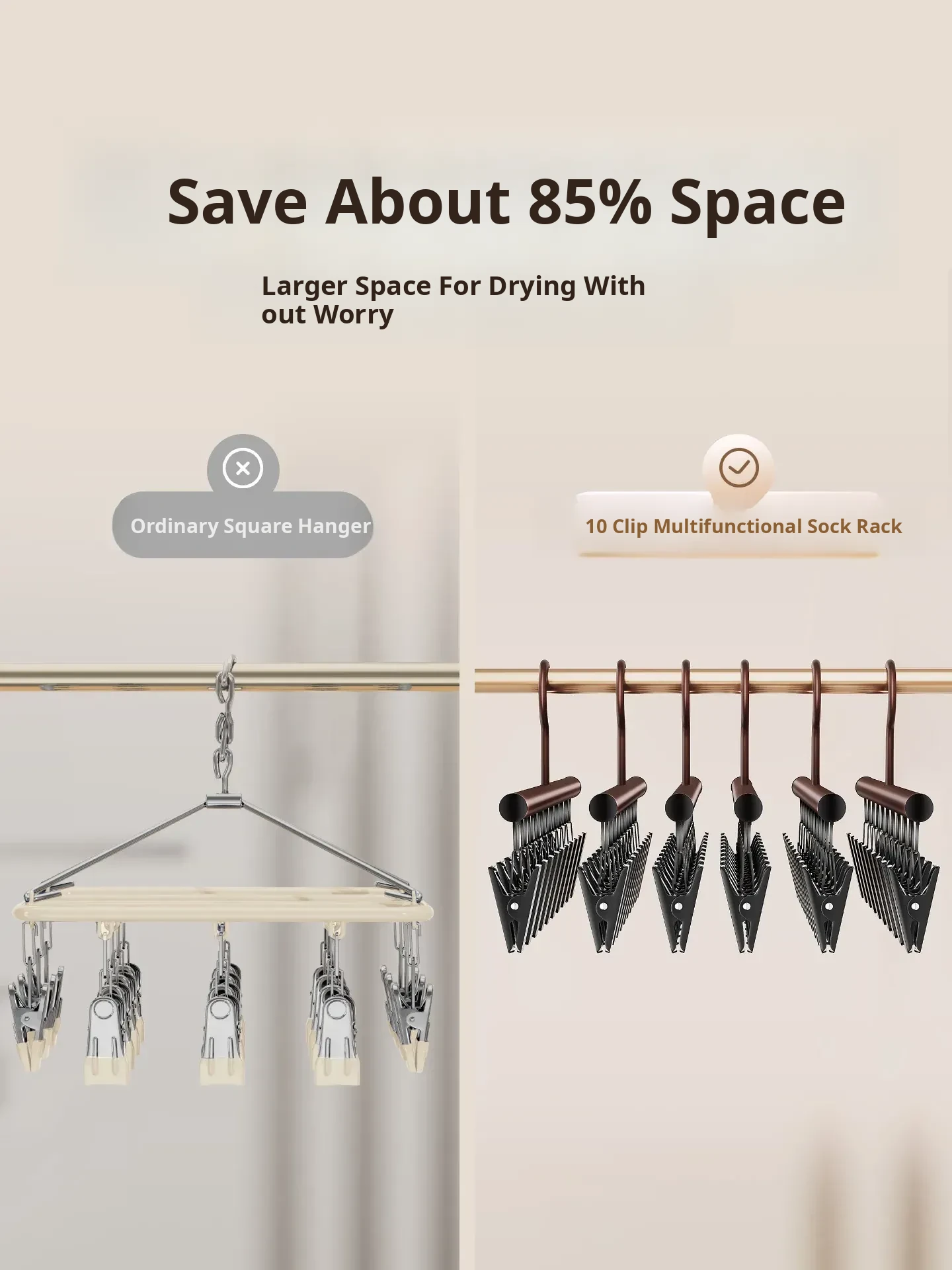 Organizer's Choice: No-Slip Sock and Underwear Drying Rack - Versatile Clothes Hanger with Multiple Clips for Balcony Use - The Ultimate Sock Drying Solution!