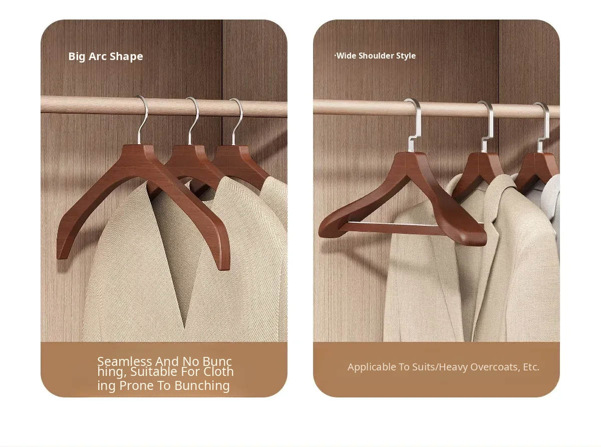 Premium Wooden Hangers for Home Use - No-Slip Solid Wood Coat Hangers, Perfect for Leather Jackets and Suits, Ideal for High-End Hotels