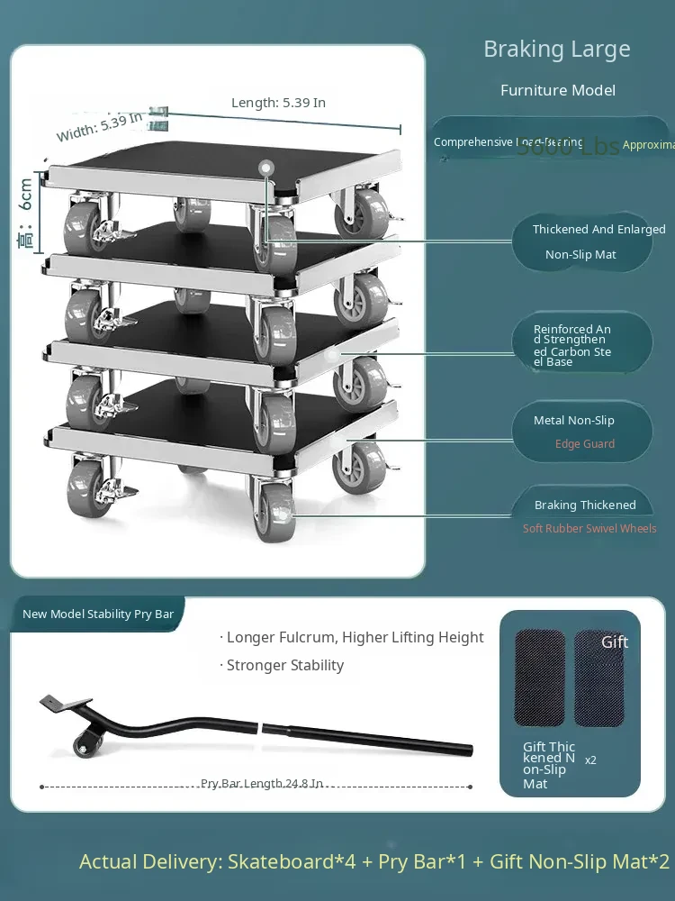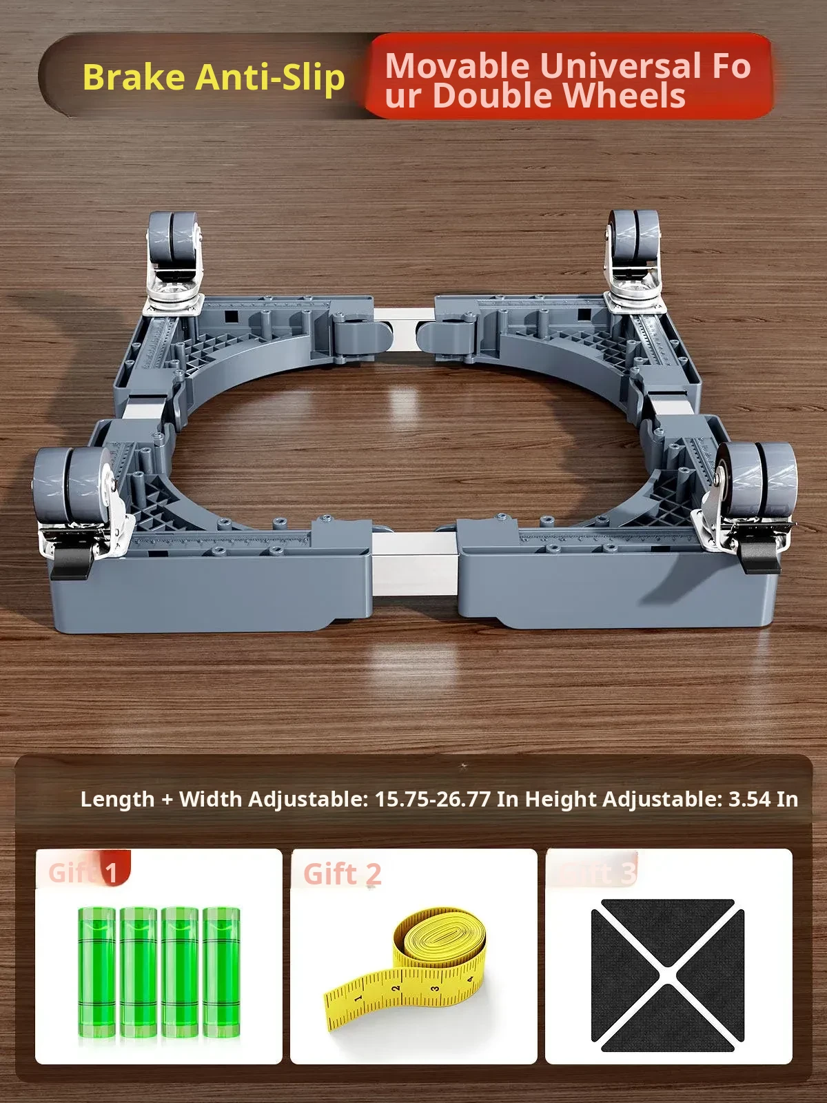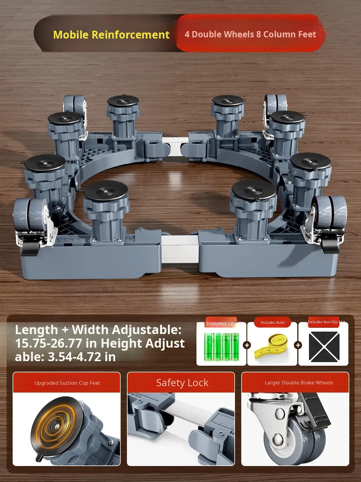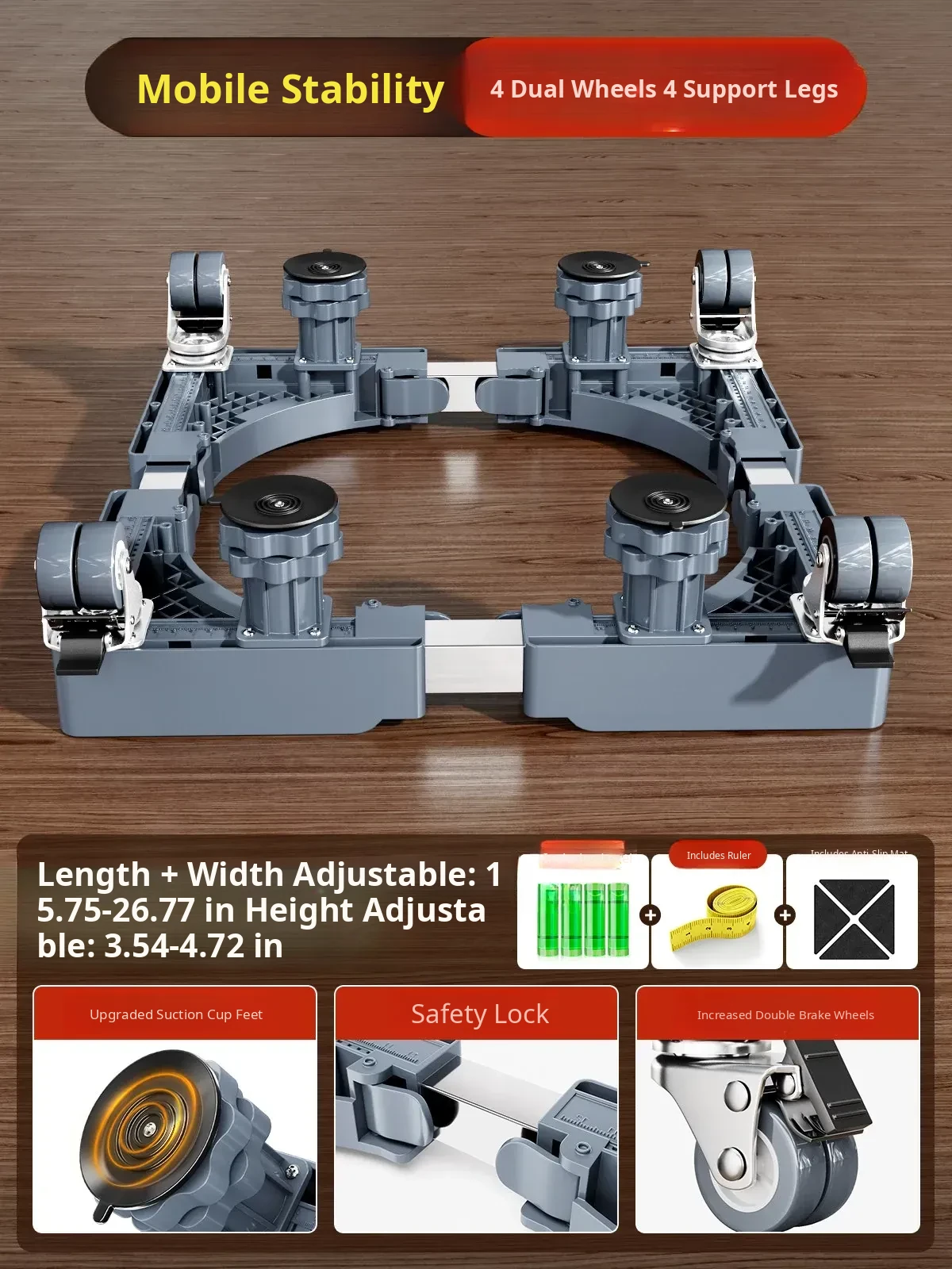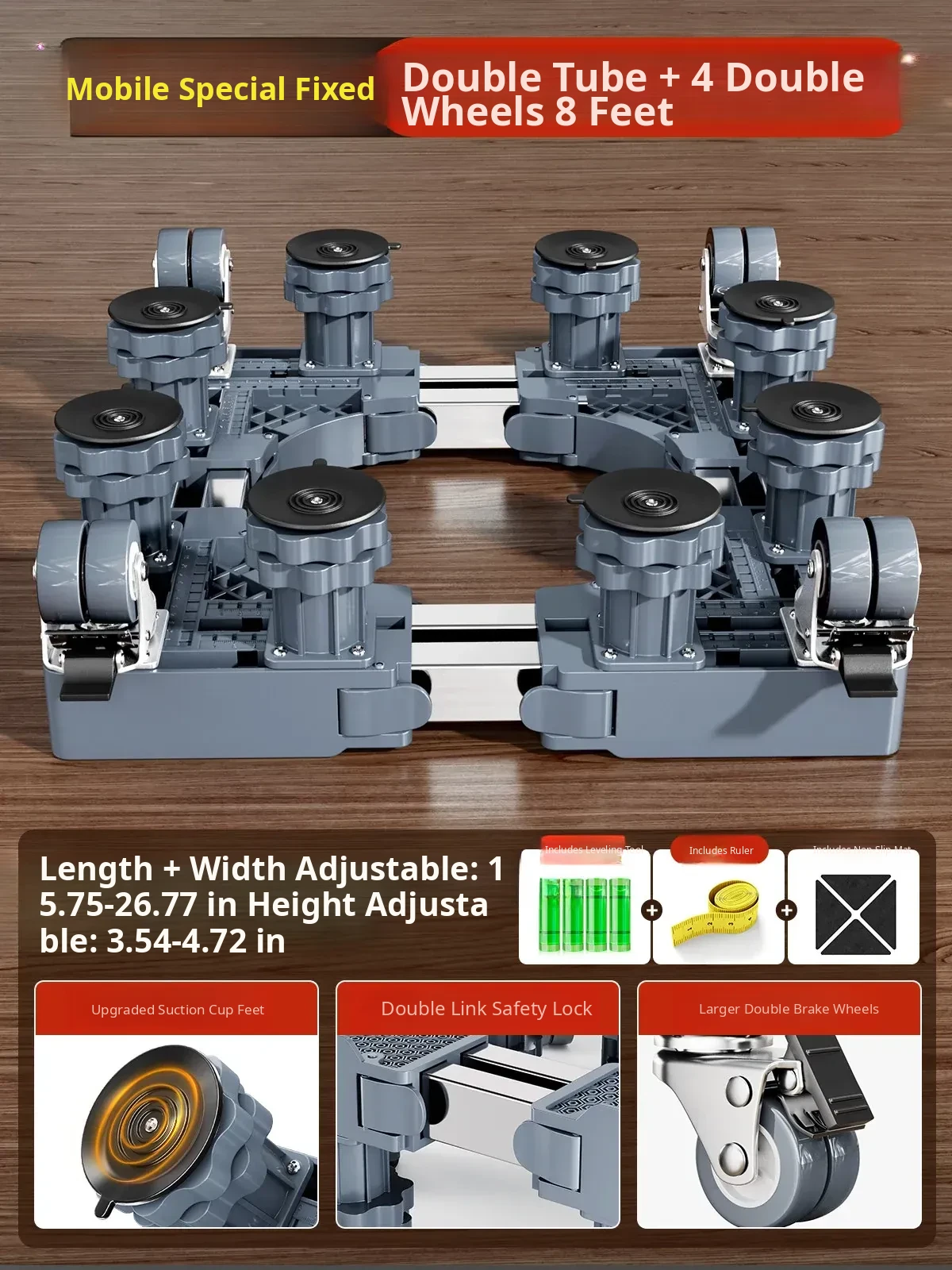 【Mobile & Stable】4 Dual-Wheel Casters with Brakes + 4 Support Legs + Dual Anti-Vibration Locks