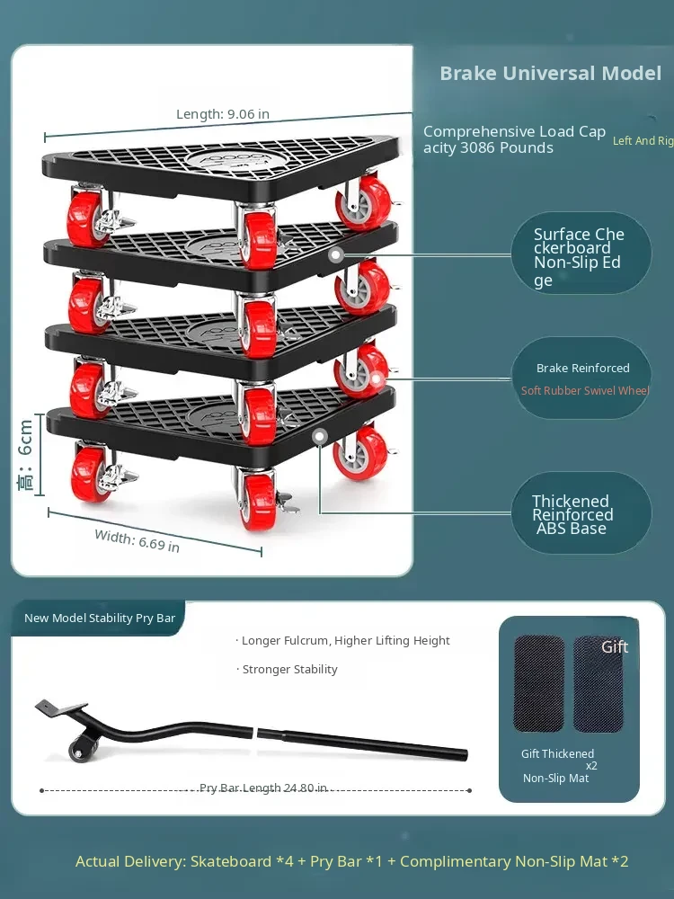 [Movable Special Model] 4 Double Wheels with Double Brakes + Double Tubes + 8 Pillars + Double Anti-Shock Locks