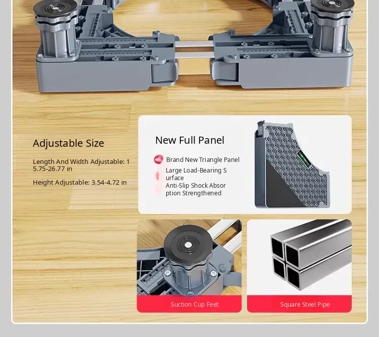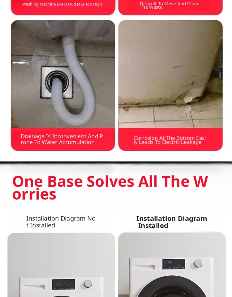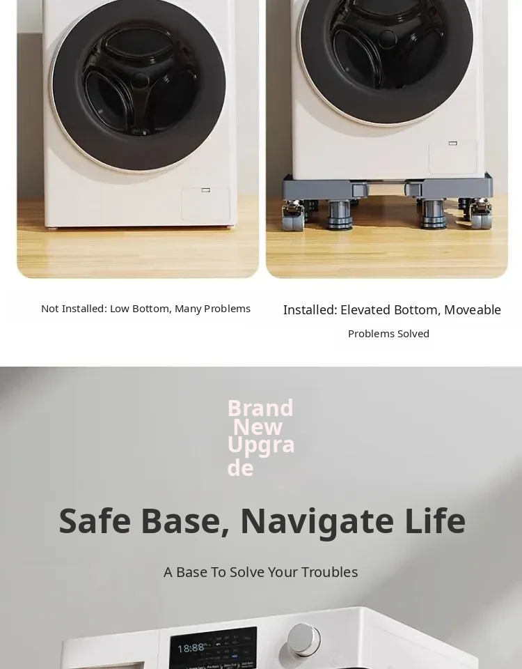Siemens Washing Machine Base with Movable Foot Pads and Universal Wheels - Elevating Steel Frame, Waterproof and Shockproof Specialized Support Stand
