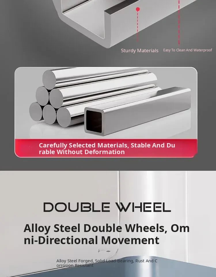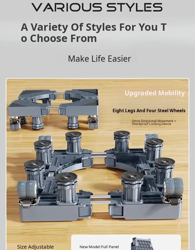 【Mobile & Stable】4 Double-Wheel Casters with Dual Brakes + 8 Support Legs + Dual Anti-Vibration Locks