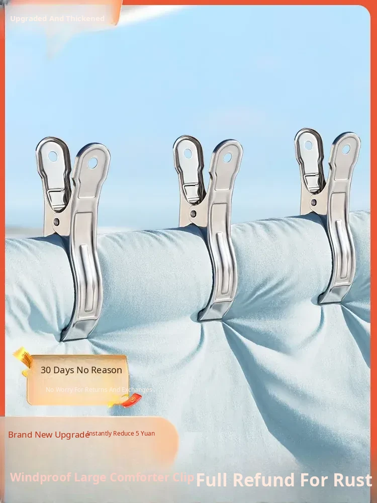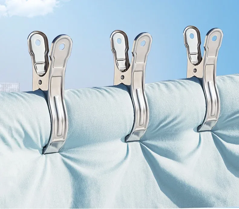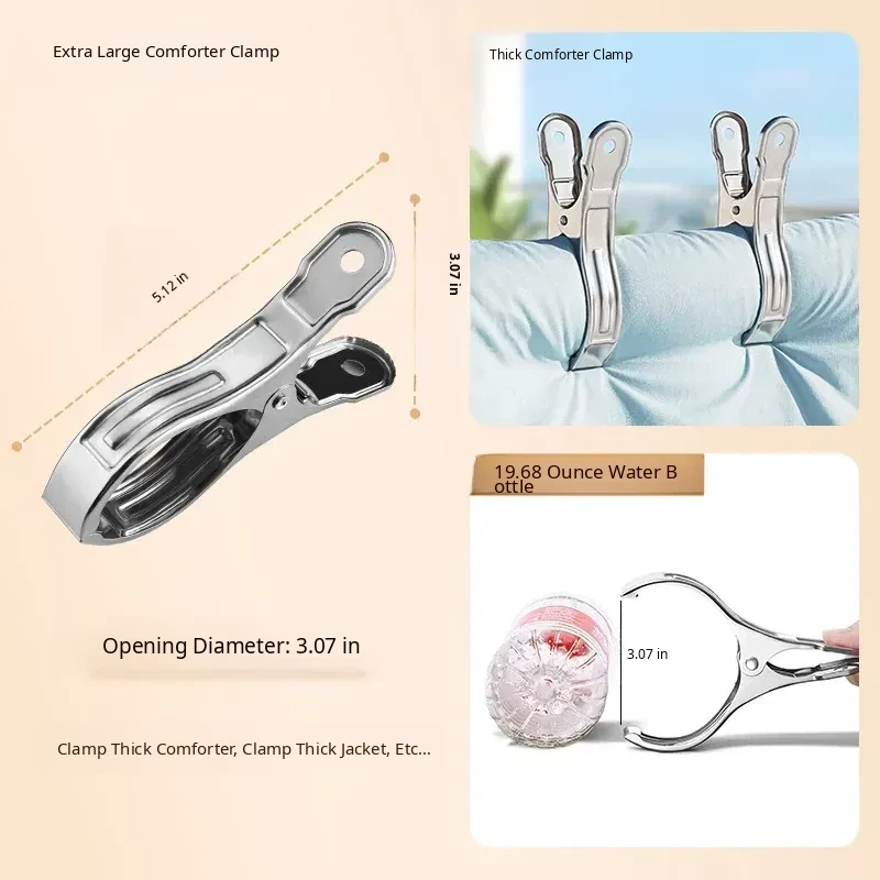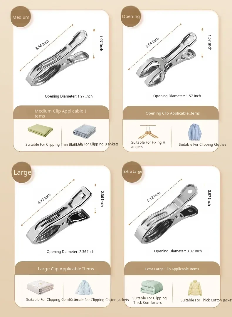 Stainless Steel Blanket Clips - Heavy-Duty Non-Slip Clothes Pins, Windproof and Ideal for Indoor/Outdoor Use, Perfect for Securing Bedding and Laundry - Extra Large Size for Maximum Hold