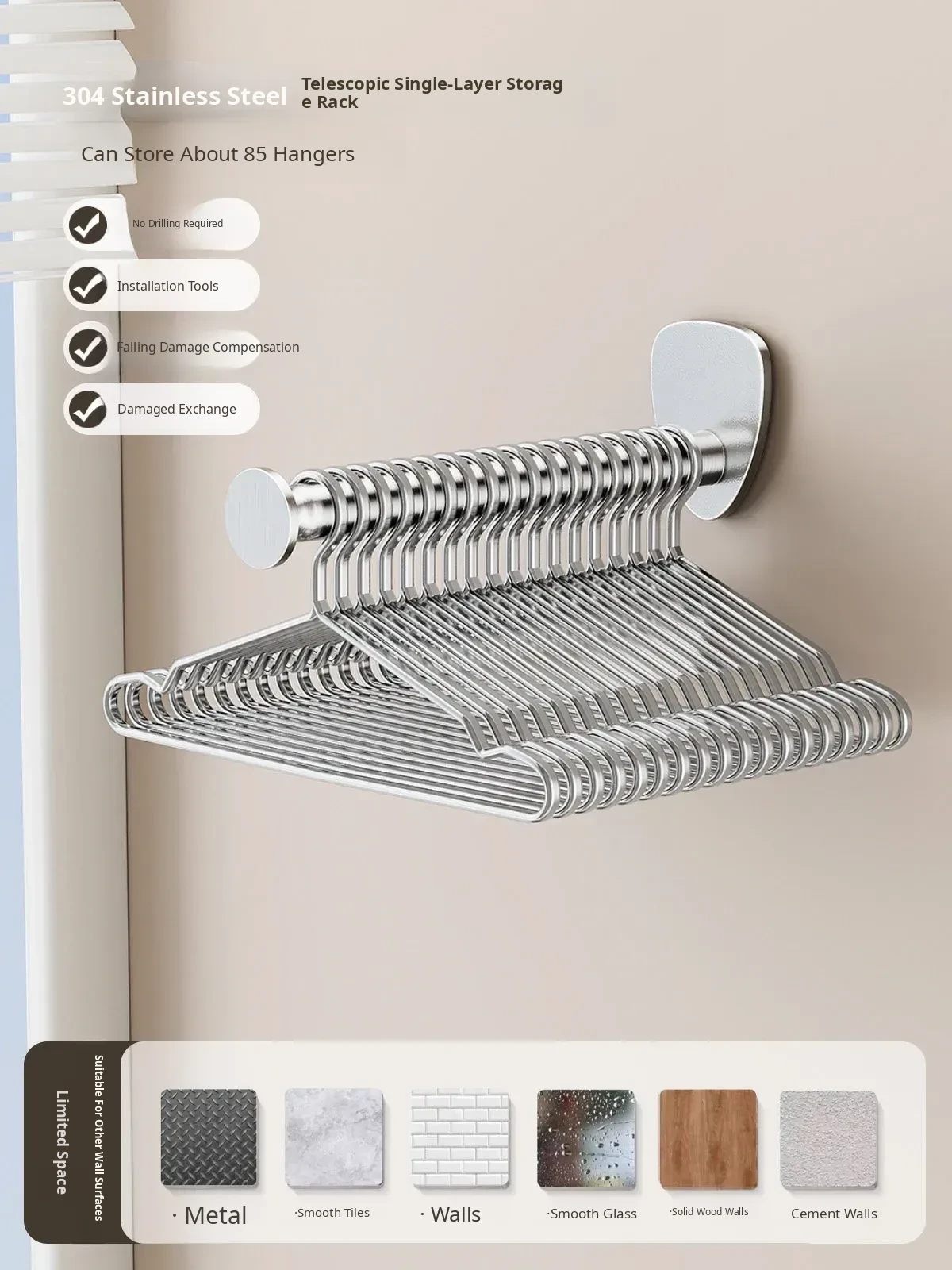 [Pack of 2] Fixed Single Layer + Telescopic Single Layer❤ [Stores about 140 Hangers]