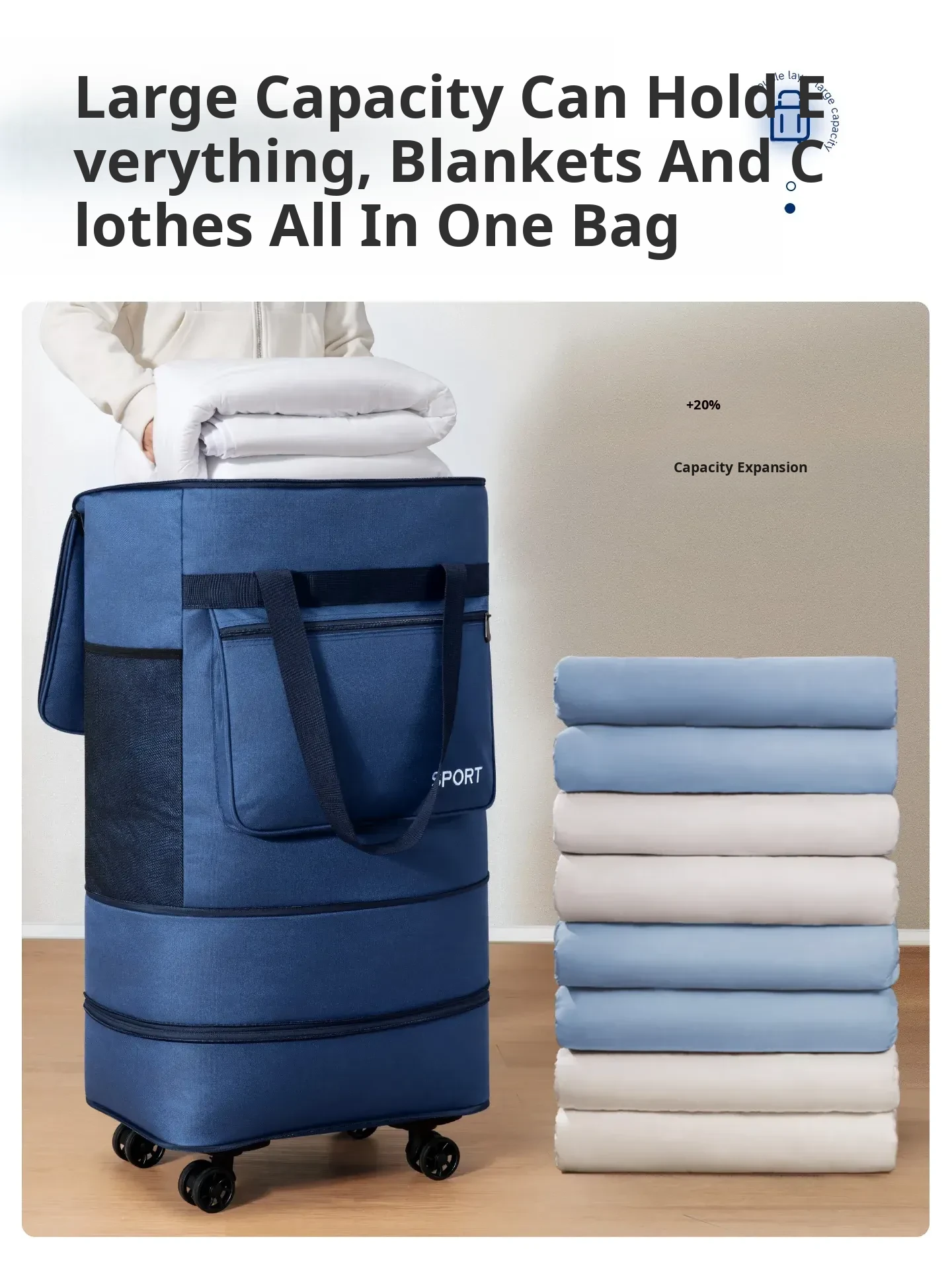 2025 New Blue/Oversized Model 108L-[Double-Layer Expansion/Can Hold 3-4kg Quilts]