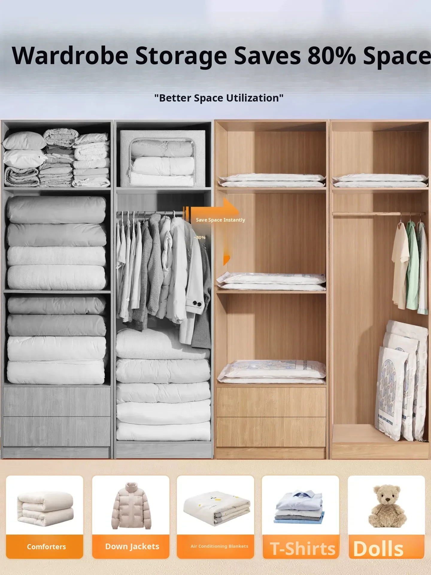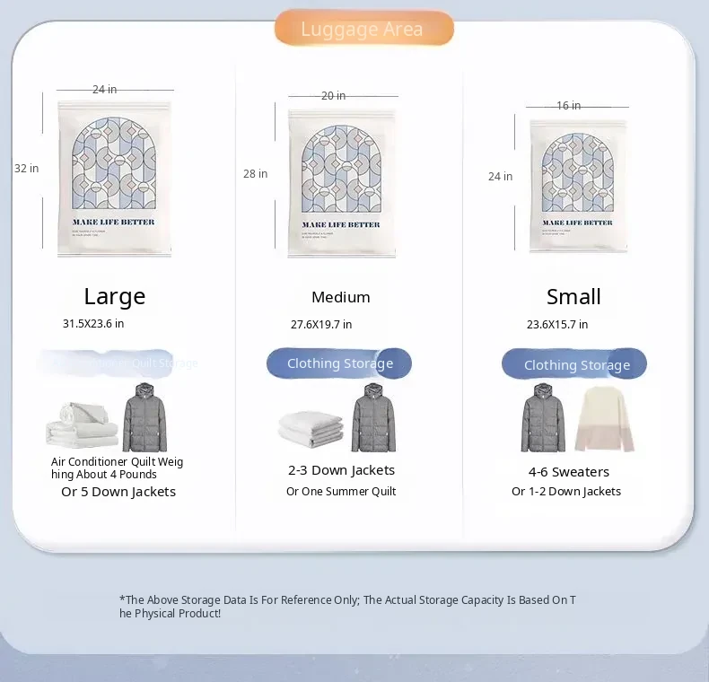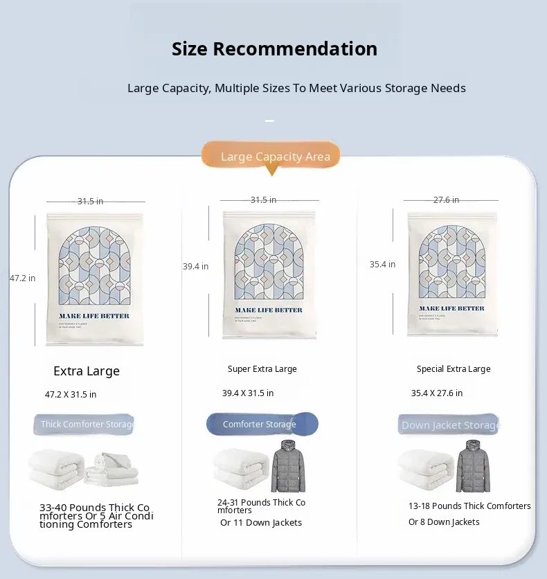 Vacuum Compression Bags for Bedding, Clothes, and Travel – Perfect for Down Jackets, Comforters, and Luggage Storage – Maximize Space and Keep Items Fresh!