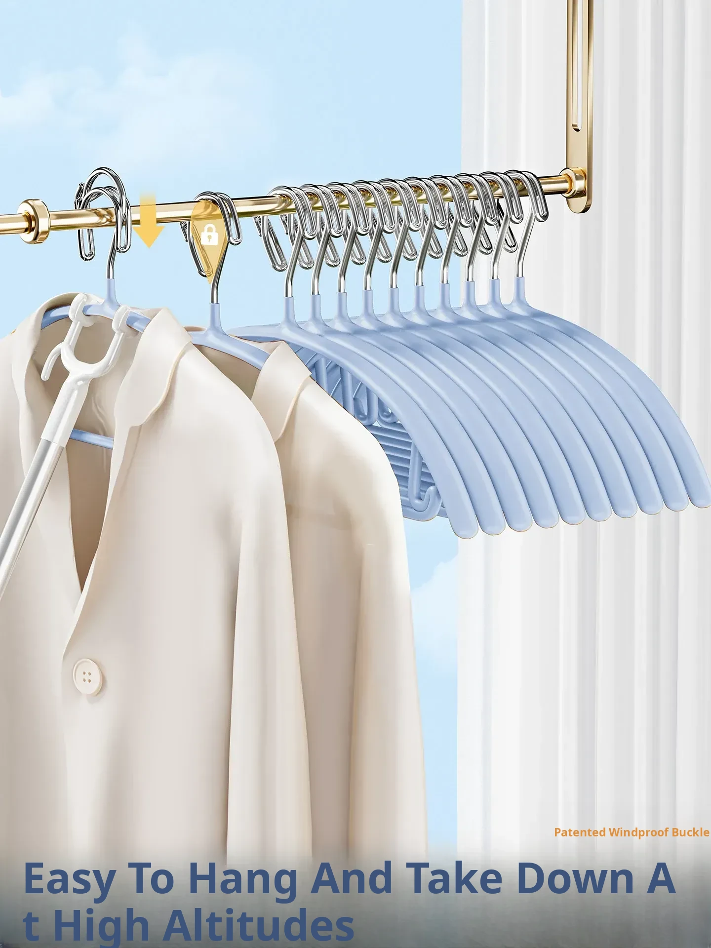 Windproof Clothes Rack with Automatic Locking Mechanism - Anti-Fall, No Trace, Non-Slip, Heavy-Duty for Home Use, Perfect for Balcony and Outdoor Drying.