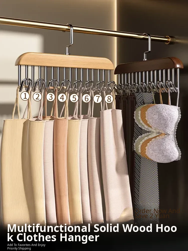 Multifunctional Wooden Hanger for Lingerie and Tank Tops - Space-Saving Storage Solution for Home and Dorms, Stylish Wave Design, Durable and Elegant Natural Wood Hook