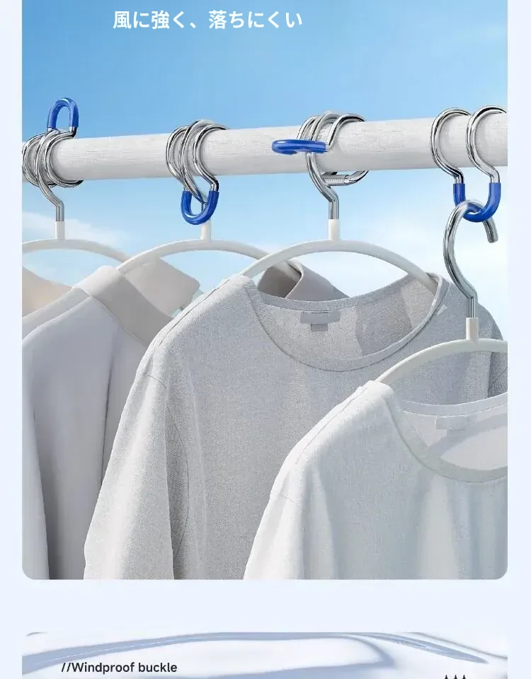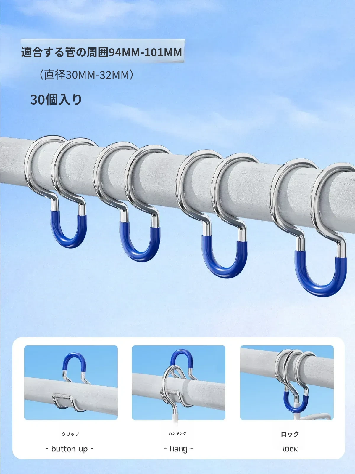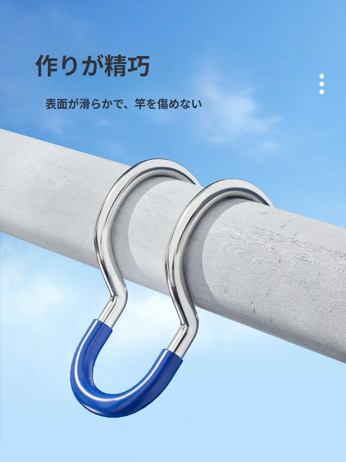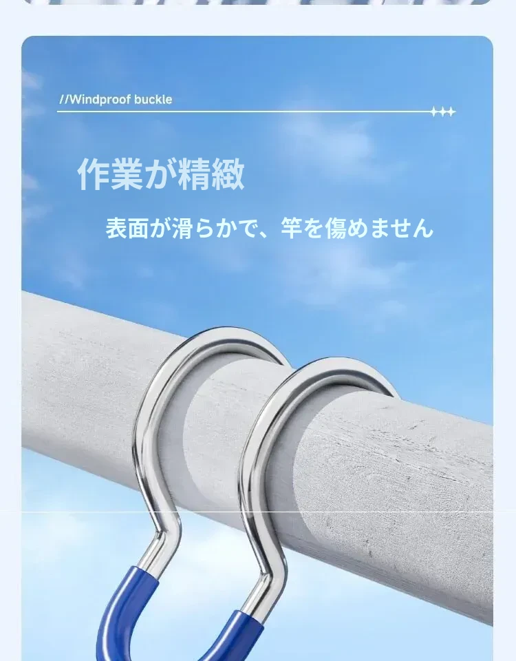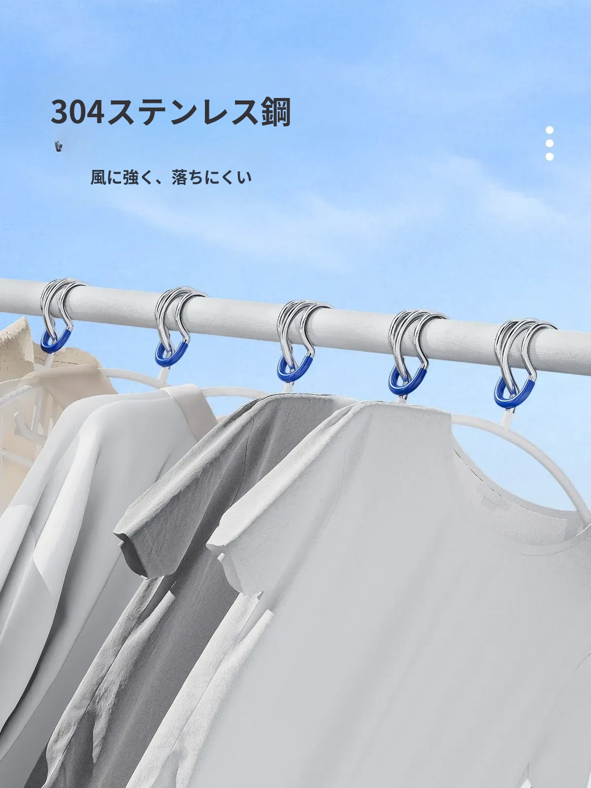 304ステンレス製 防風クリップ付き 物干し竿 洗濯物固定クリップ 滑り止め 室外干しに最適!強風でも安心の耐久性!
