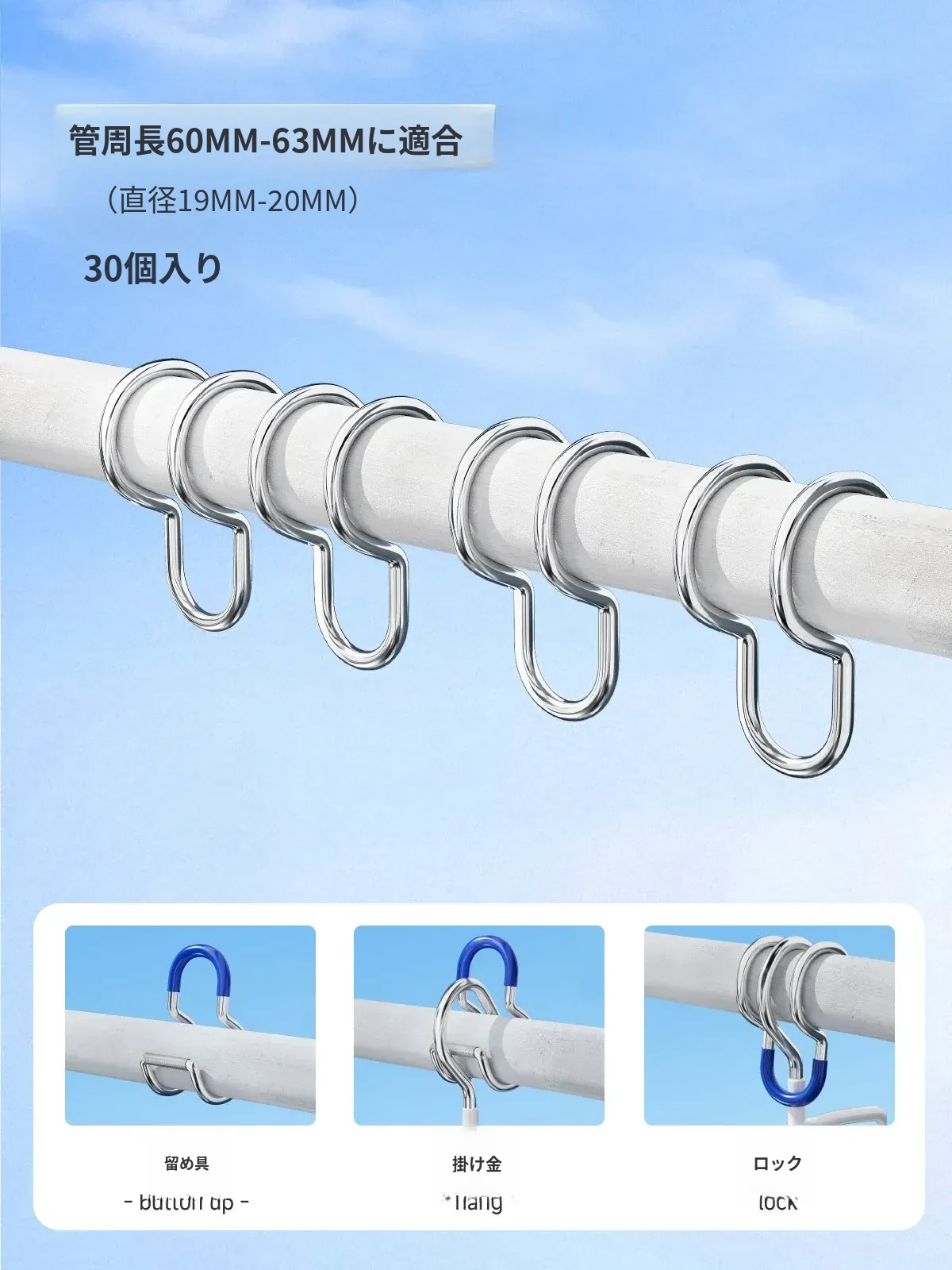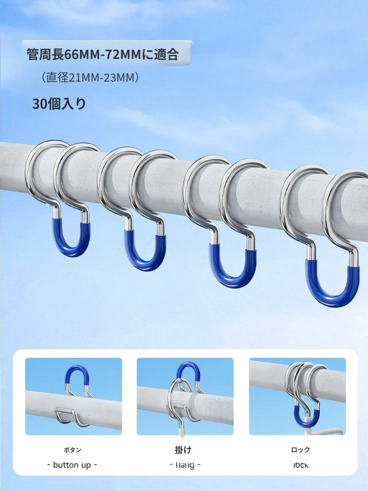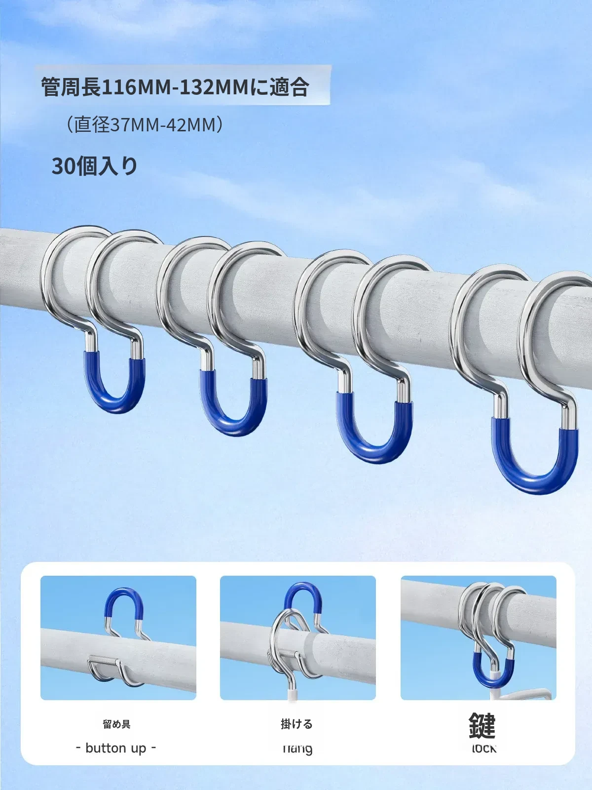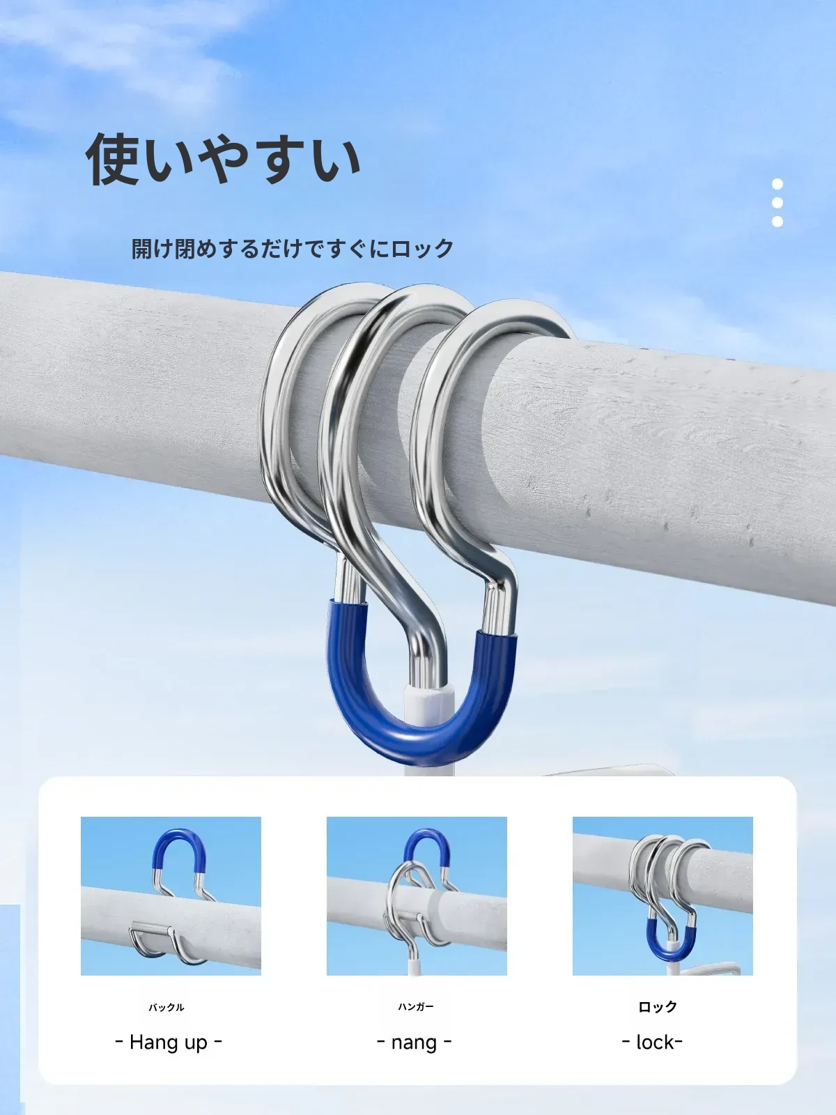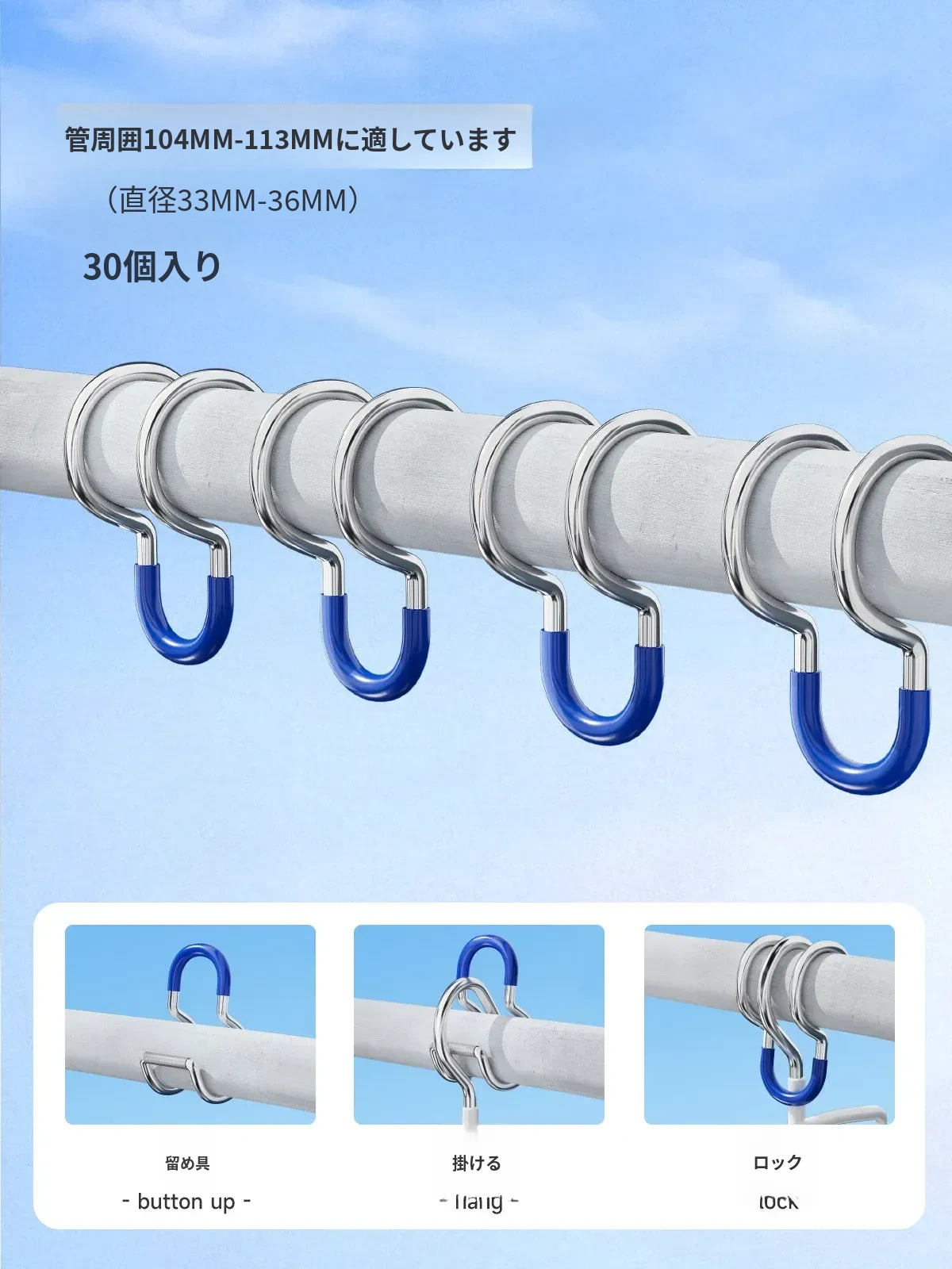 304ステンレス製 防風クリップ付き 物干し竿 洗濯物固定クリップ 滑り止め 室外干しに最適!強風でも安心の耐久性!