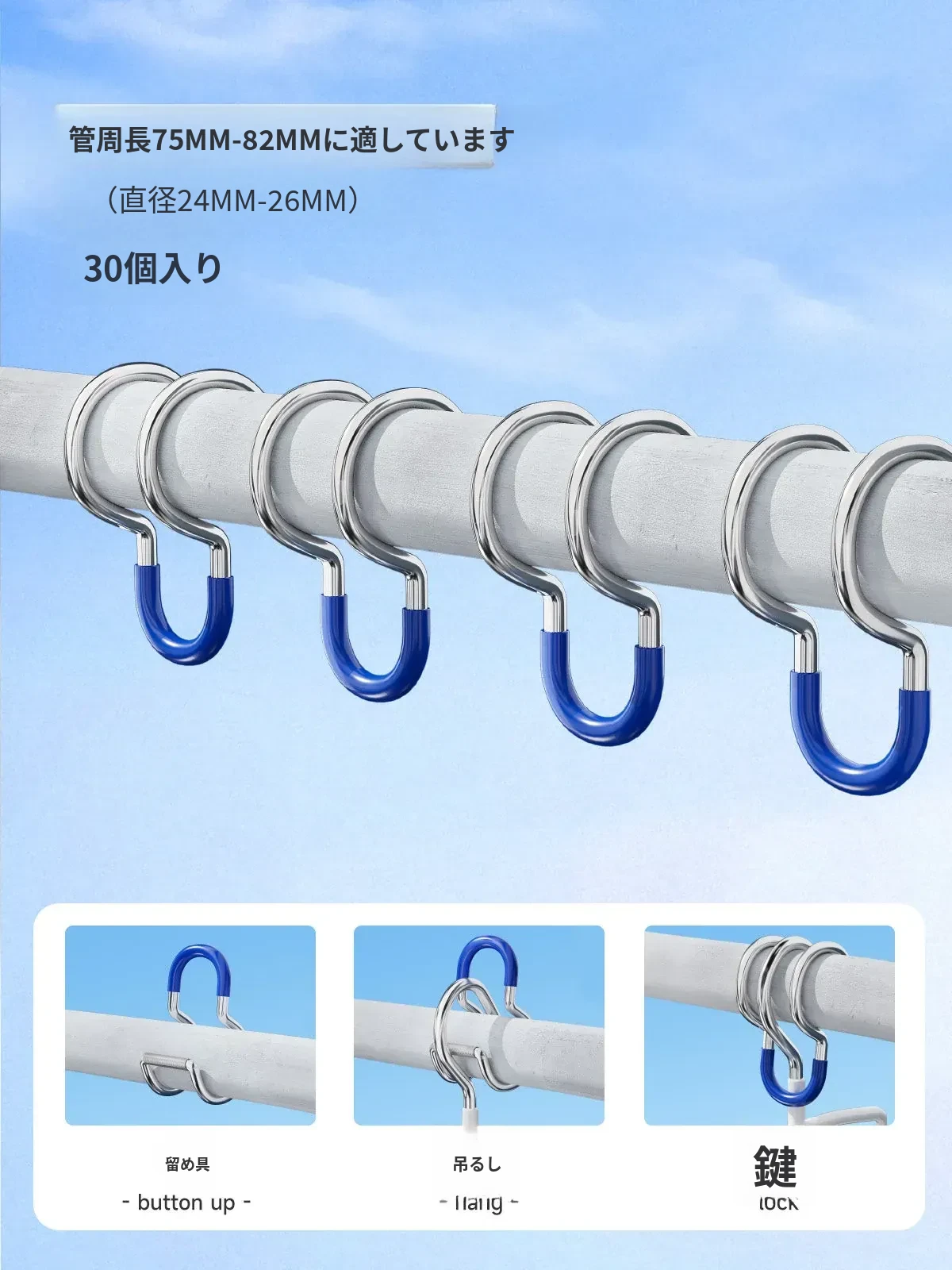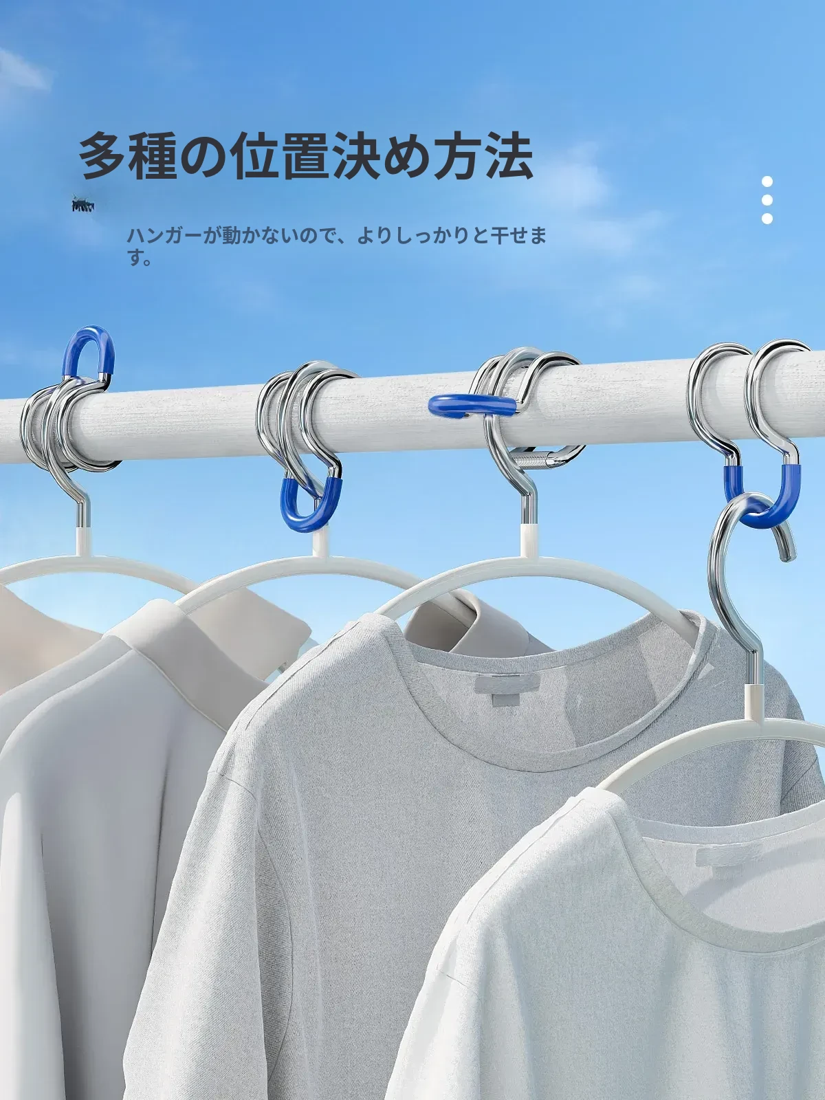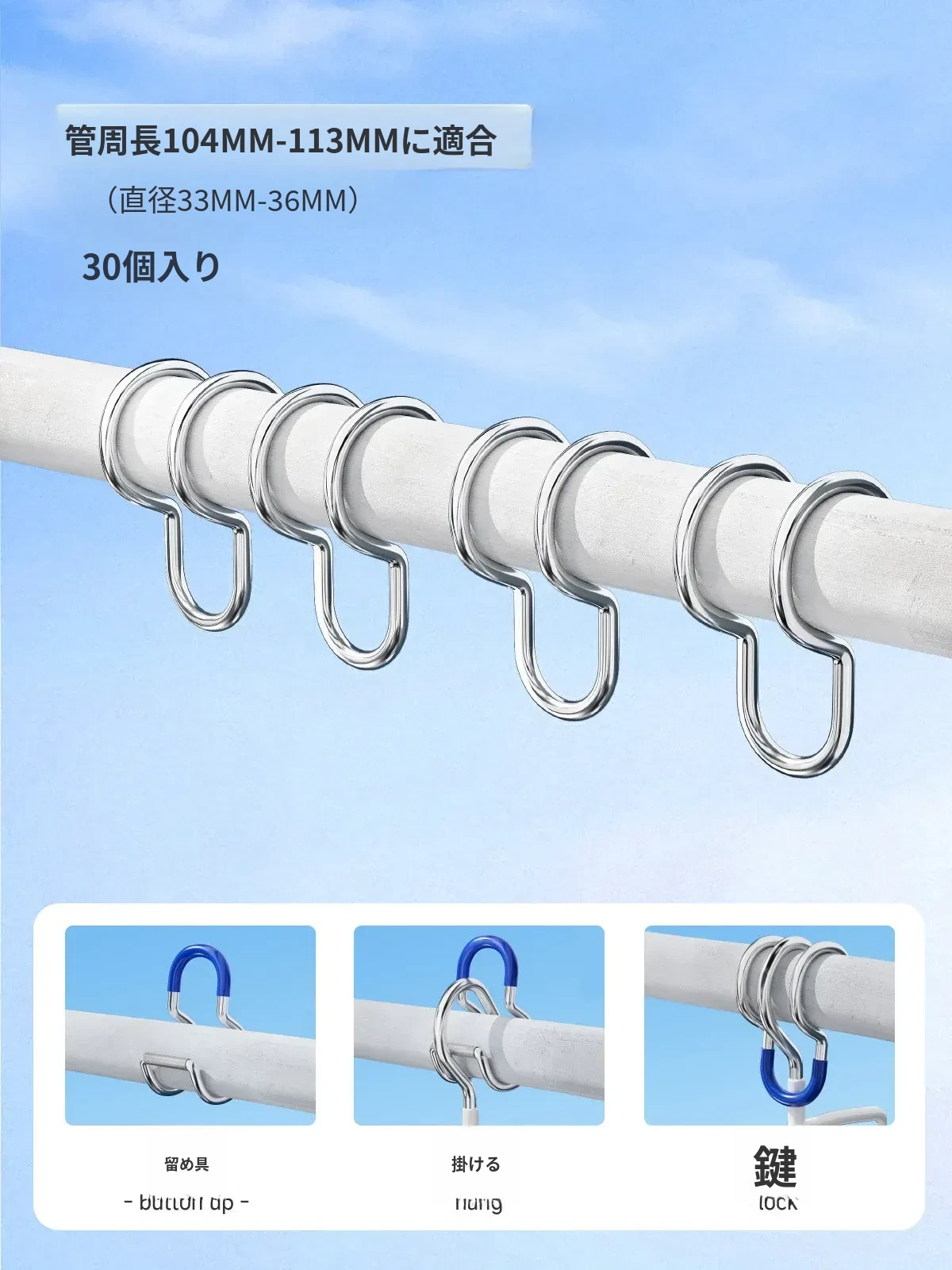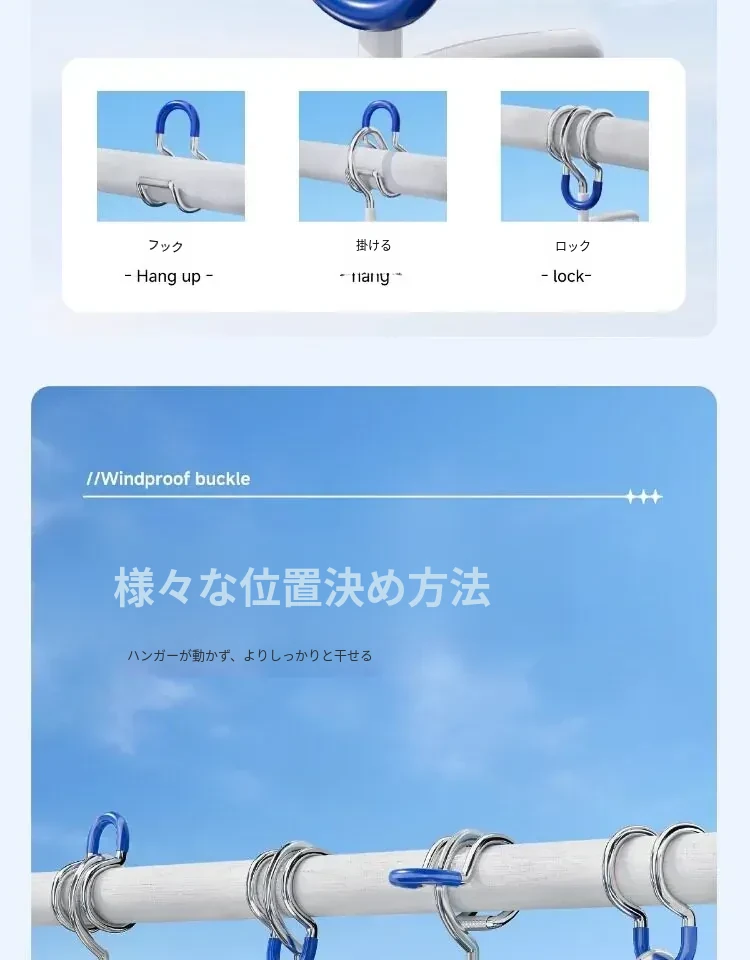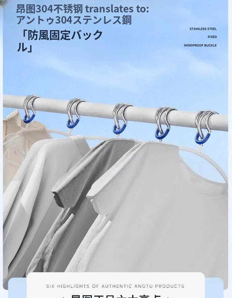 304ステンレス製 防風クリップ付き 物干し竿 洗濯物固定クリップ 滑り止め 室外干しに最適!強風でも安心の耐久性!