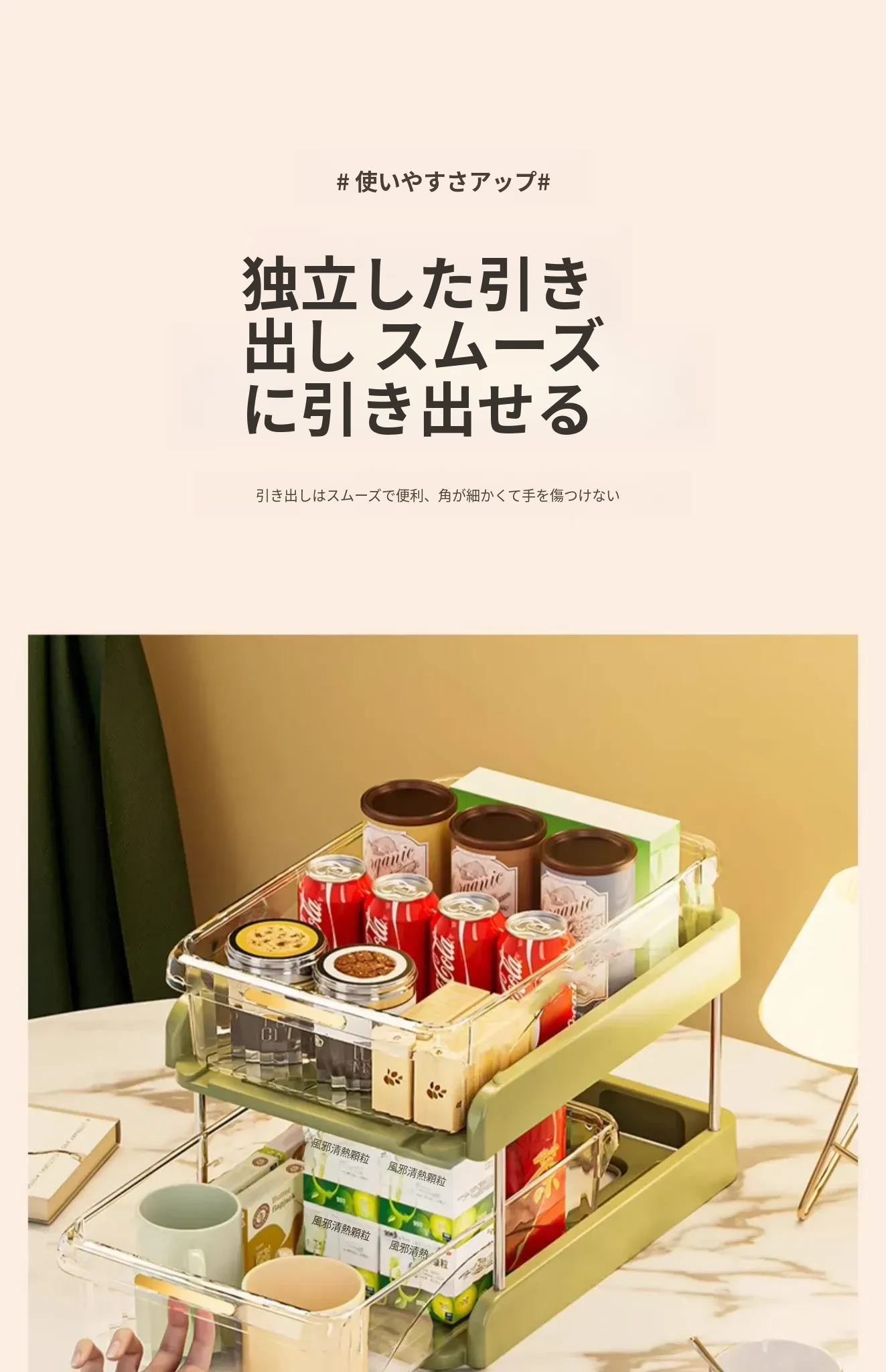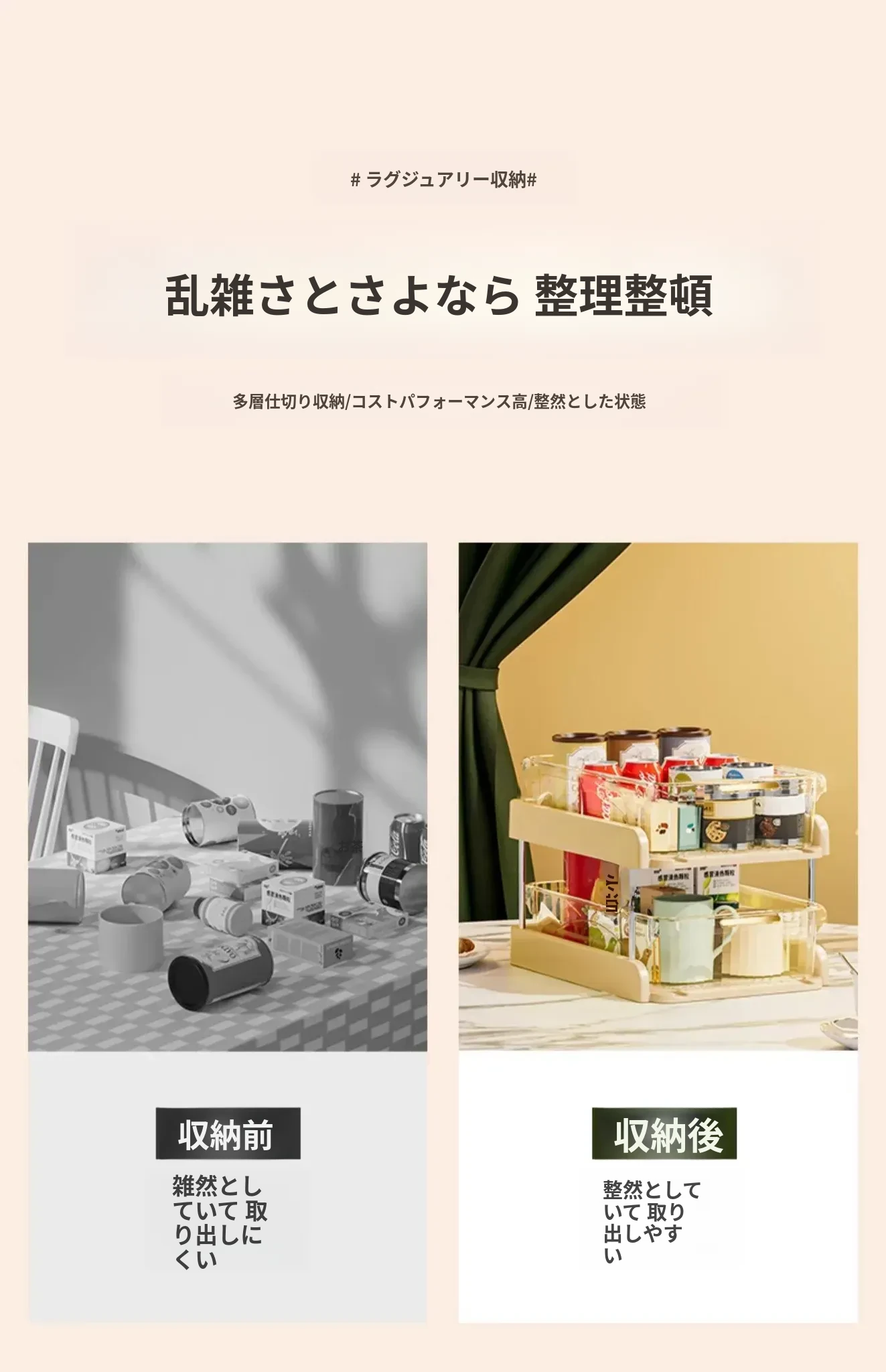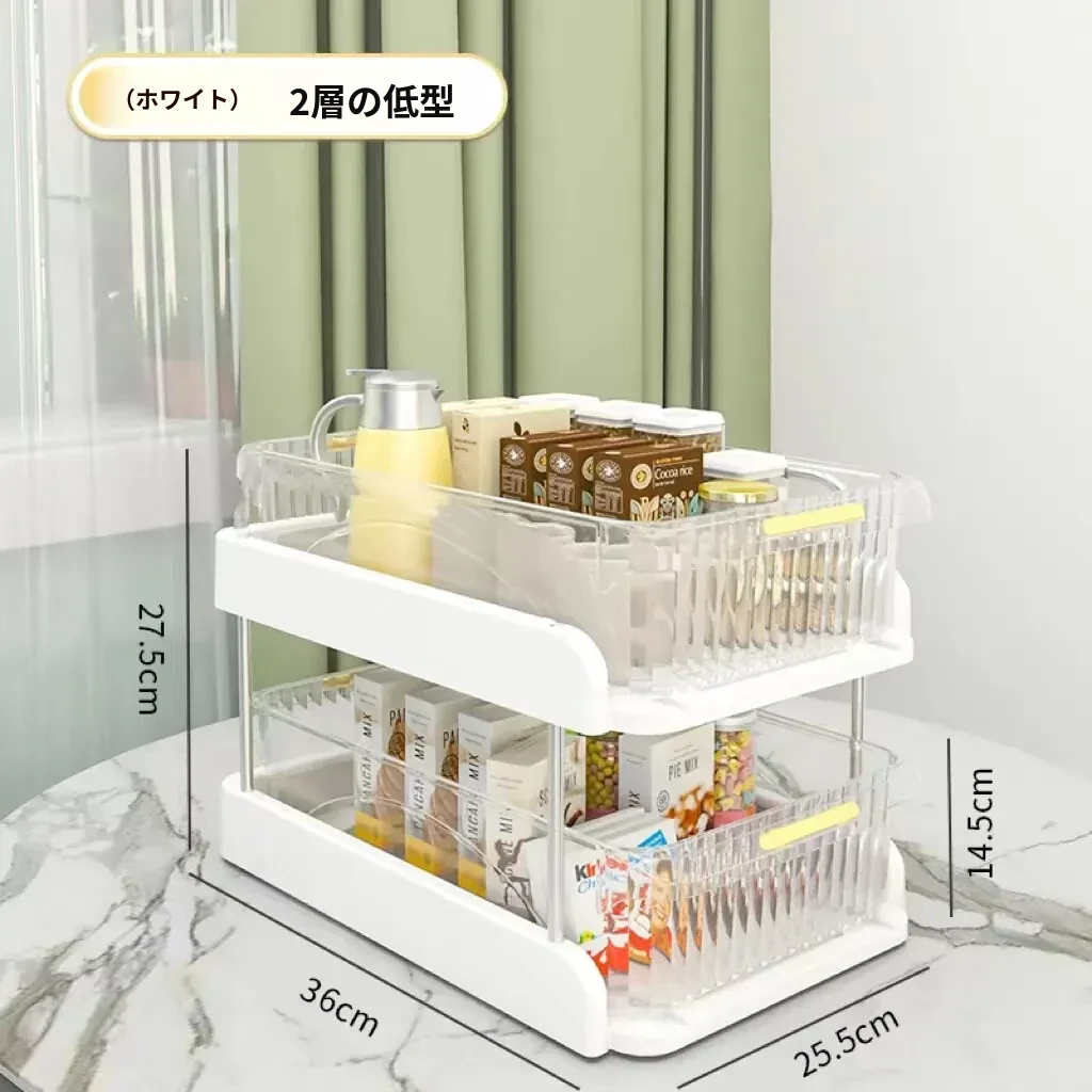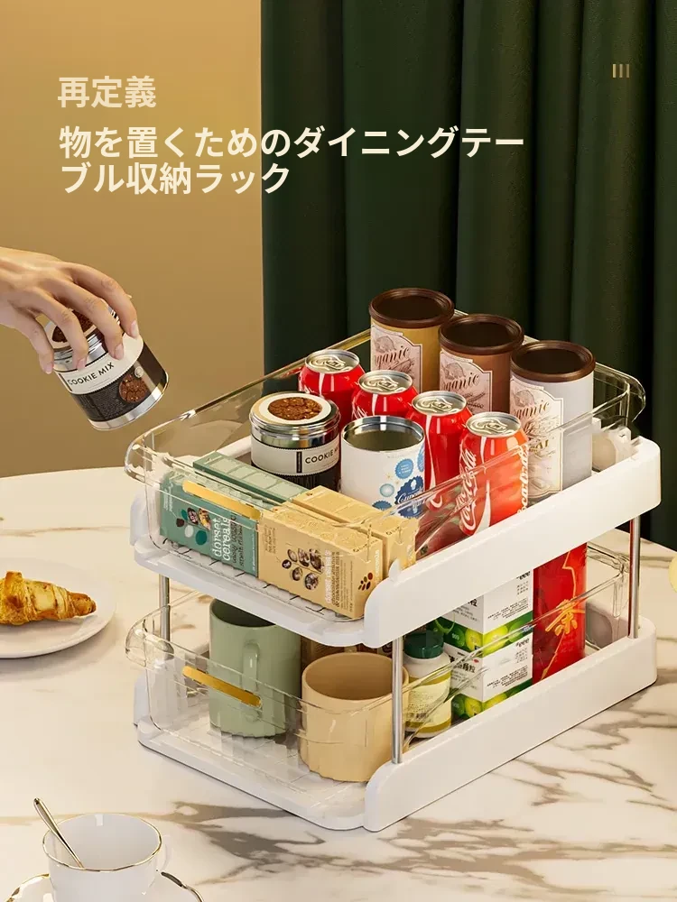 デスク上の整理整頓に最適!テーブル収納ボックス、スナックやティーセットもスッキリ収納できる便利アイテム。リビングのデスク周りを美しく保ち、カップや小物を簡単に整理!
