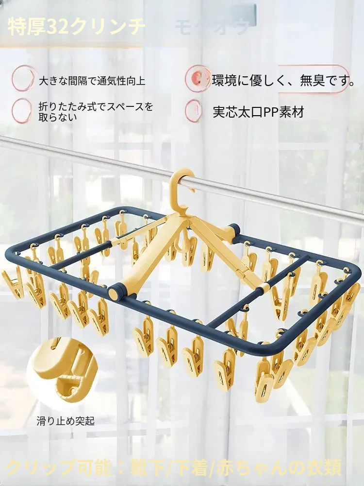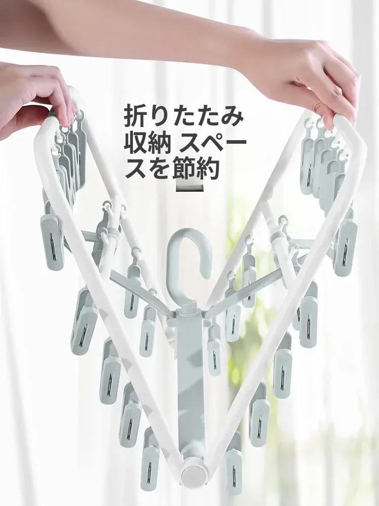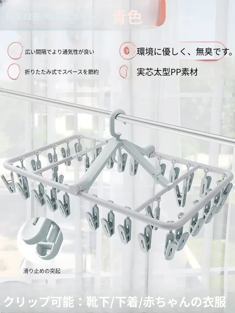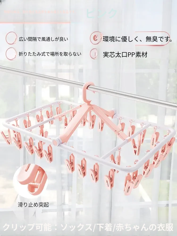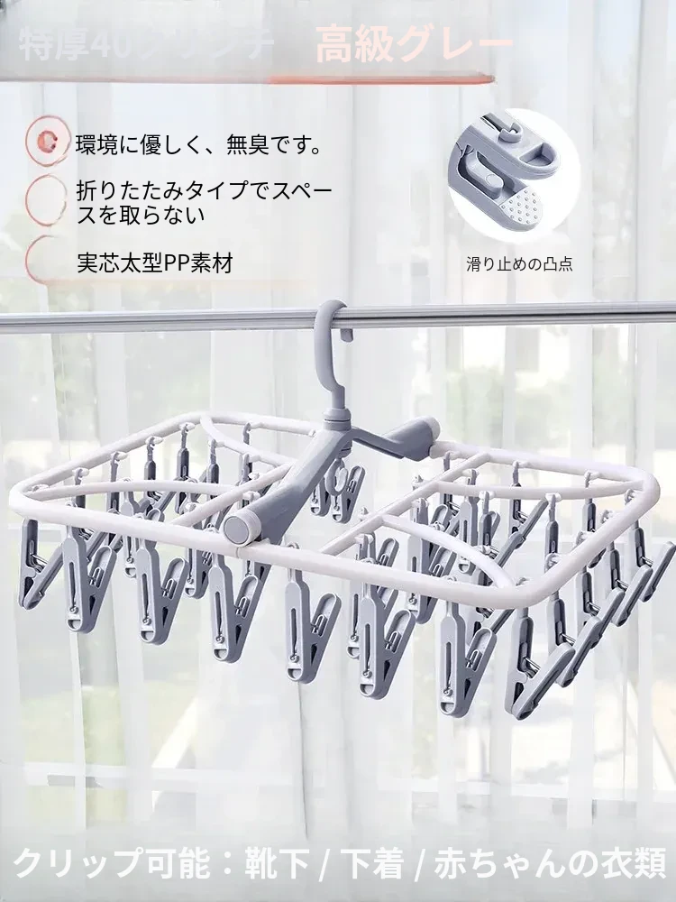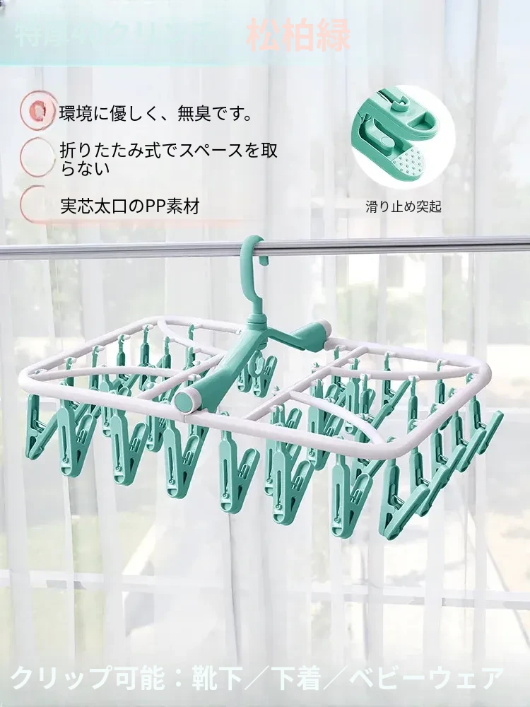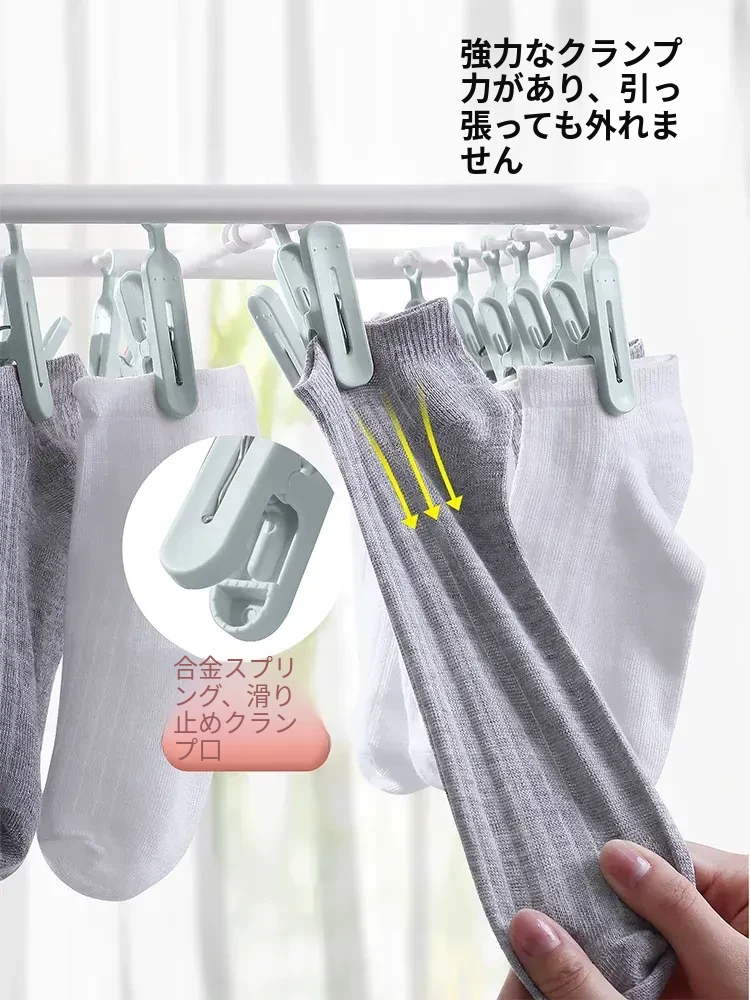 折りたたみ式多クリップ洗濯ハンガー!風に強い靴下クリップ、赤ちゃん専用のソックスラック。バルコニーや室内での下着やパンツの乾燥に最適な便利グッズ!
