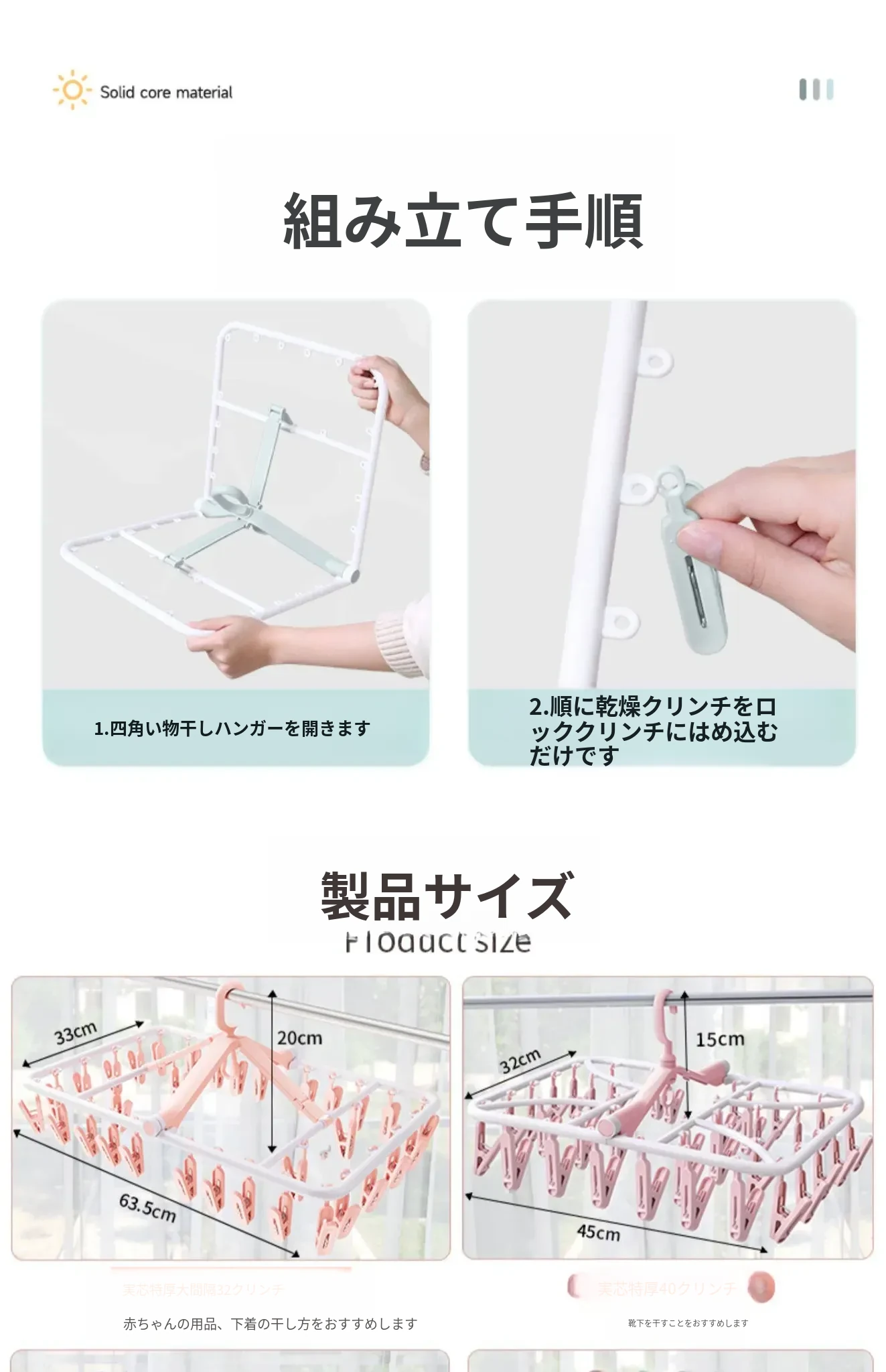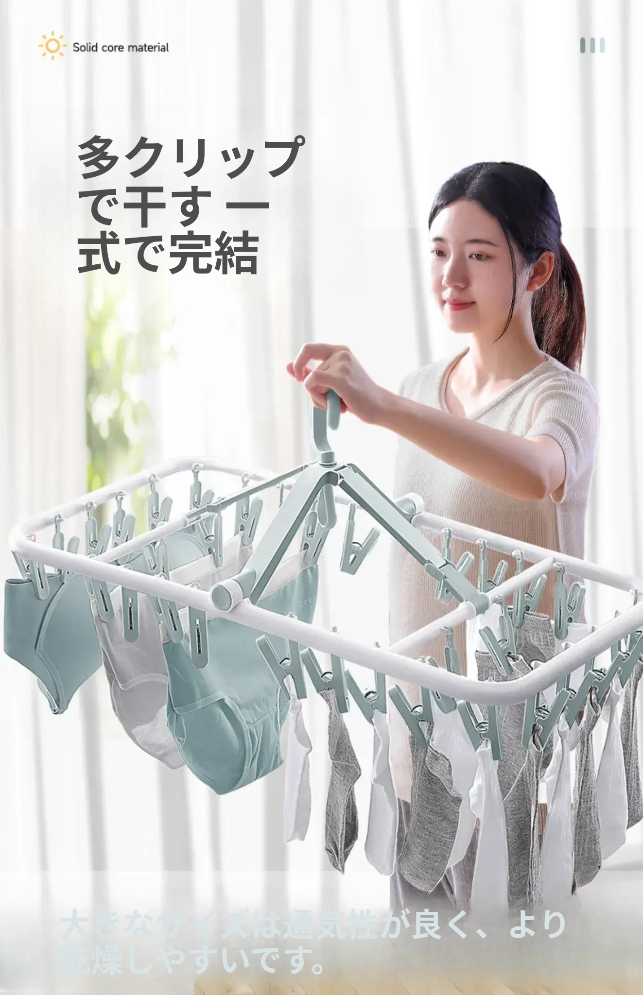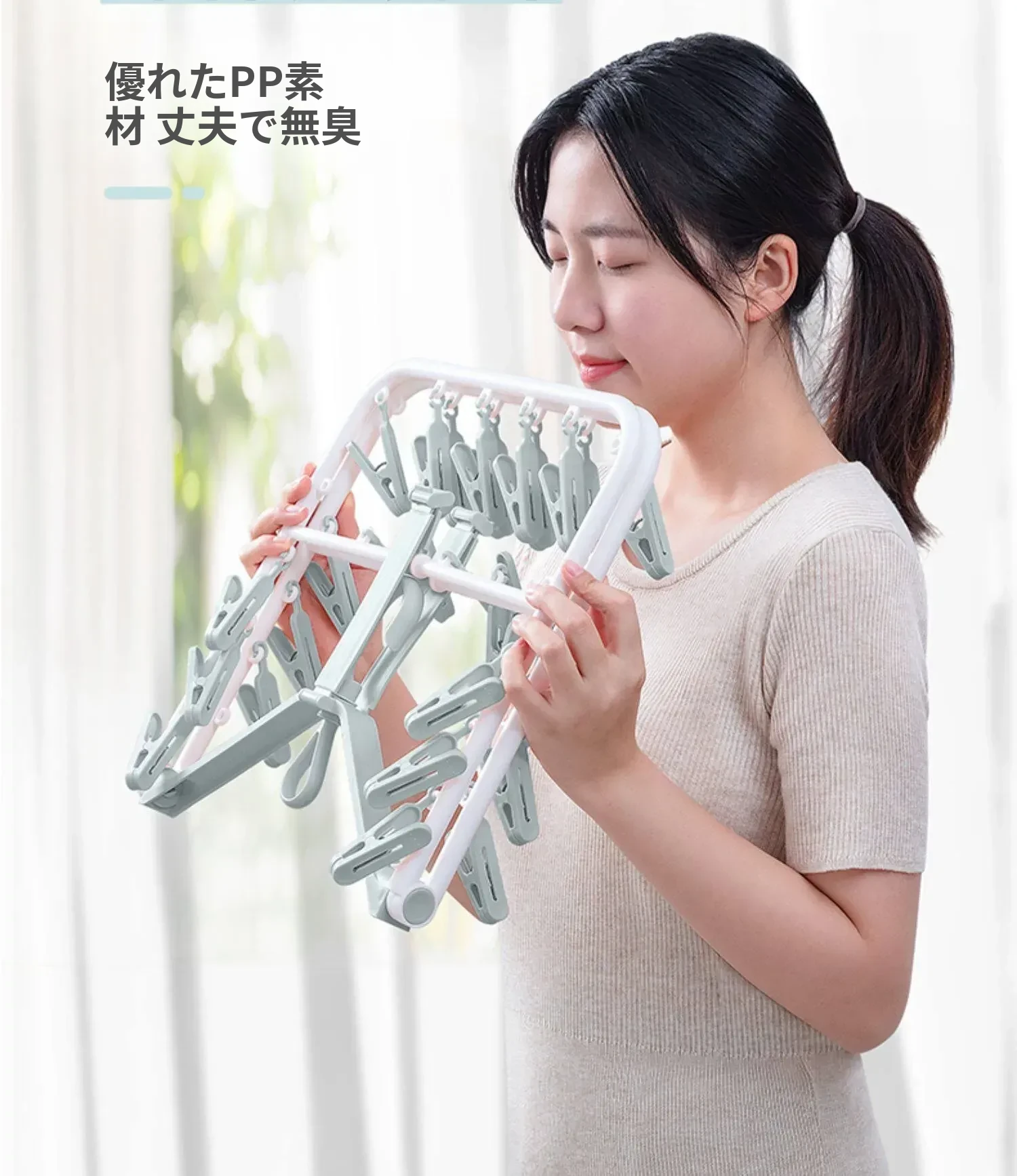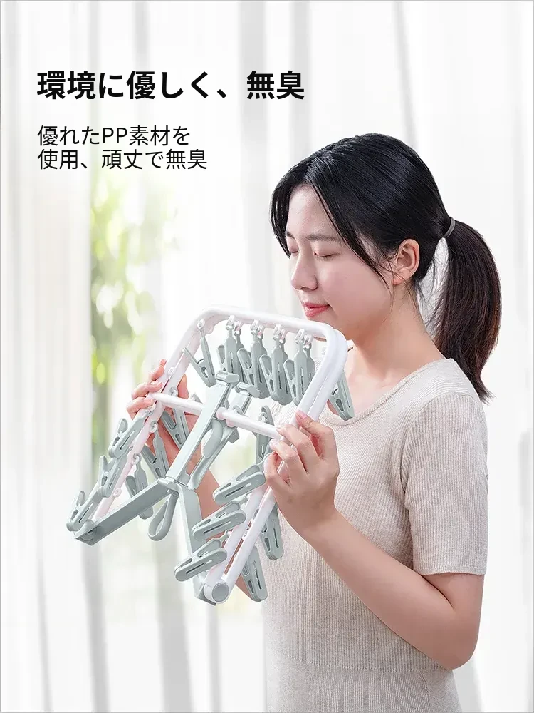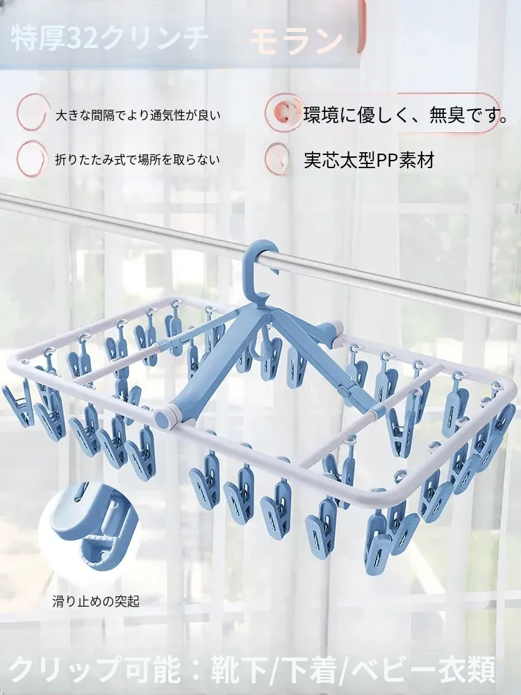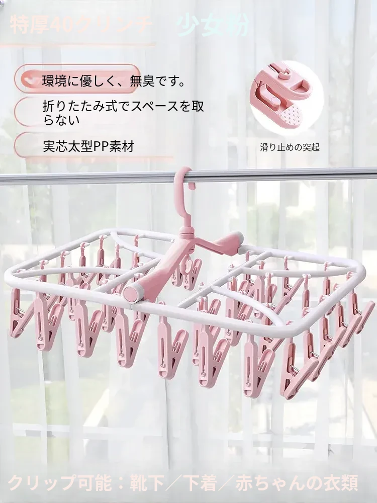 折りたたみ式多クリップ洗濯ハンガー!風に強い靴下クリップ、赤ちゃん専用のソックスラック。バルコニーや室内での下着やパンツの乾燥に最適な便利グッズ!