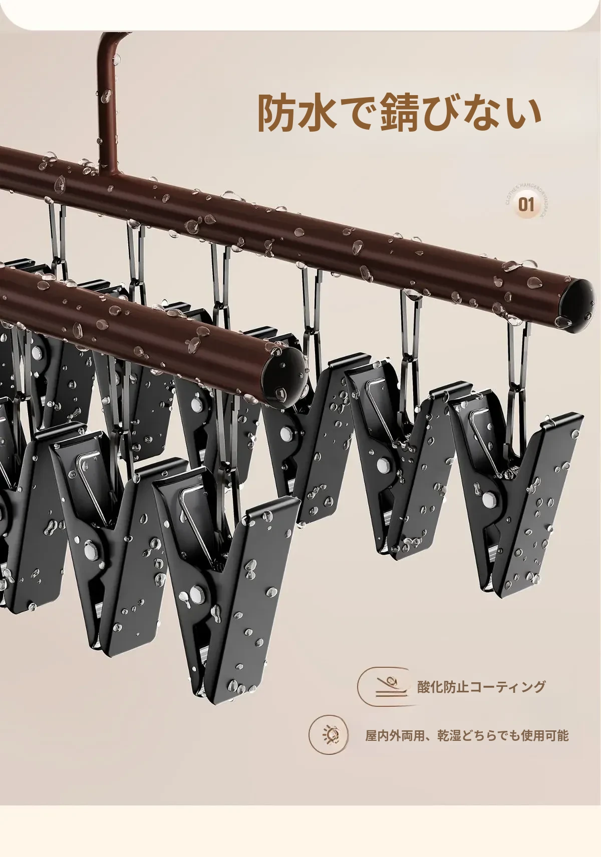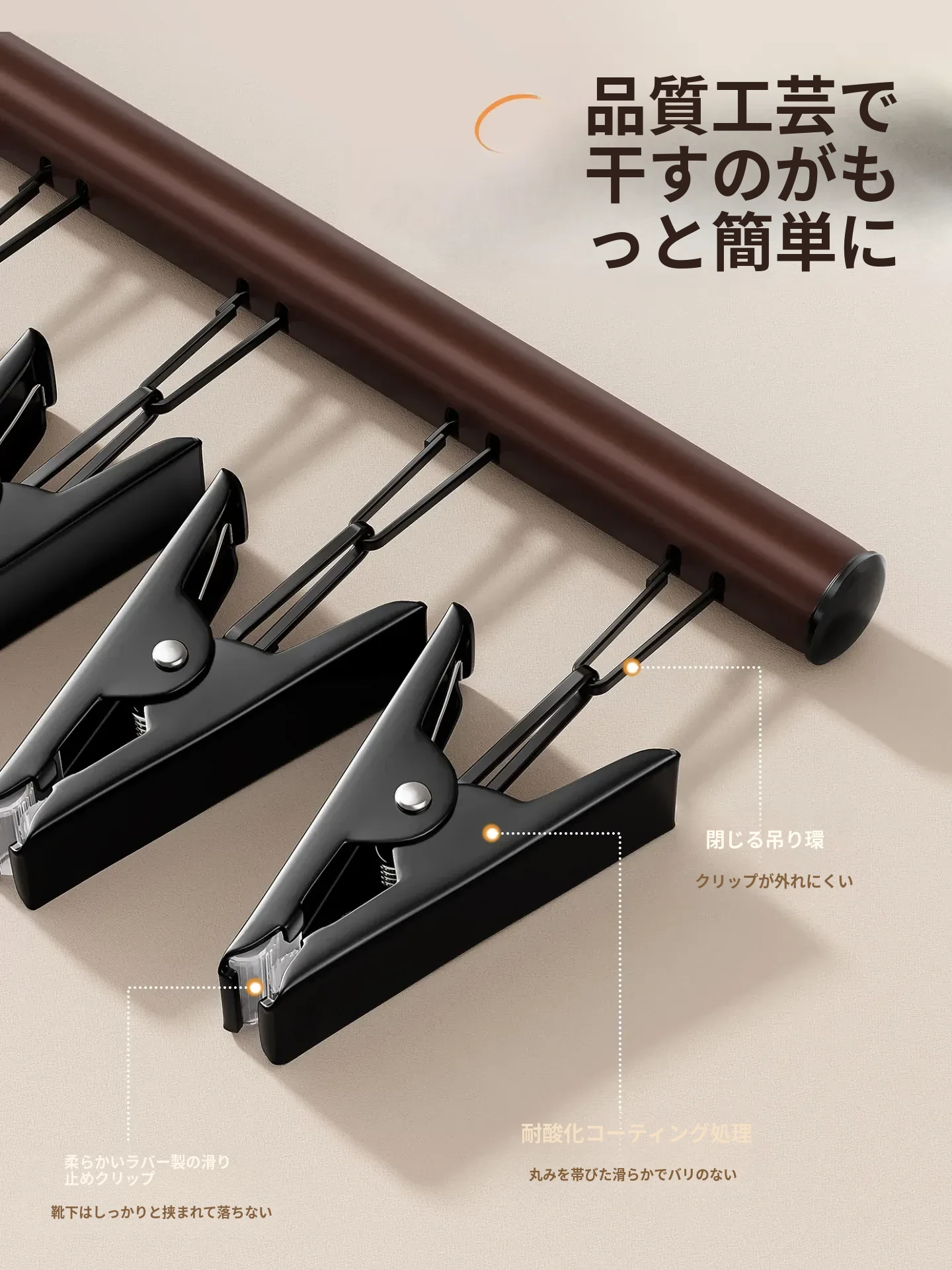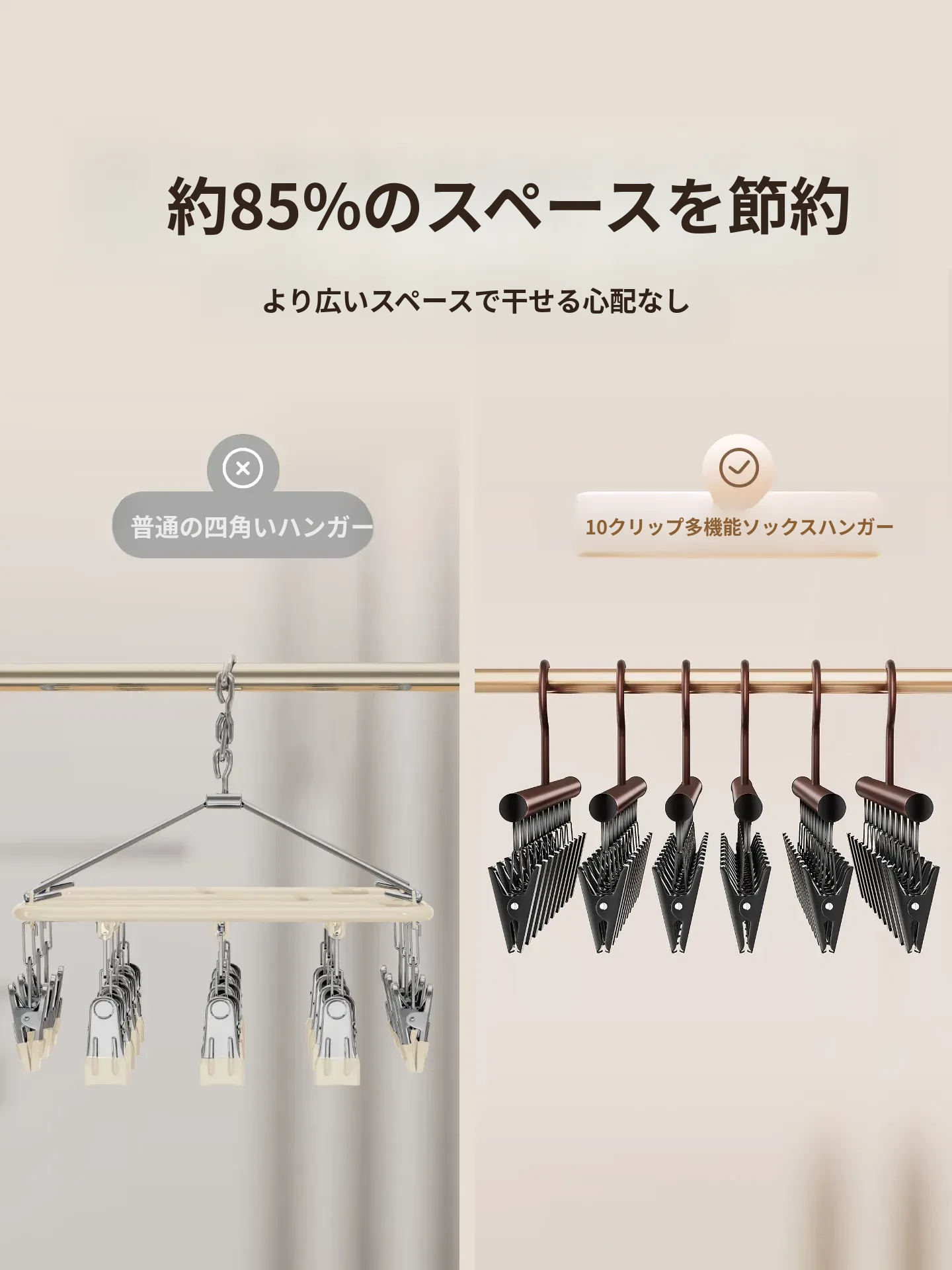 整理師おすすめ!無痕・滑り止め付きの靴下干しラック|下着やパンツも安心!多機能クリップでバルコニーに最適な靴下干しの必需品!