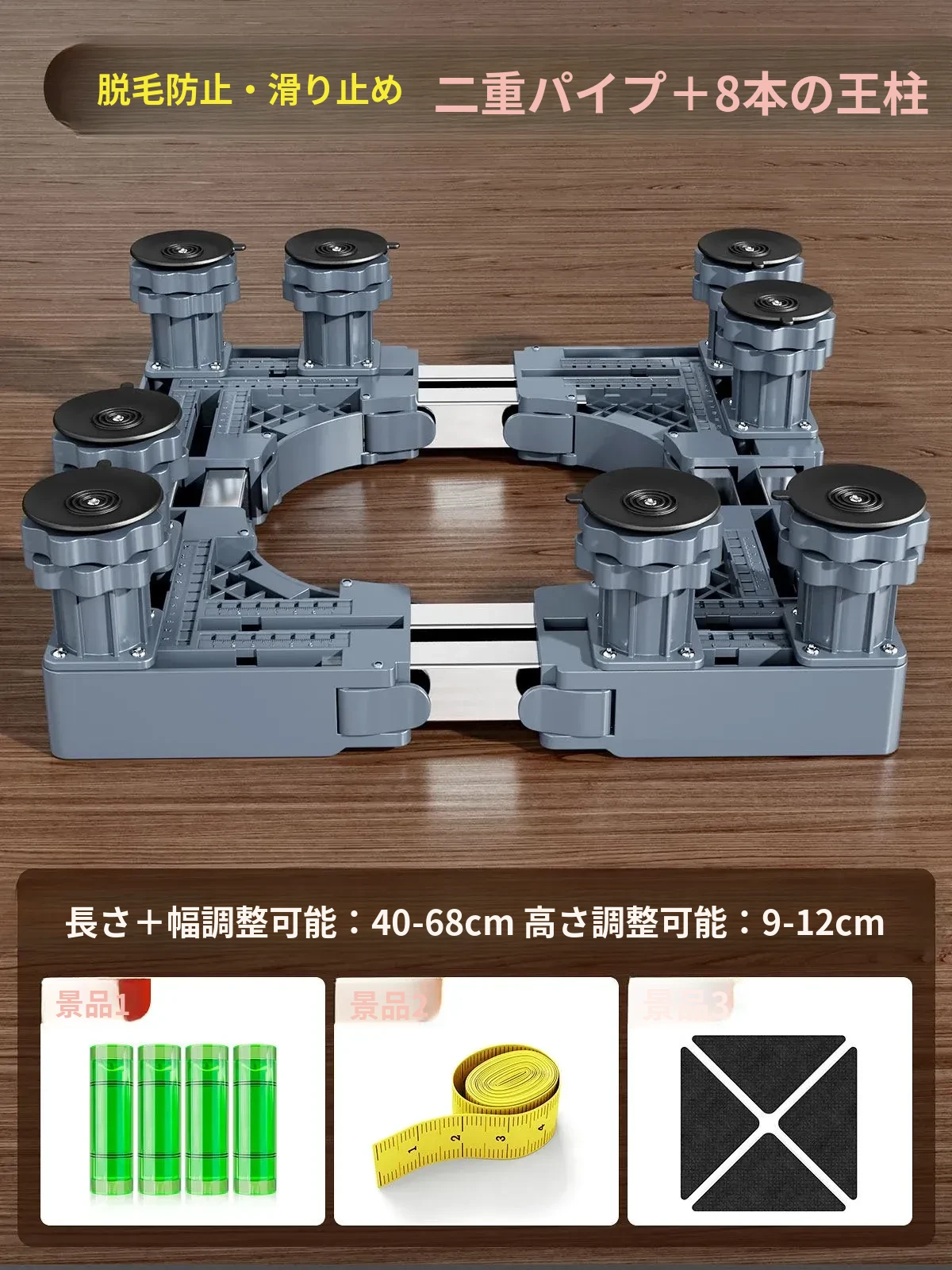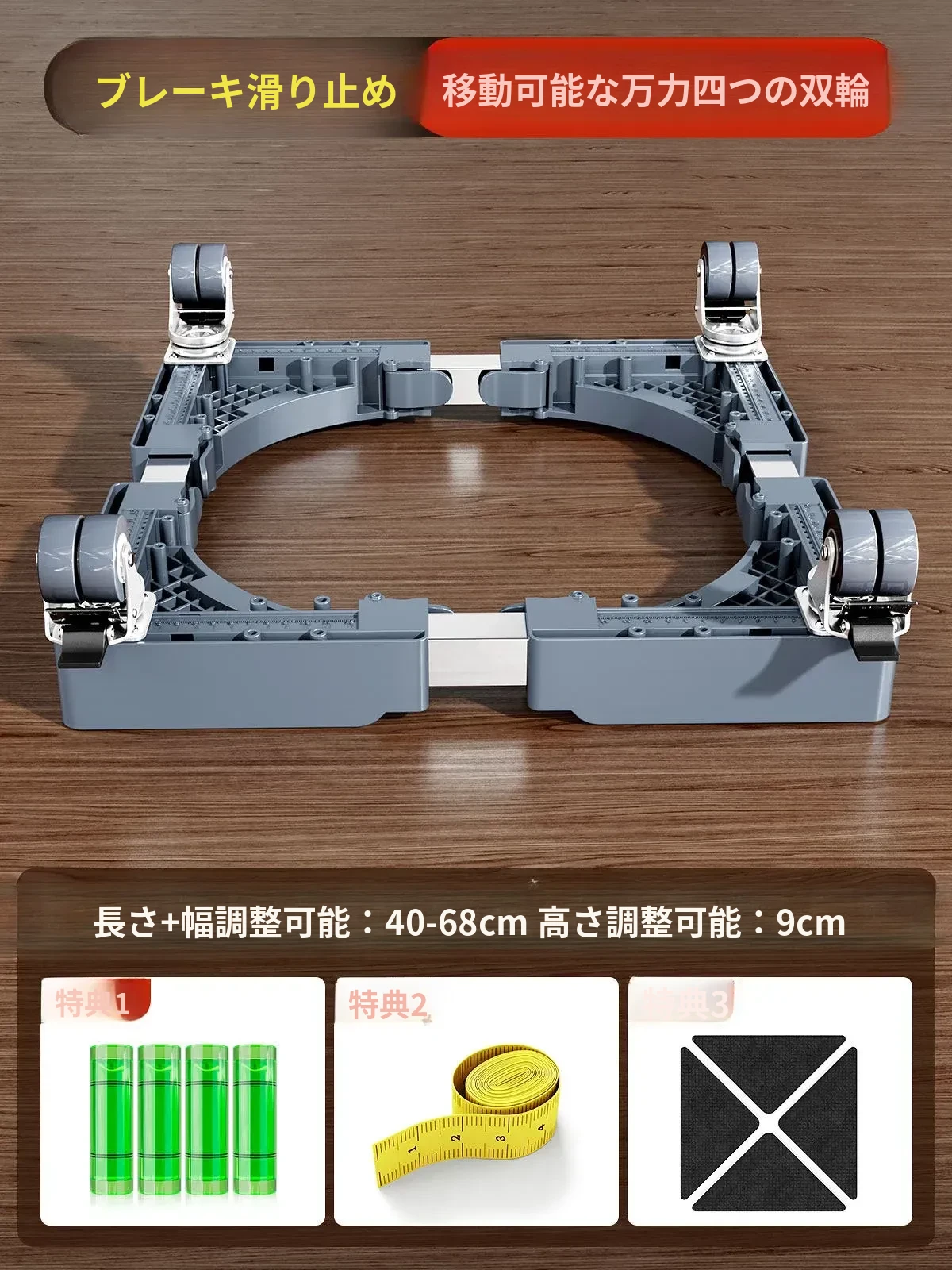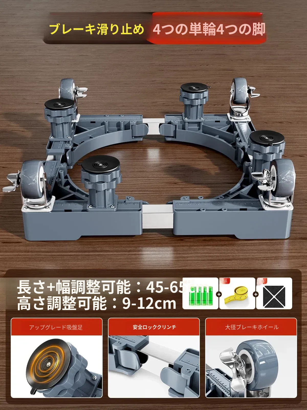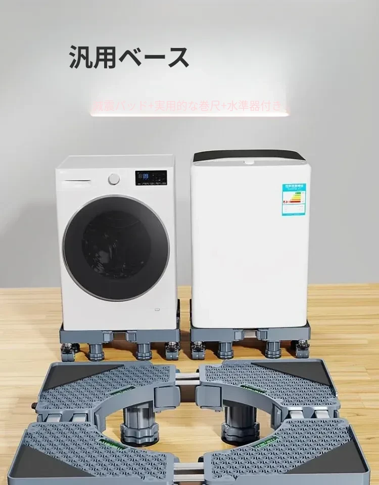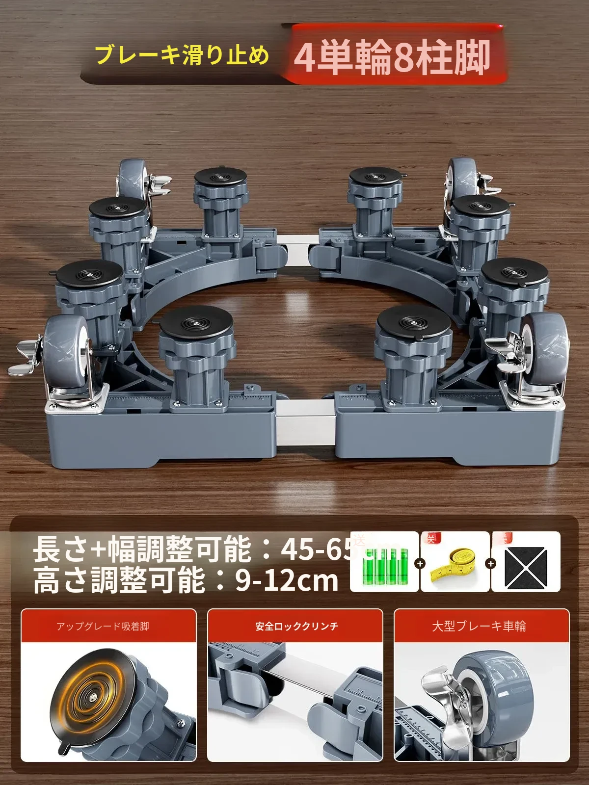 パナソニック洗濯機用万能ベース 自動移動キャスター付き 高さ調整可能 滑らかな振動吸収 収納スペースを確保!洗濯をより快適にするアイテムです!
