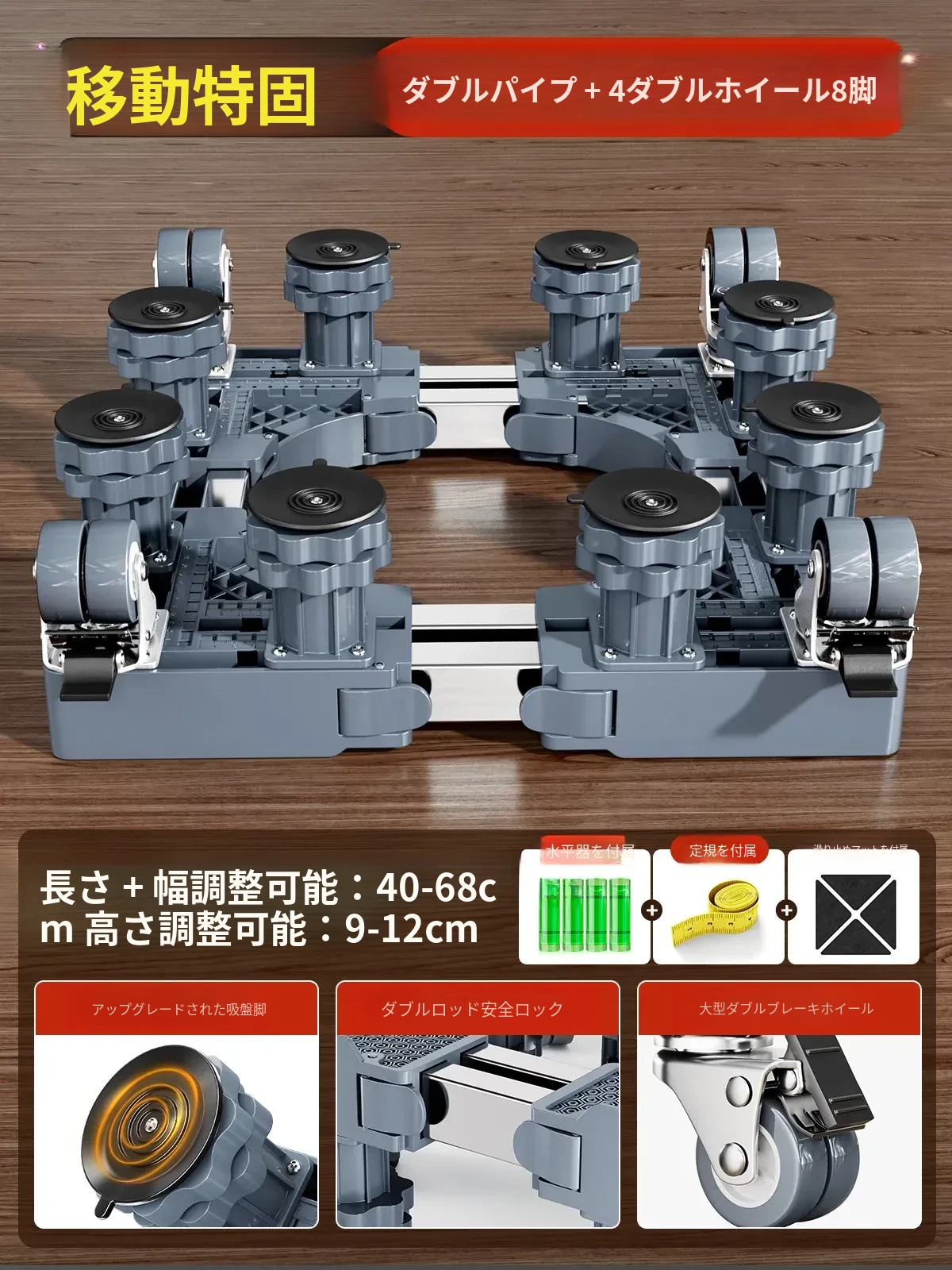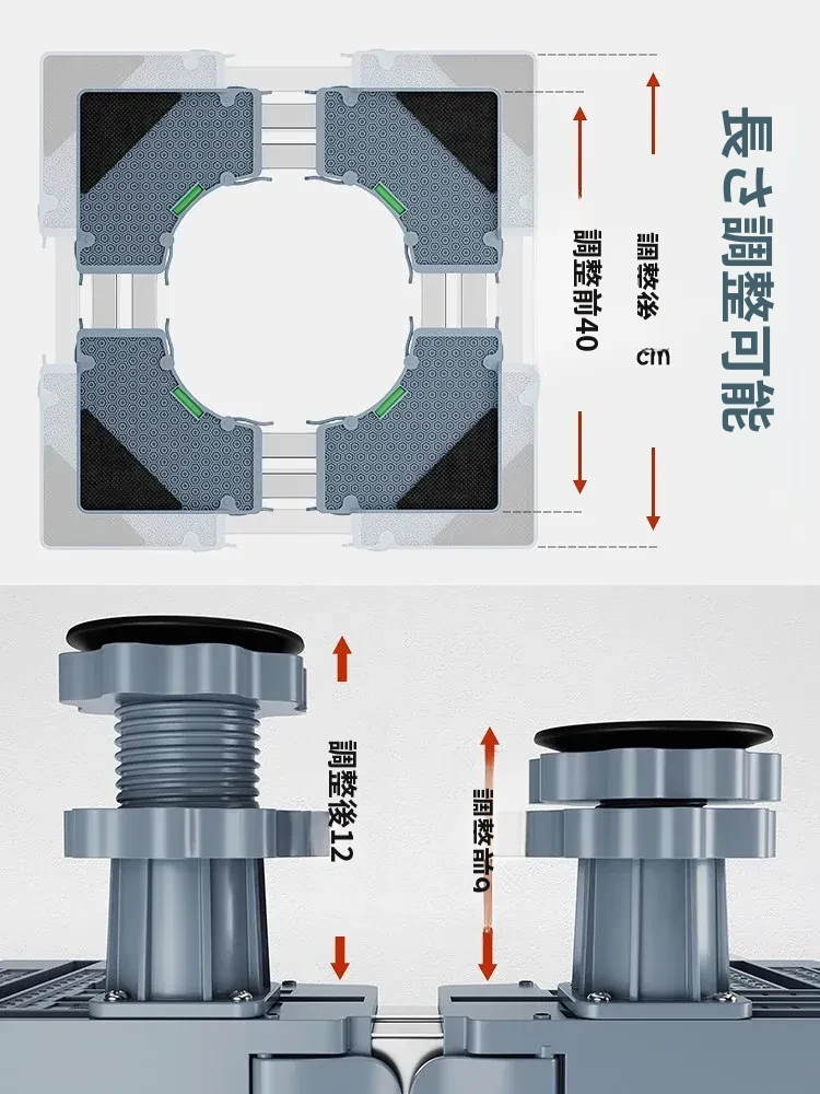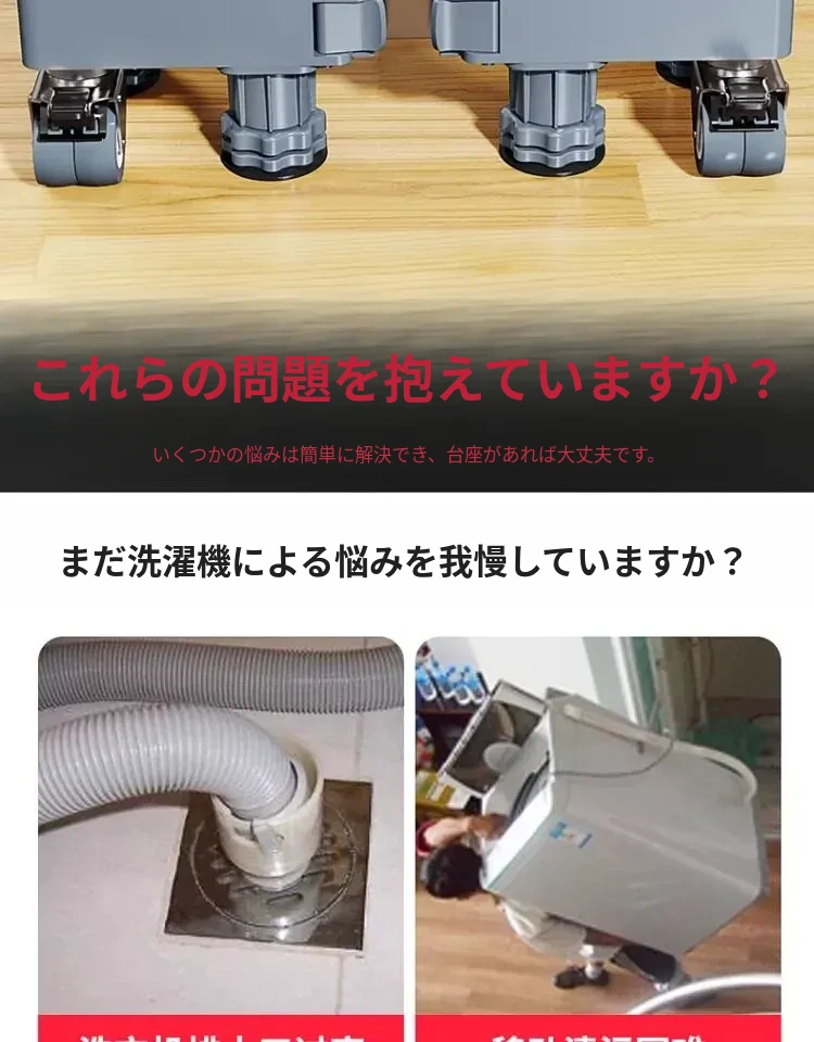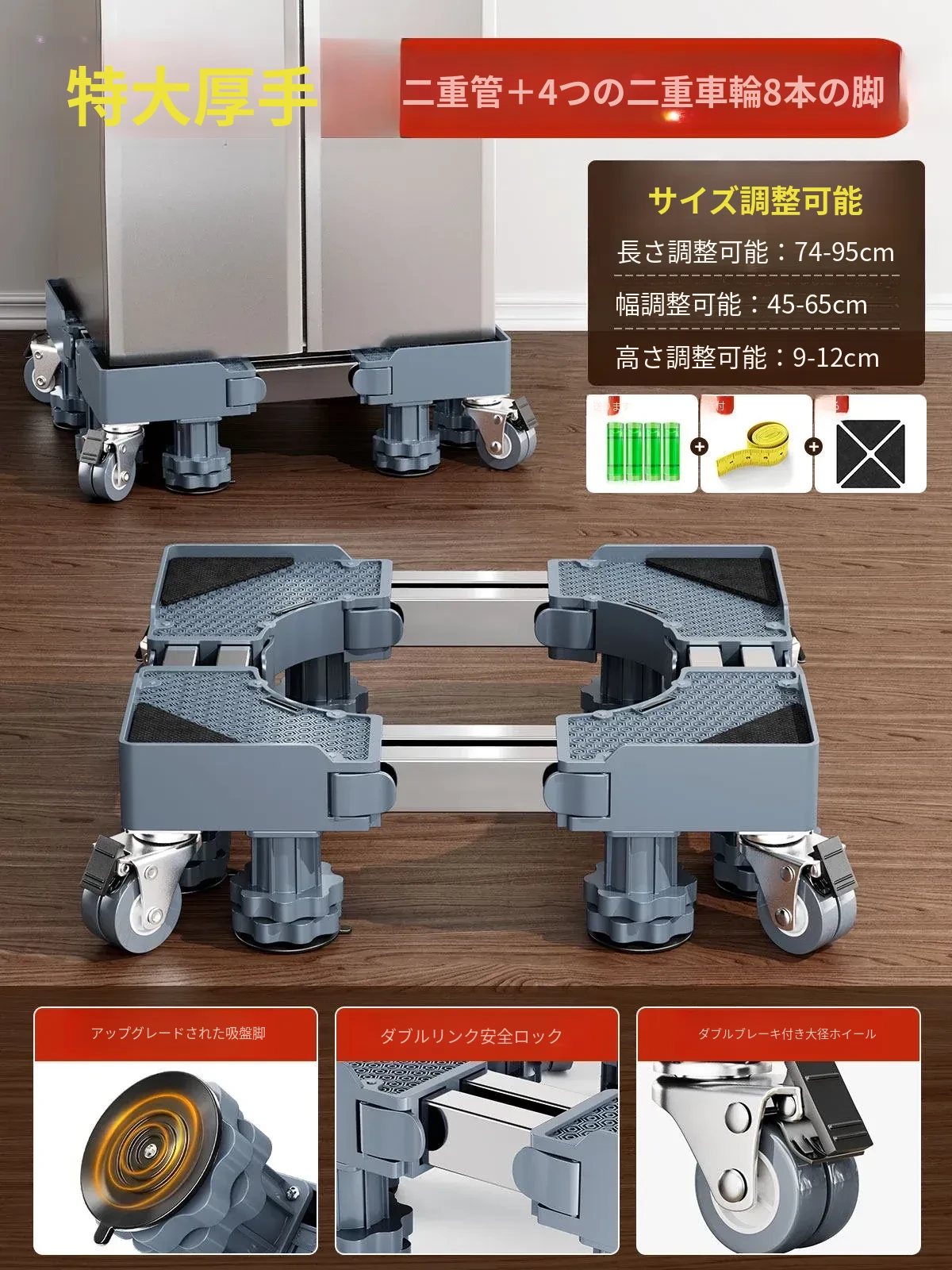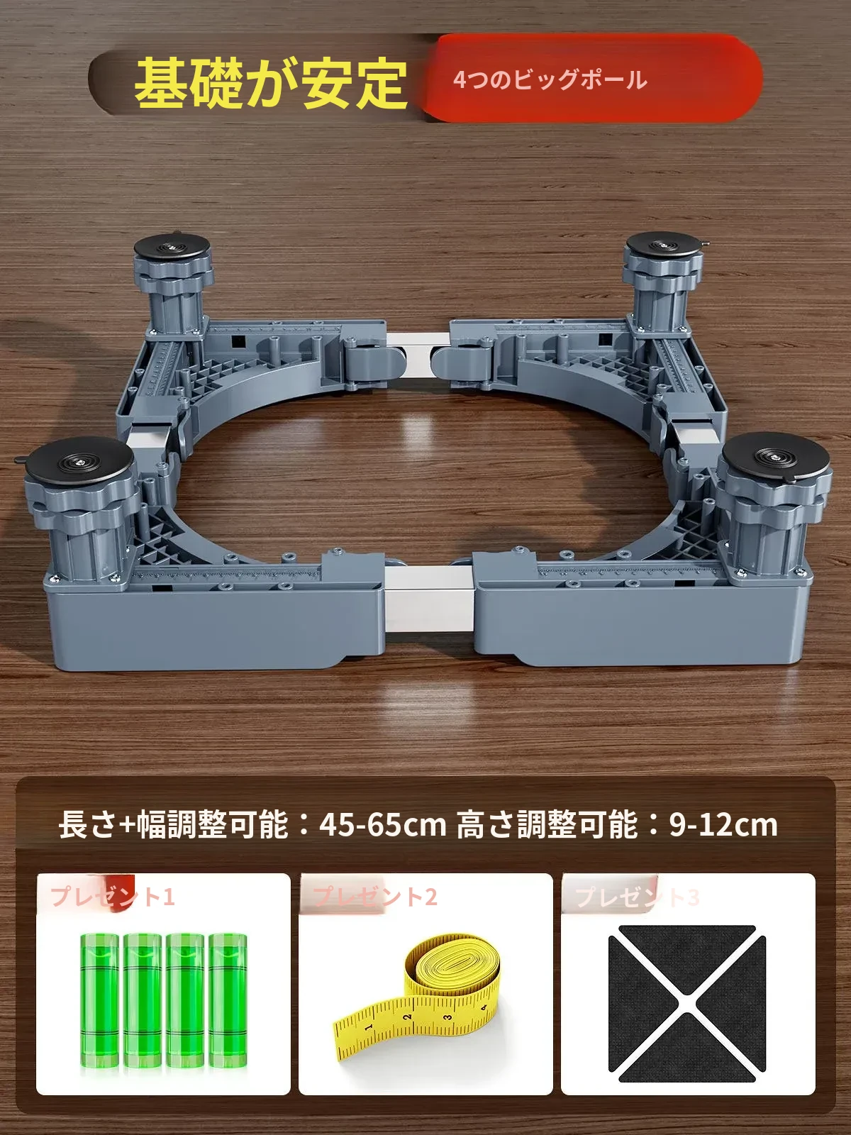 パナソニック洗濯機用万能ベース 自動移動キャスター付き 高さ調整可能 滑らかな振動吸収 収納スペースを確保!洗濯をより快適にするアイテムです!