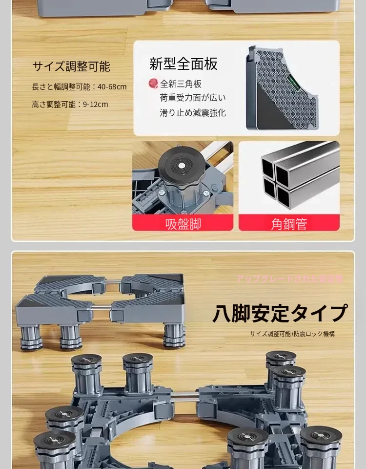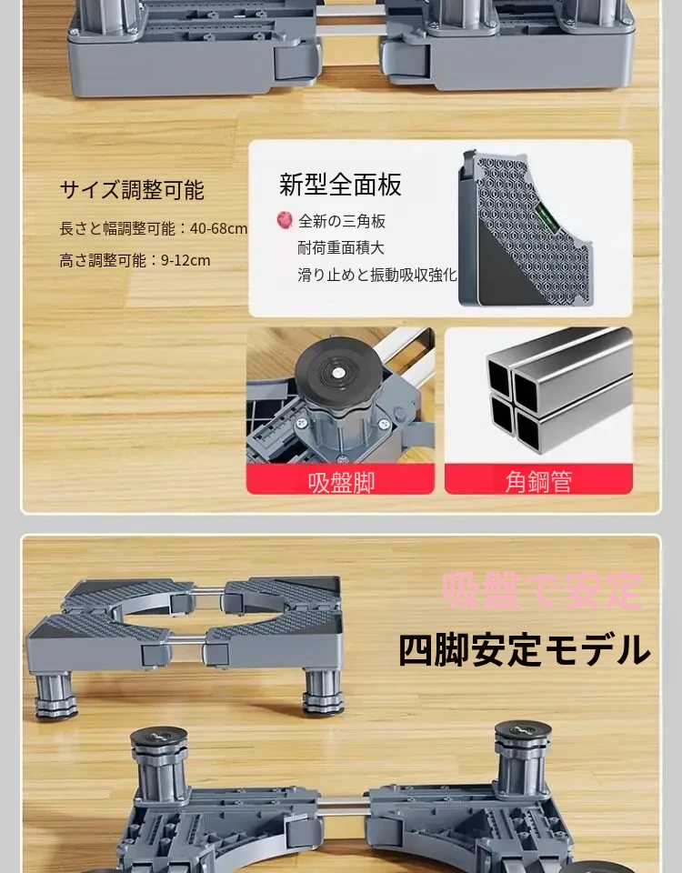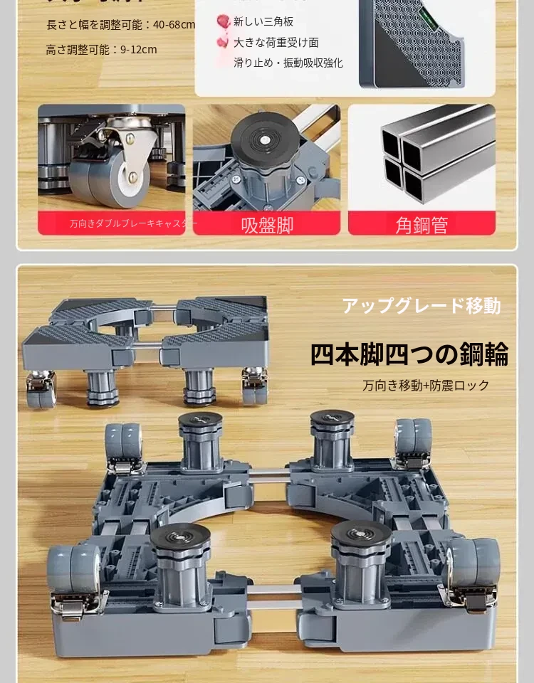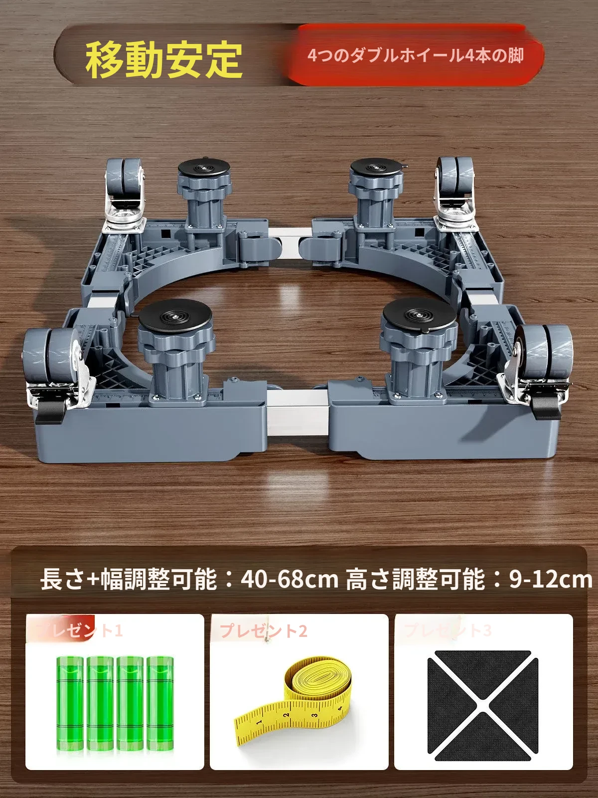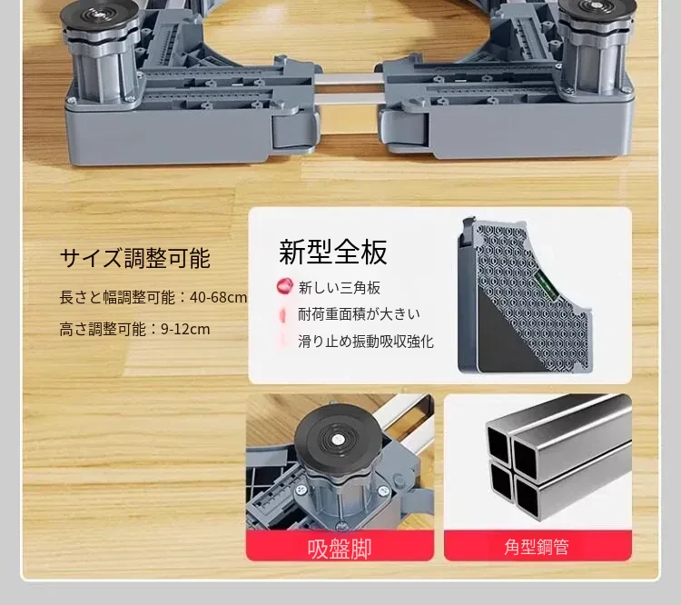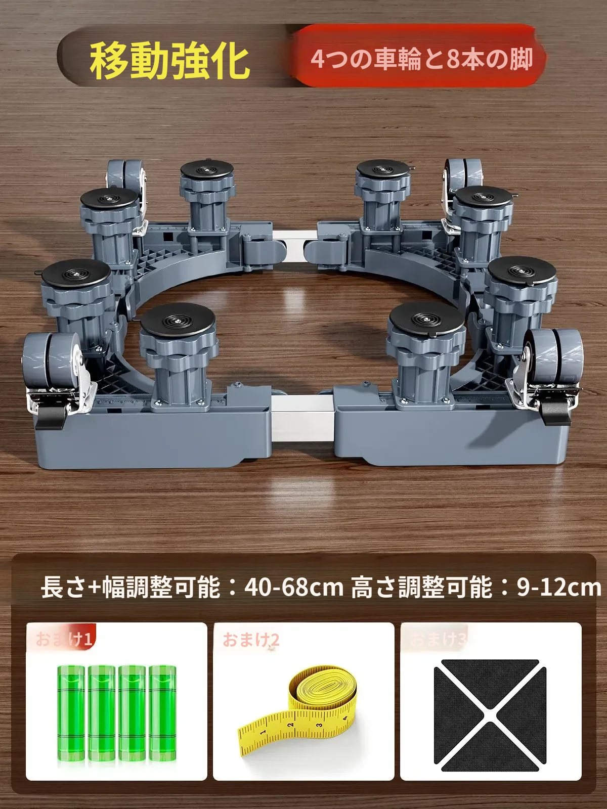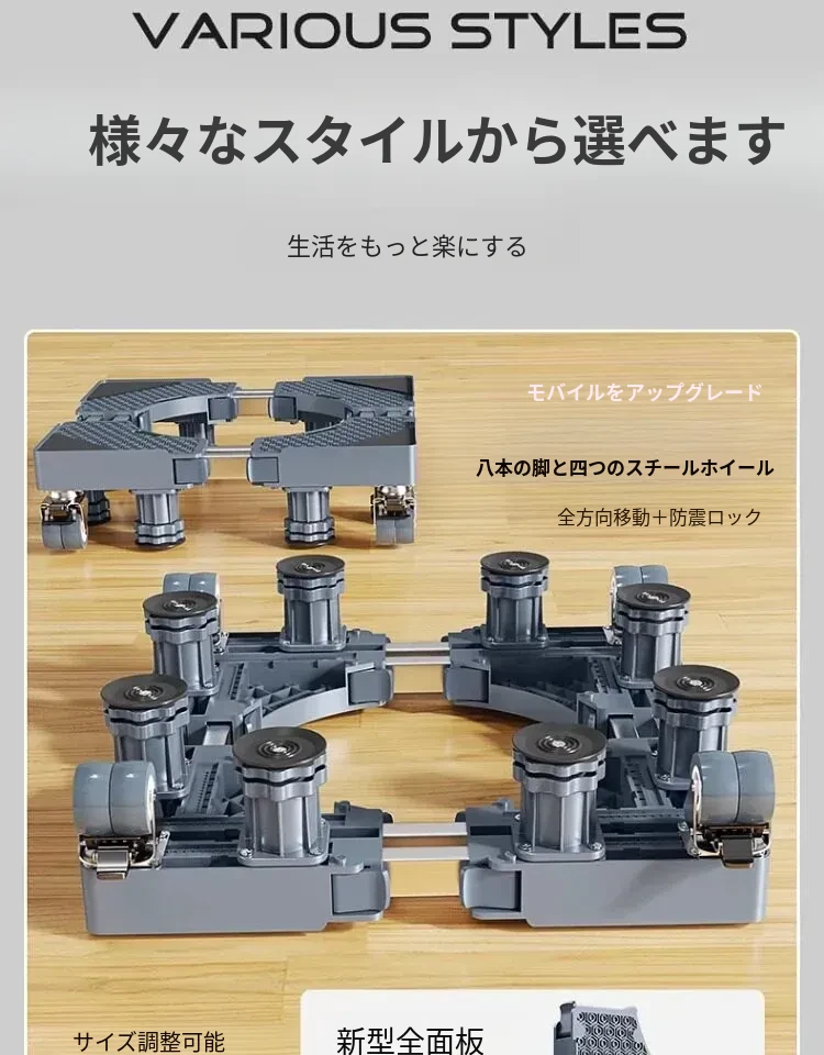 パナソニック洗濯機用万能ベース 自動移動キャスター付き 高さ調整可能 滑らかな振動吸収 収納スペースを確保!洗濯をより快適にするアイテムです!