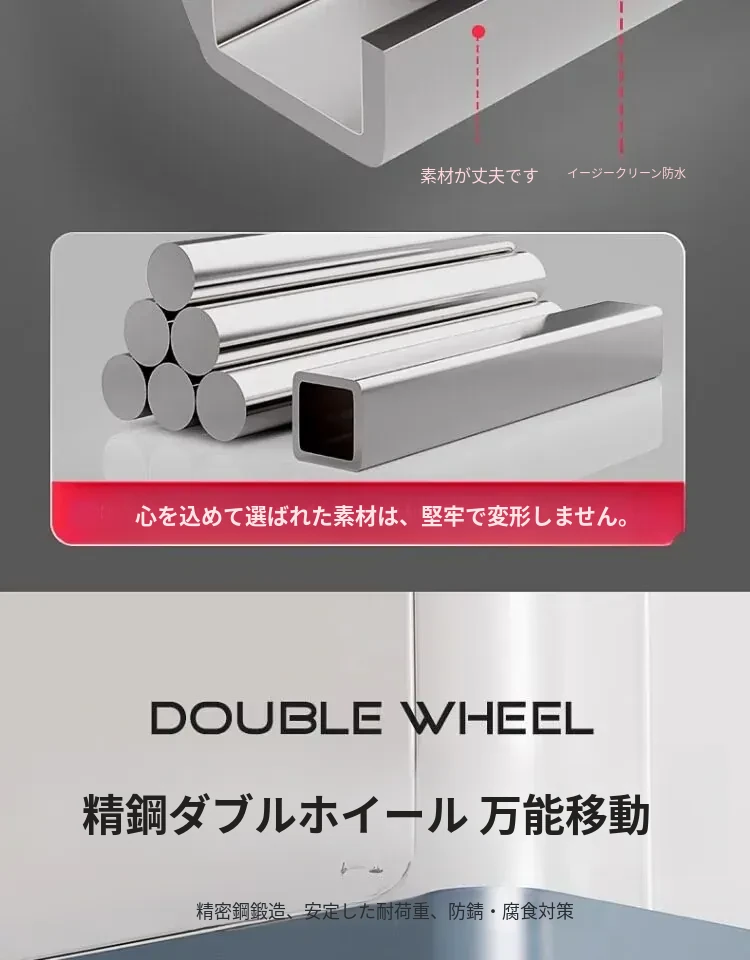 【アップグレード安定タイプ】二重管4ダブルホイール4脚+キャスター+ブレーキ防滑