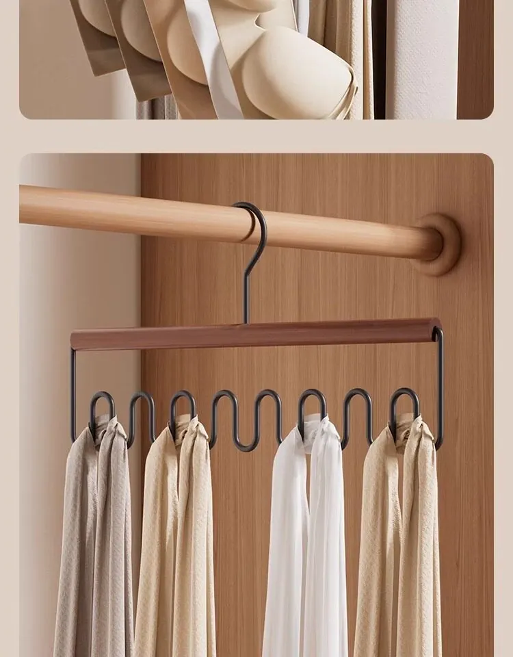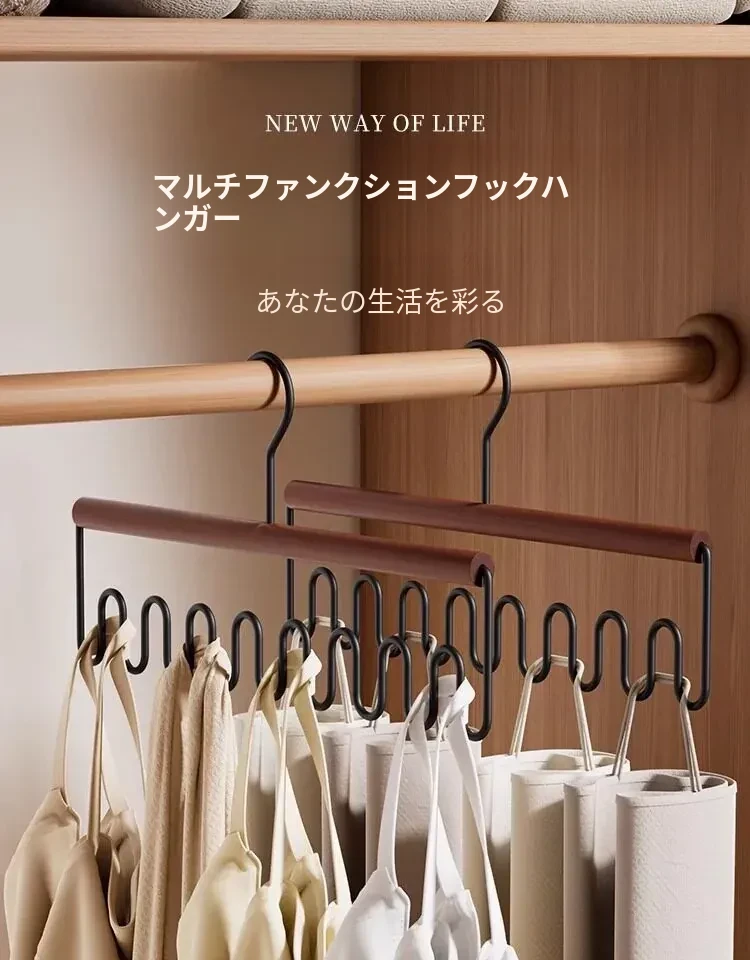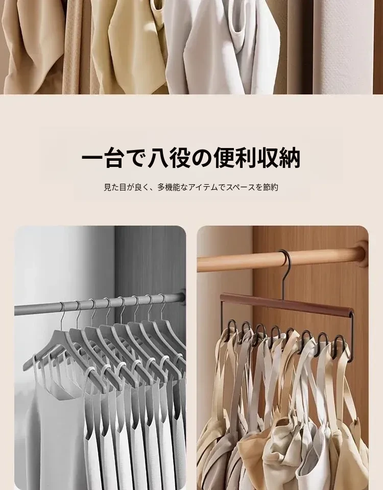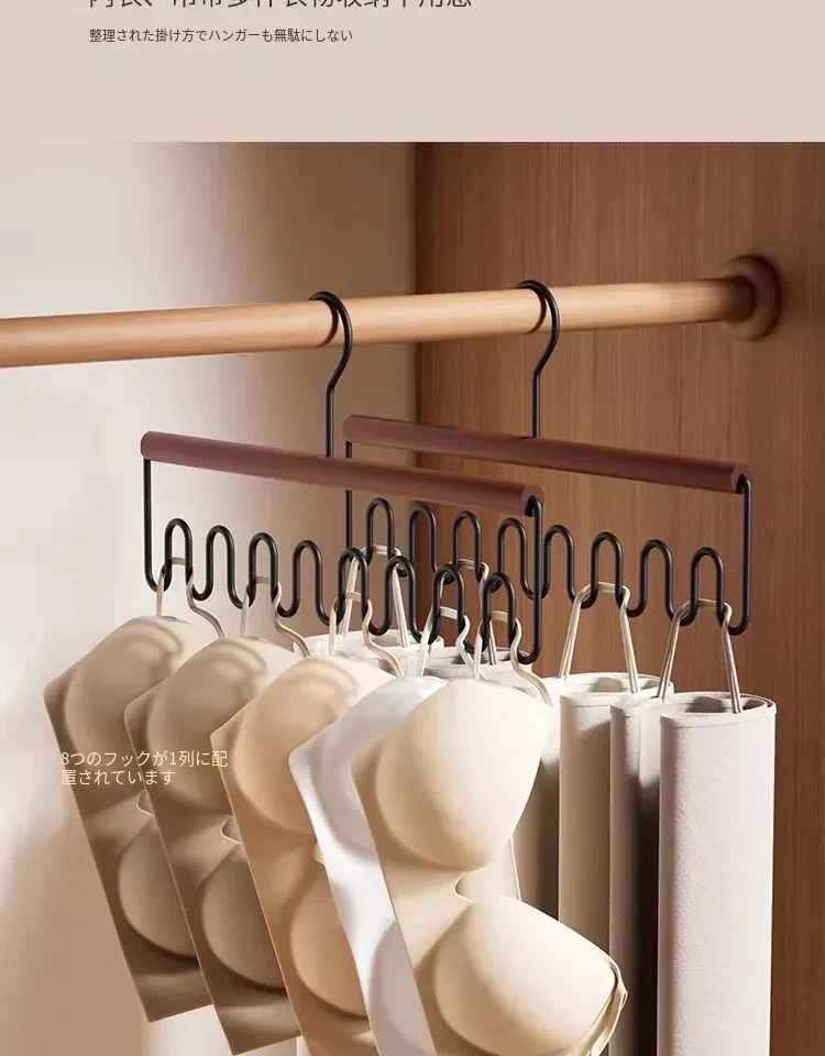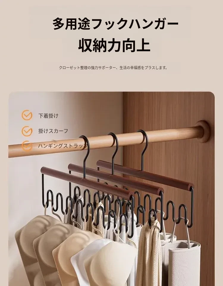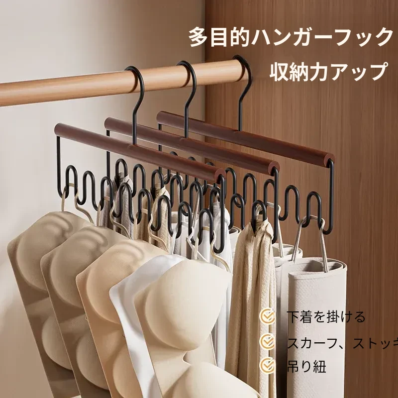 整理師おすすめ!ベイマツ製マルチファンクションハンガー - 1フックで複数掛け可能な下着・キャミソール用、クローゼット内の収納革命!ラグジュアリーなデザインで、あなたの衣類整理をサポートします。