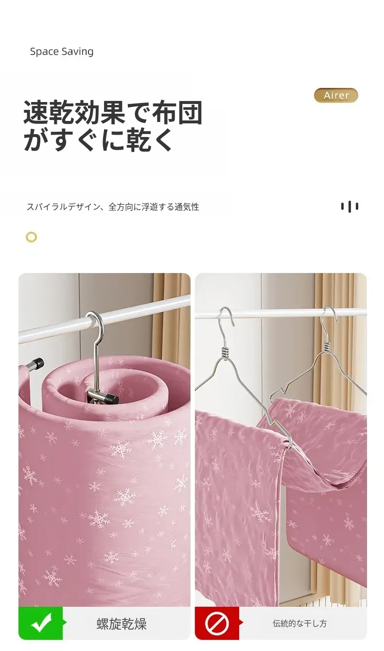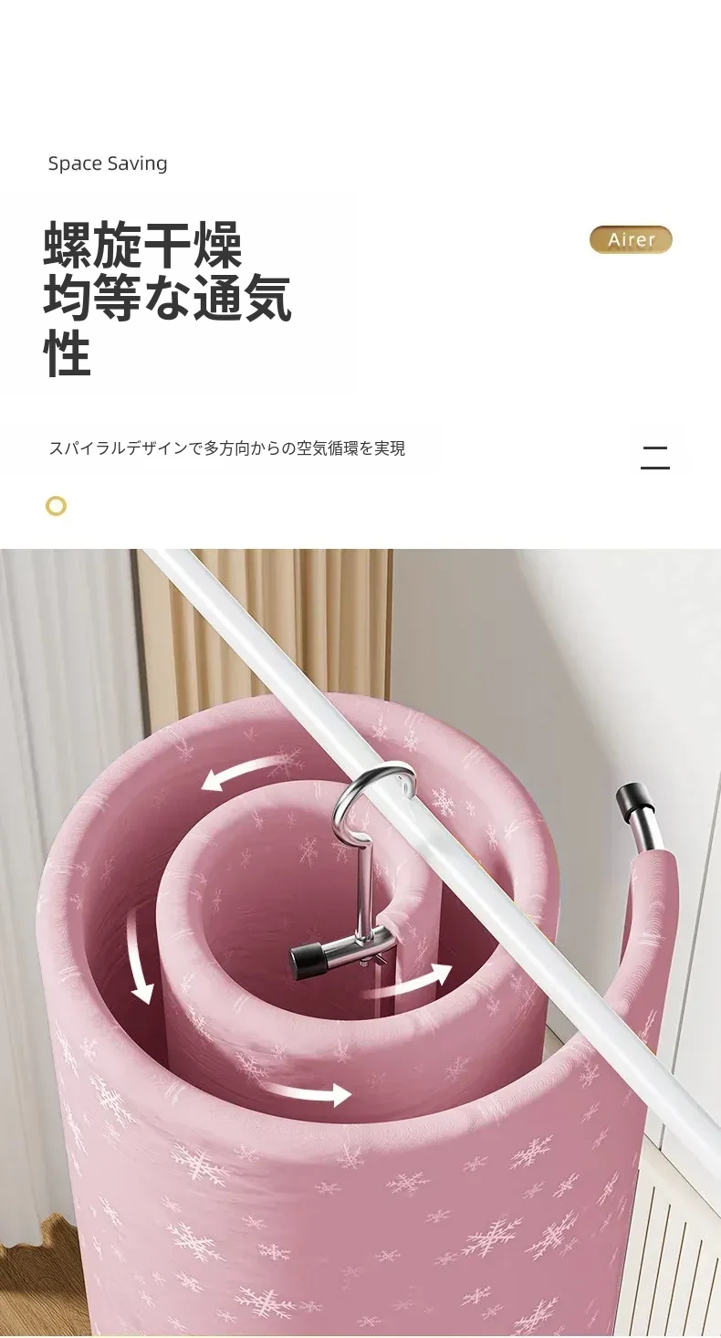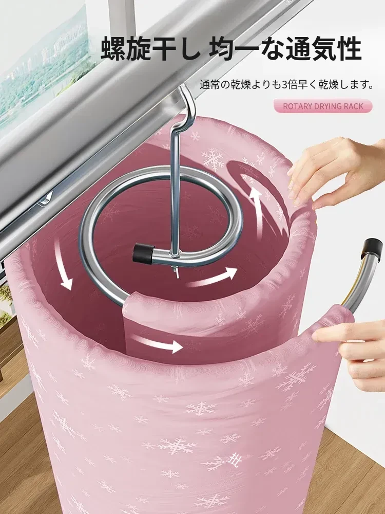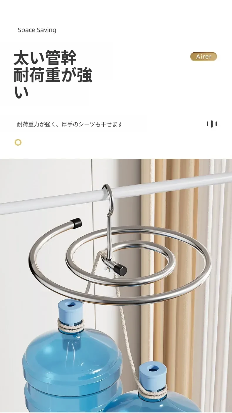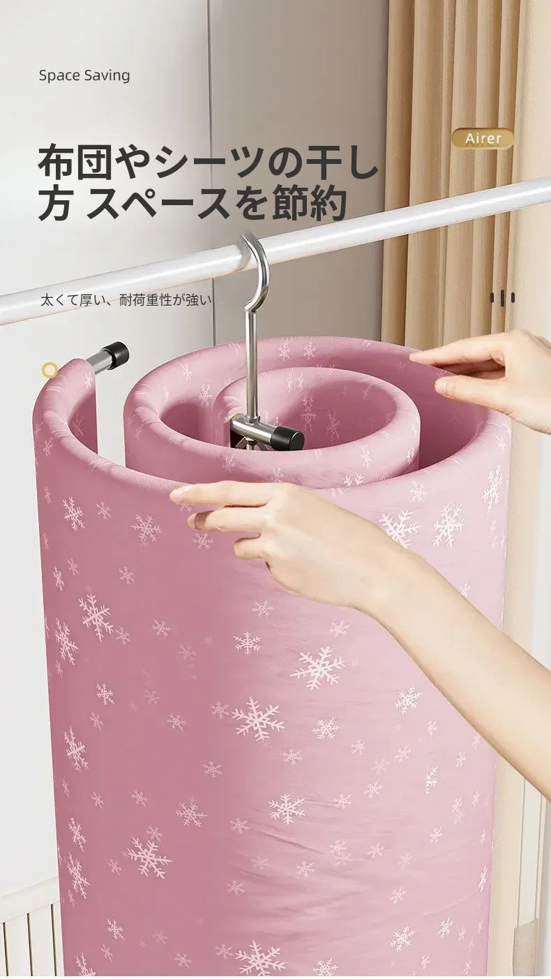 布団干しに最適!螺旋式多機能バルコニー用衣類干しラック - 丸型デザインでシーツや布団カバーも楽々乾燥!家庭にぴったりな便利アイテム!