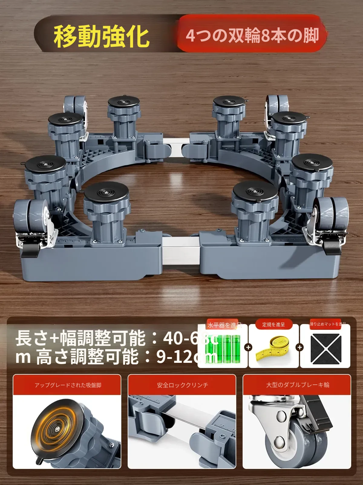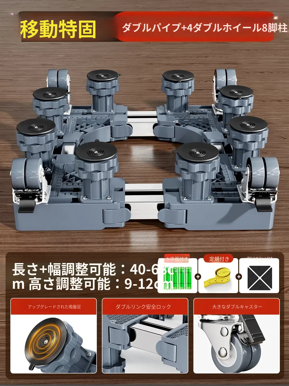【大幅強化プレミアムタイプ】4双輪ダブルブレーキ+ダブルパイプ+8脚柱+ダブル防震ロック