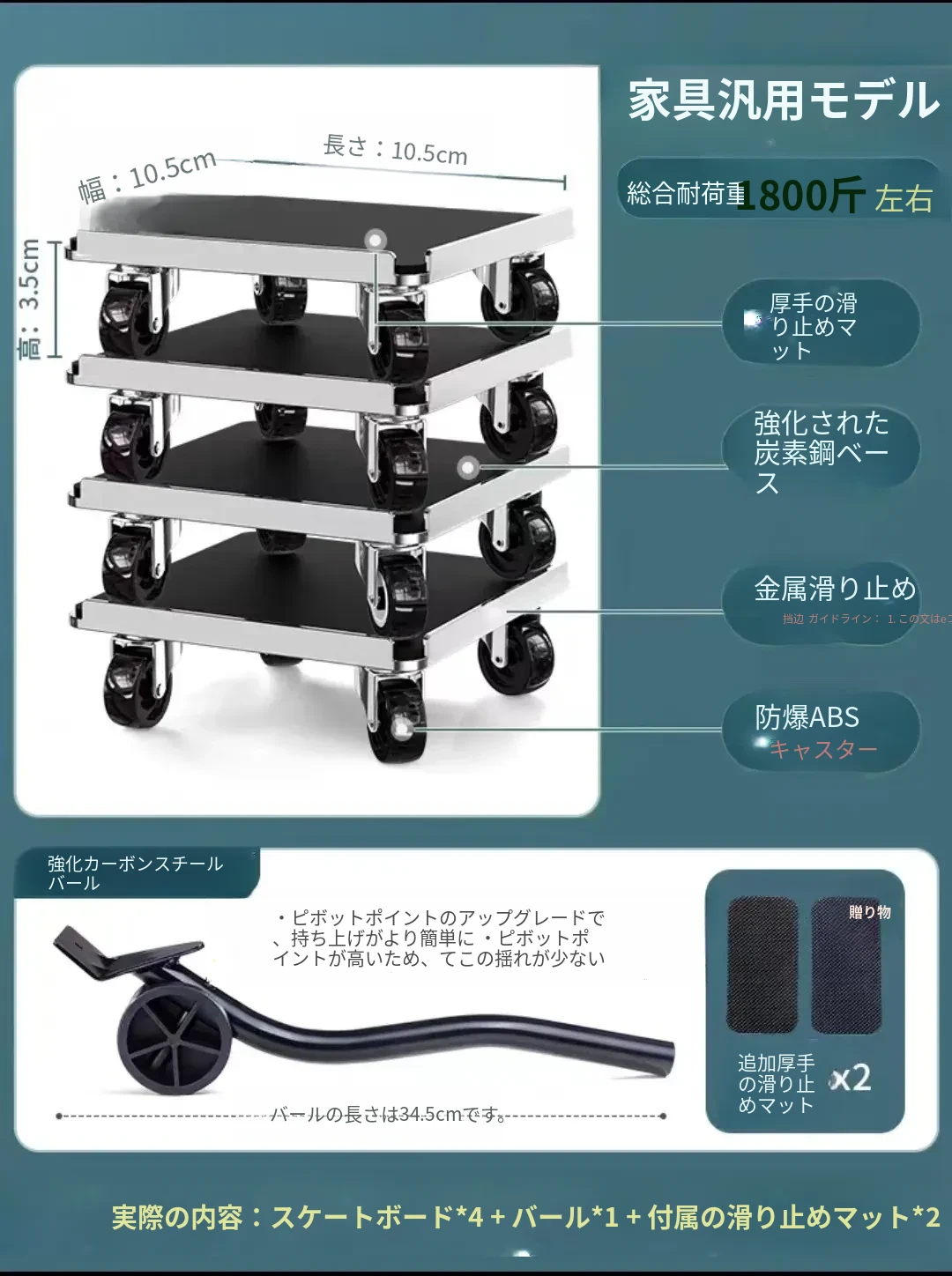 大きな万向四角【耐荷重約1800斤】脱落防止滑り止め