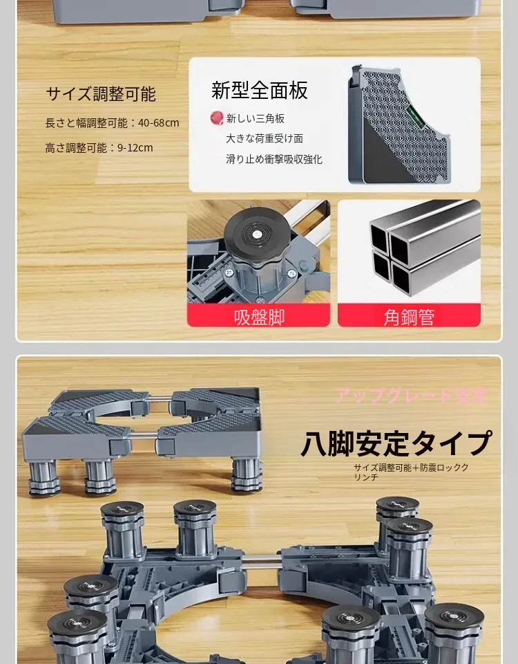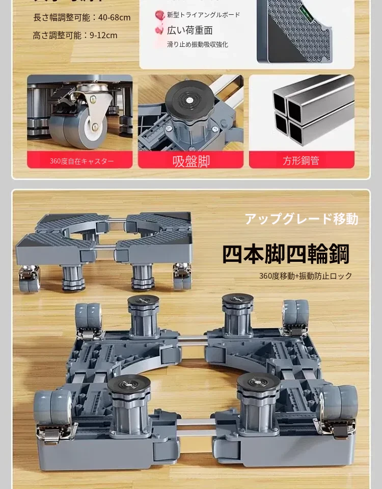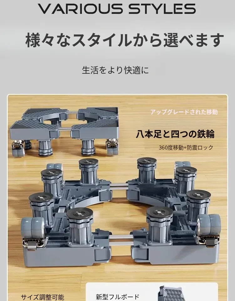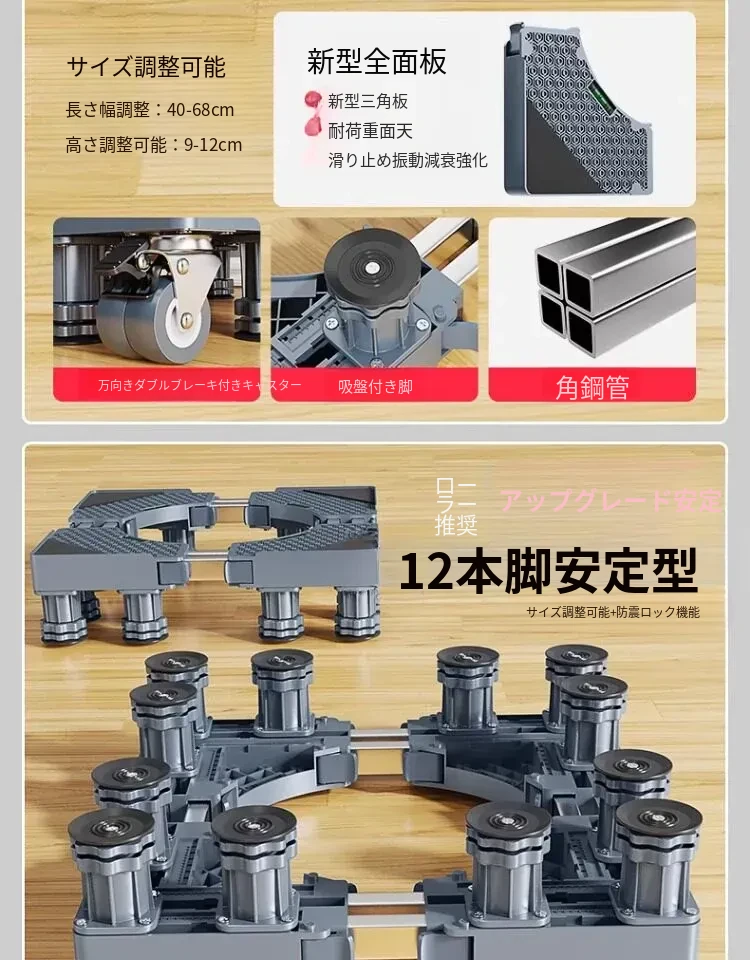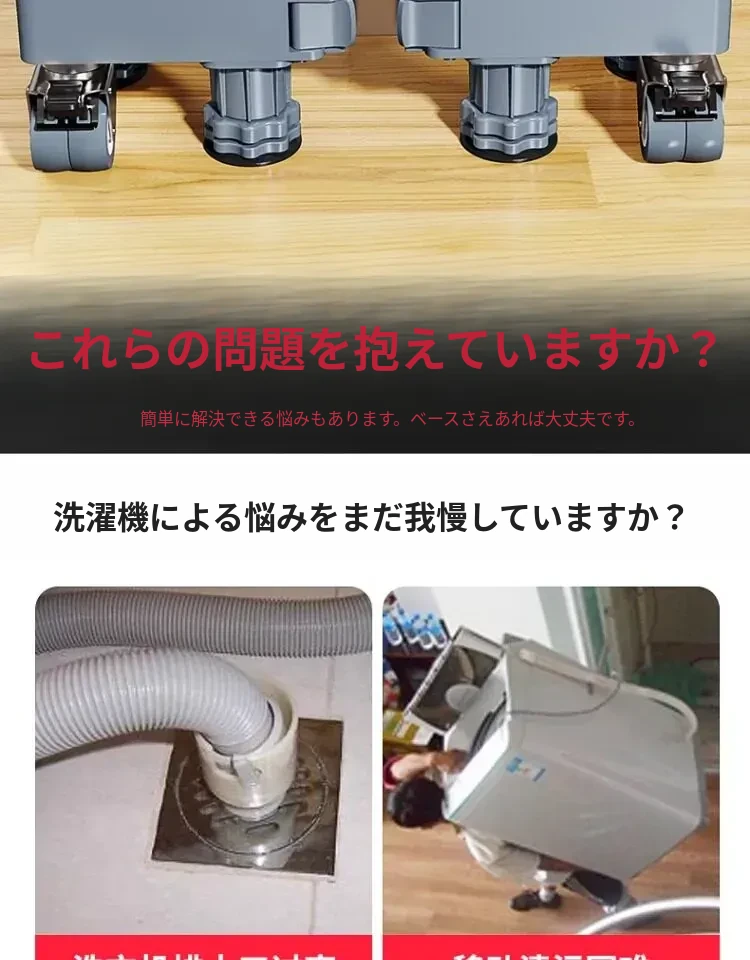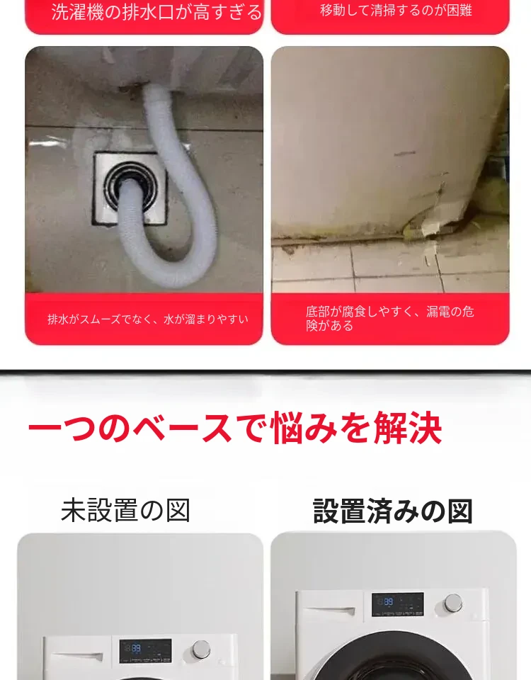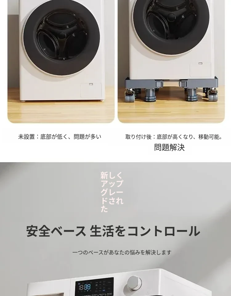 シーメンス洗濯機用移動式フットパッド付きキャスター台、耐水・防震設計の専用スタンドで洗濯機を高くし、便利さと安定性を実現!