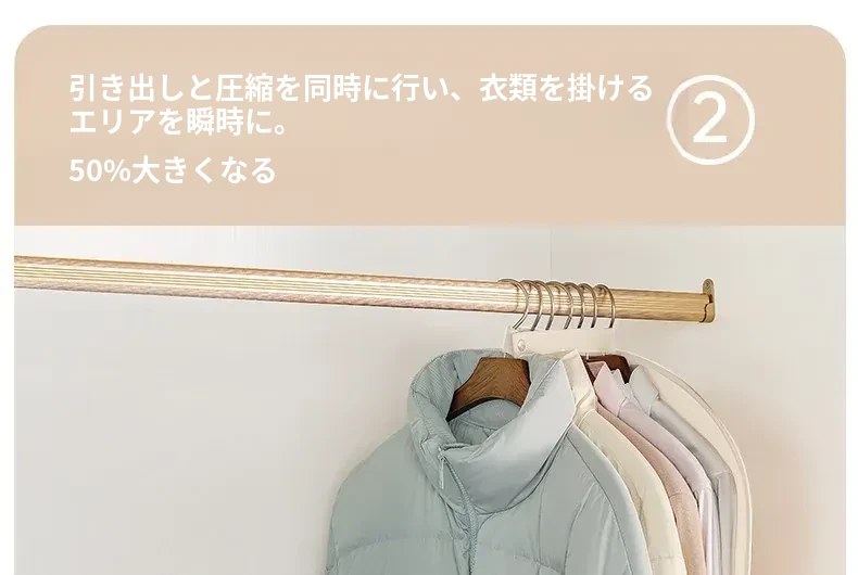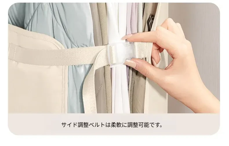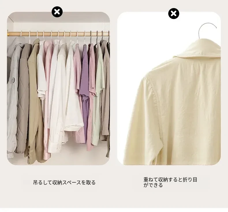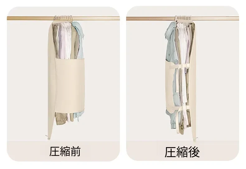 ナッツベージュ-L-薄手の衣類30着/ダウンジャケット8-10着収納可