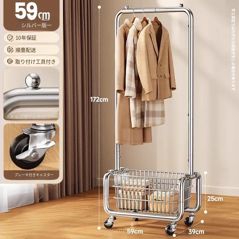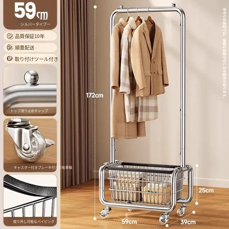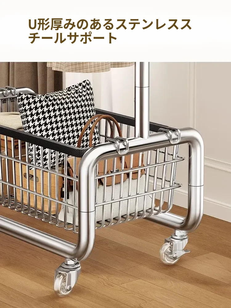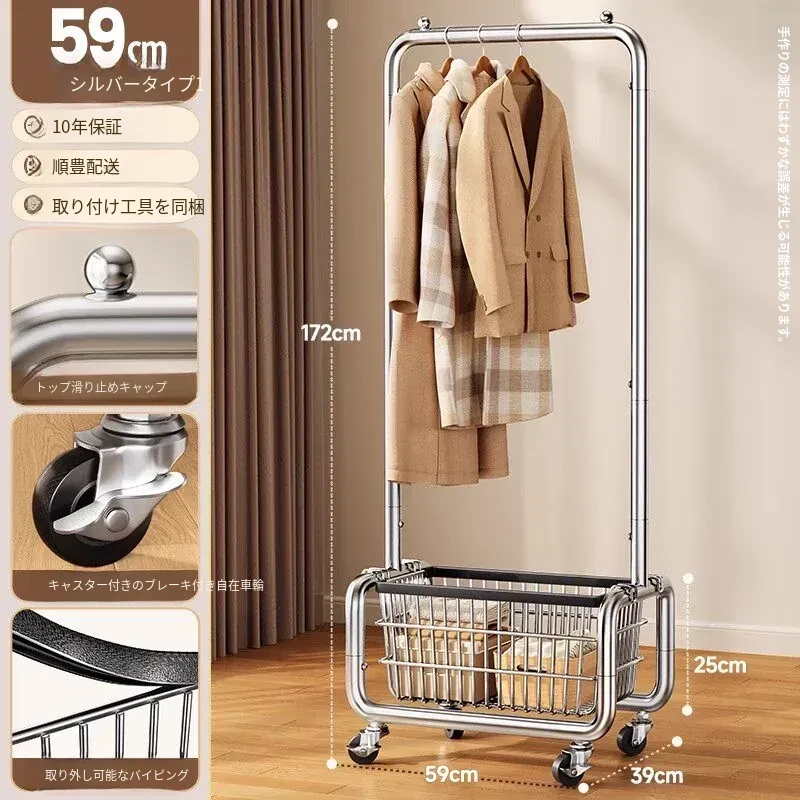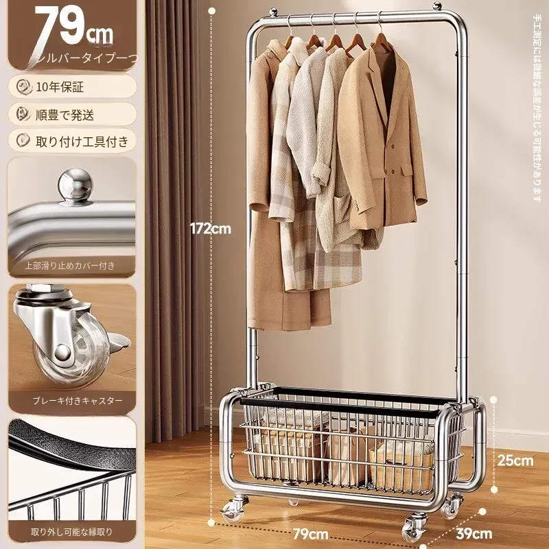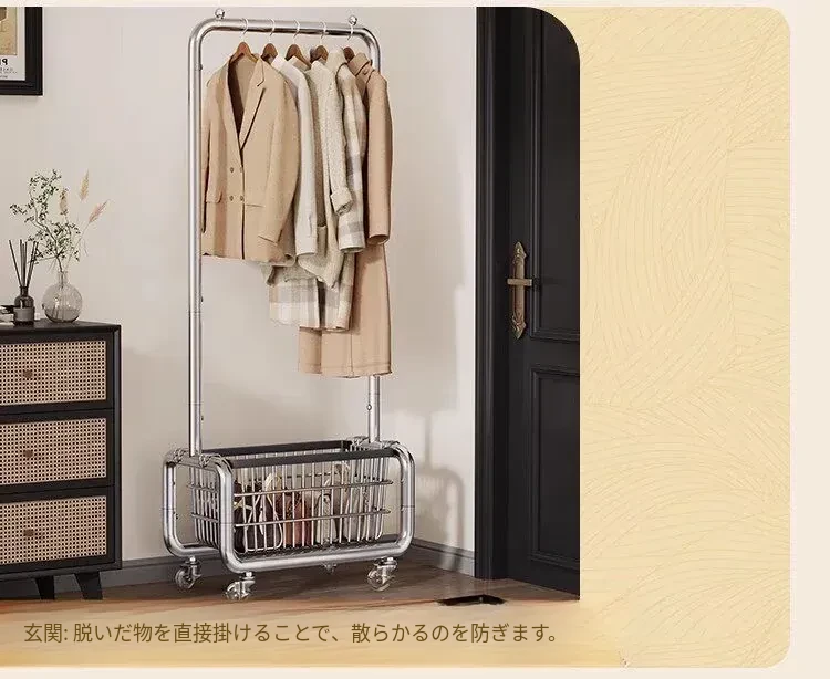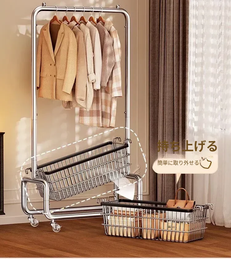 ステンレス製のベッドルーム用衣類ハンガー - 家庭用の移動可能なコートラック!丈夫でスタイリッシュなデザインで、衣類や帽子をすっきりと整理。おしゃれな空間を演出し、使いやすさ抜群!