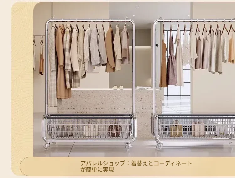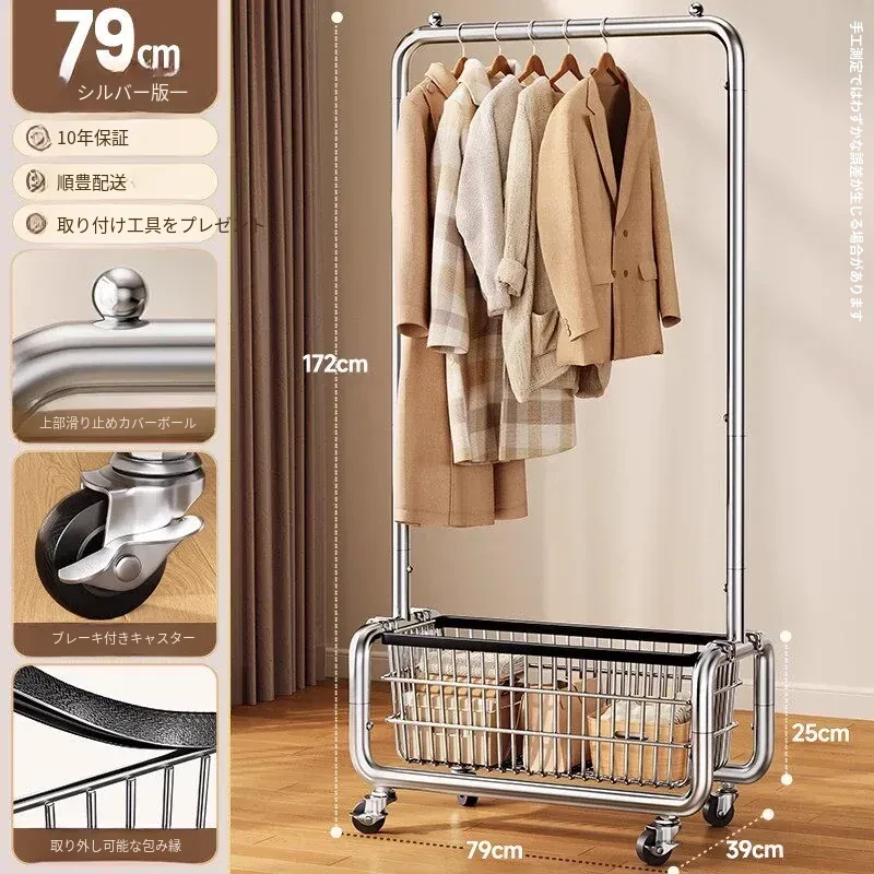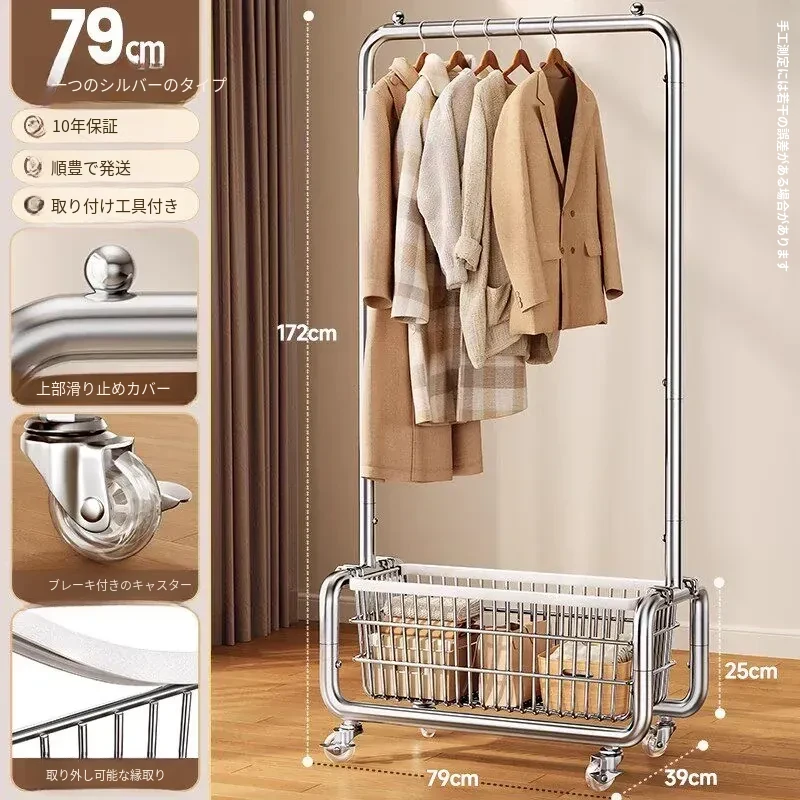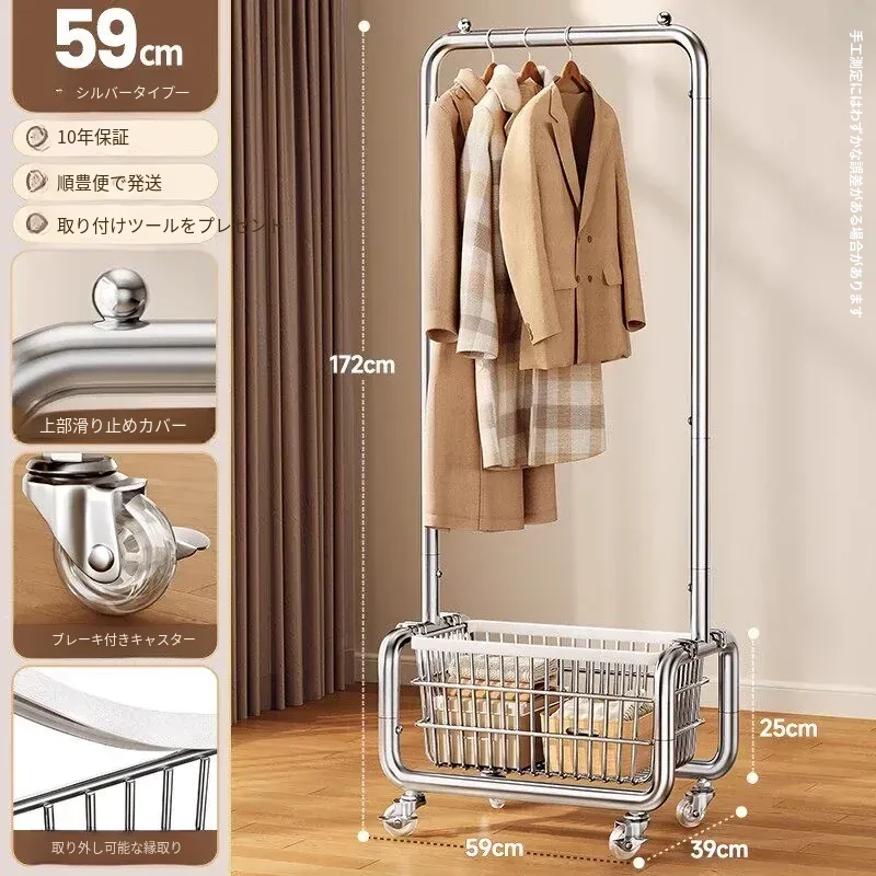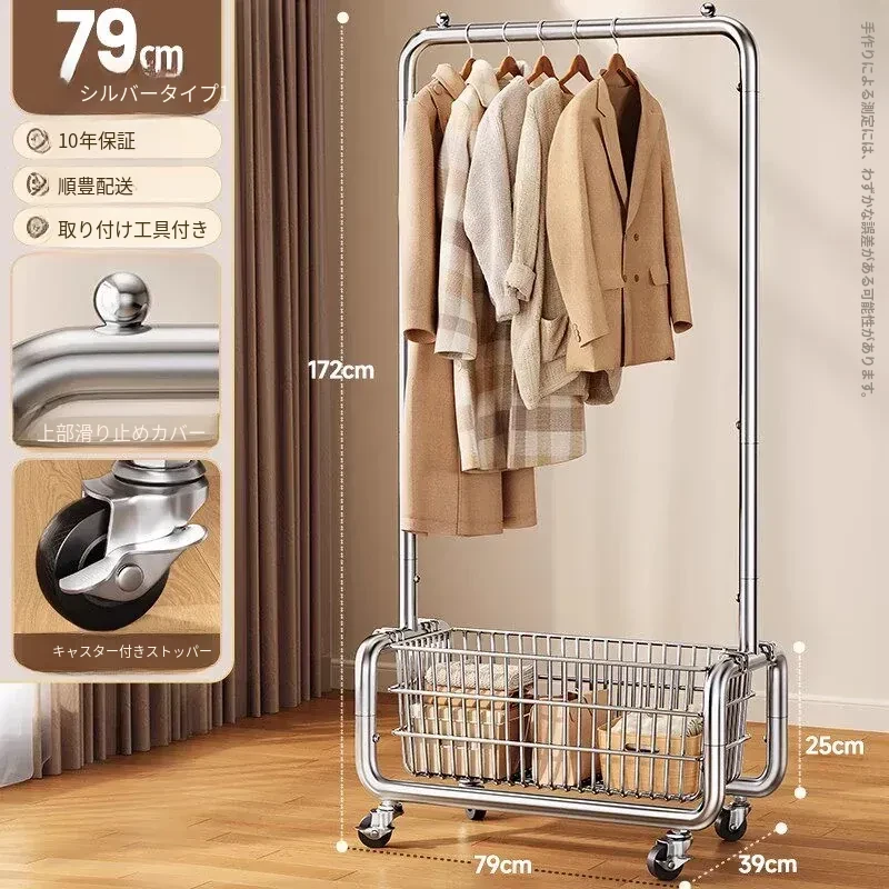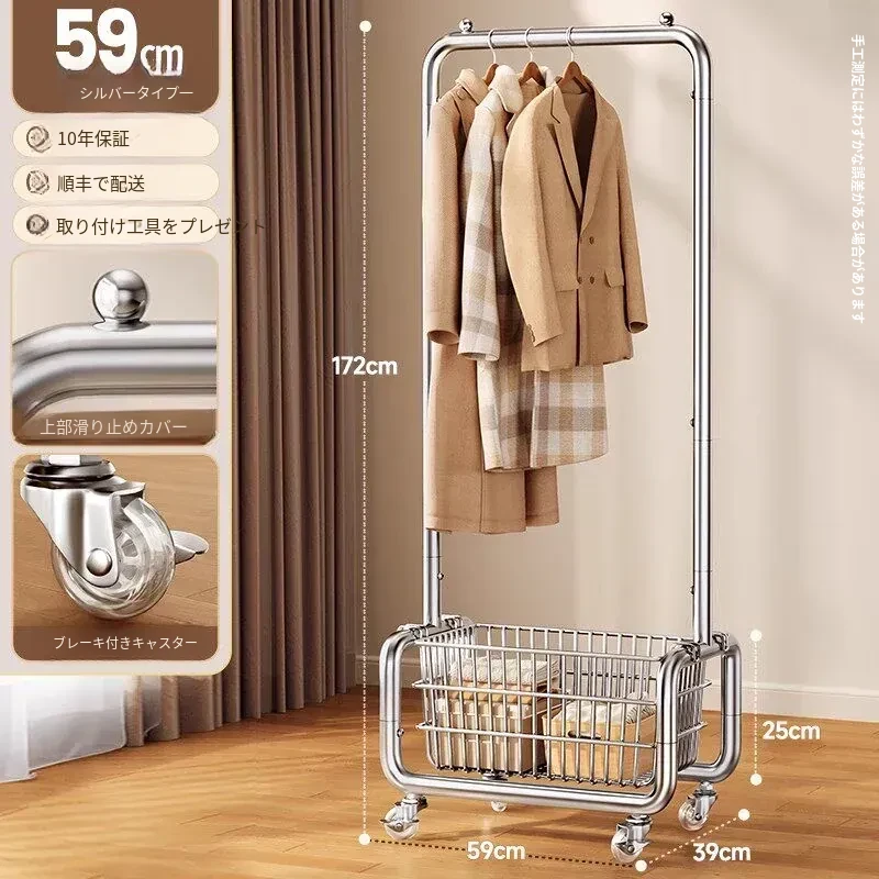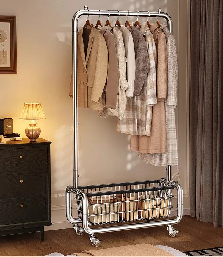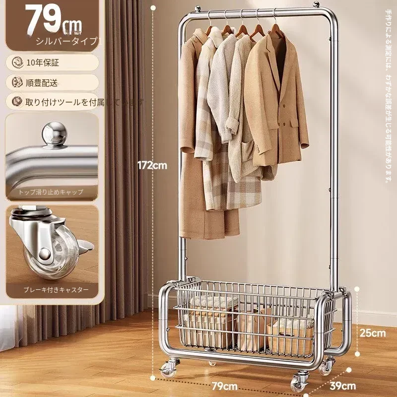 ステンレス製のベッドルーム用衣類ハンガー - 家庭用の移動可能なコートラック!丈夫でスタイリッシュなデザインで、衣類や帽子をすっきりと整理。おしゃれな空間を演出し、使いやすさ抜群!