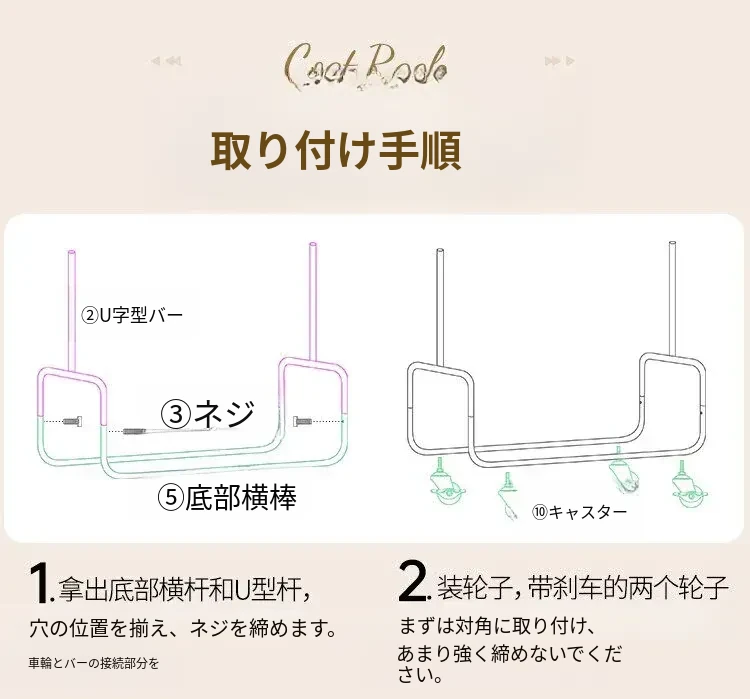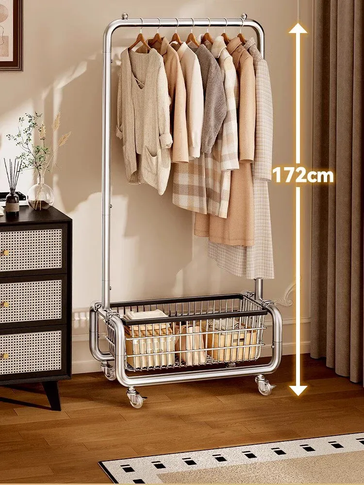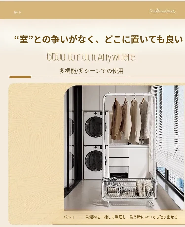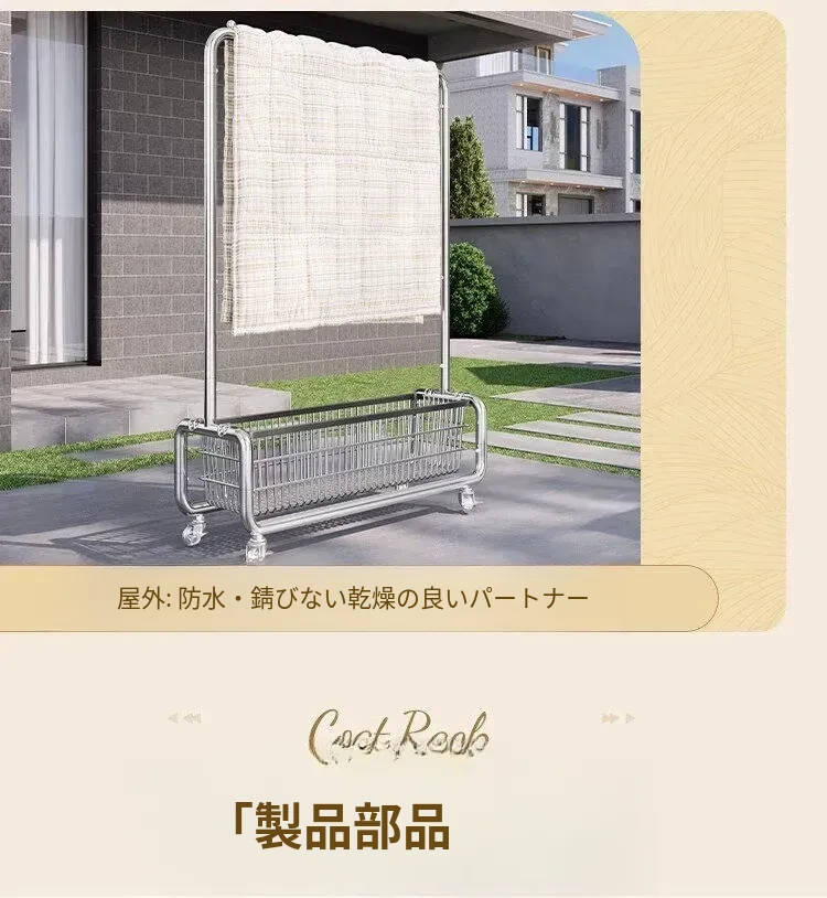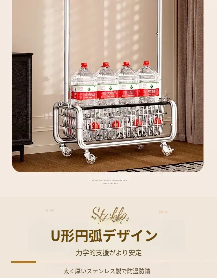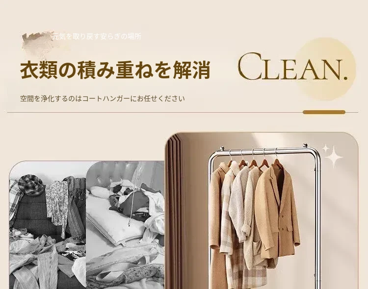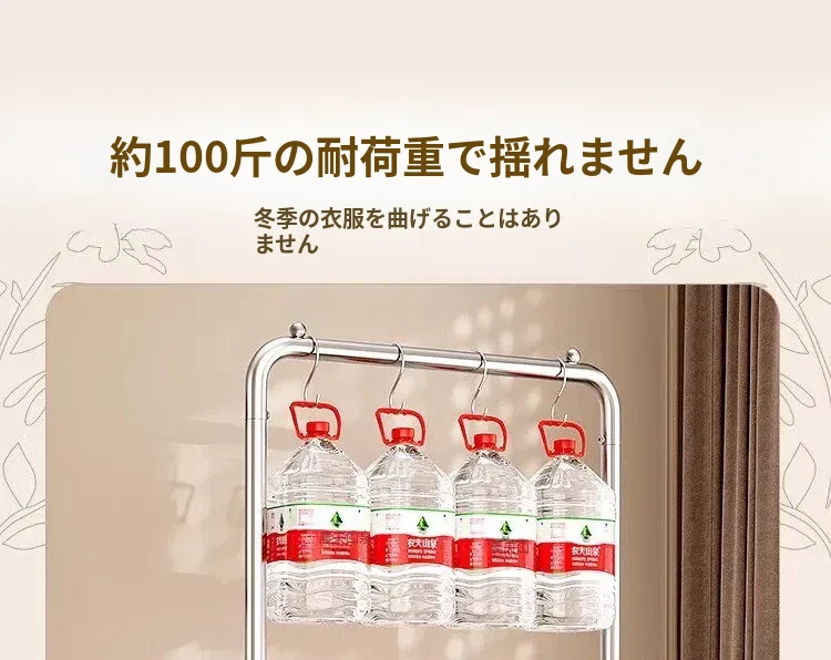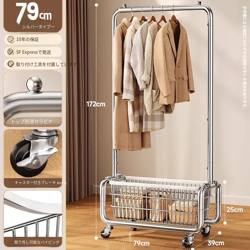 ステンレス製のベッドルーム用衣類ハンガー - 家庭用の移動可能なコートラック!丈夫でスタイリッシュなデザインで、衣類や帽子をすっきりと整理。おしゃれな空間を演出し、使いやすさ抜群!