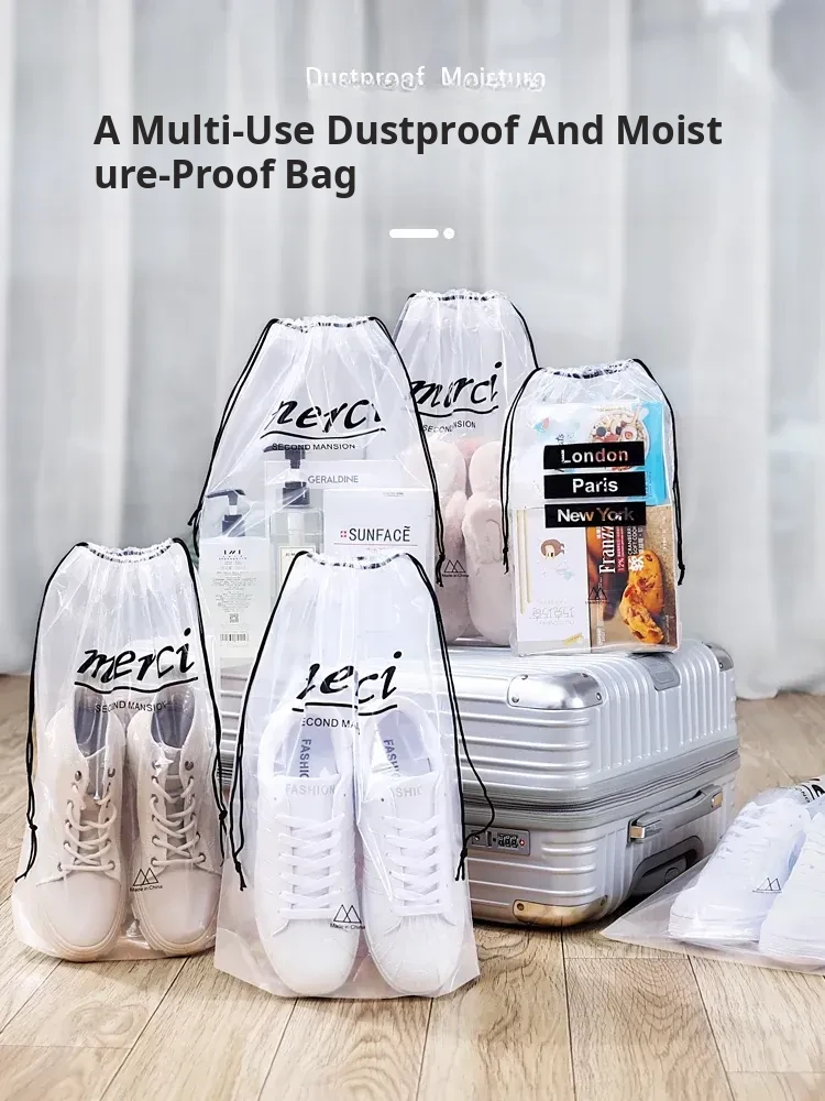 Travel Shoe Storage Bag - Waterproof, Dustproof, and Moisture-Proof Pouch for Organizing Shoes at Home and on the Go - Transparent Drawstring Design for Easy Access and Packing