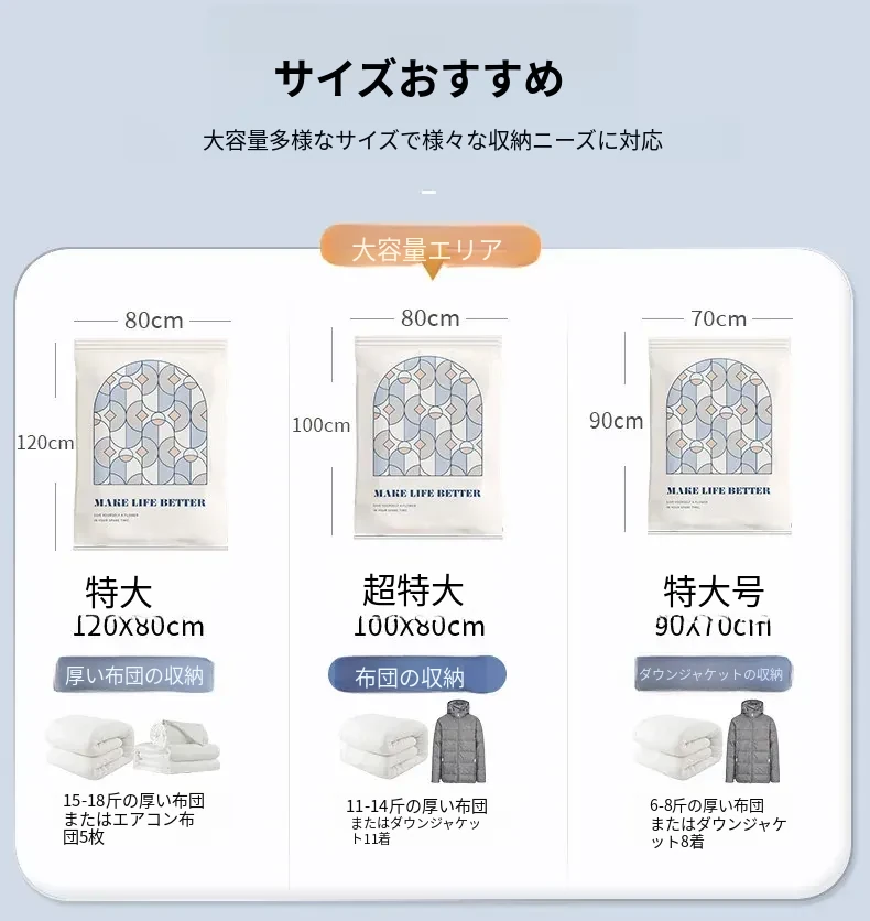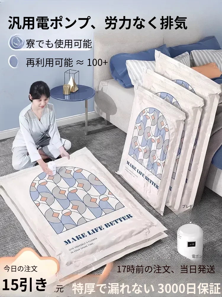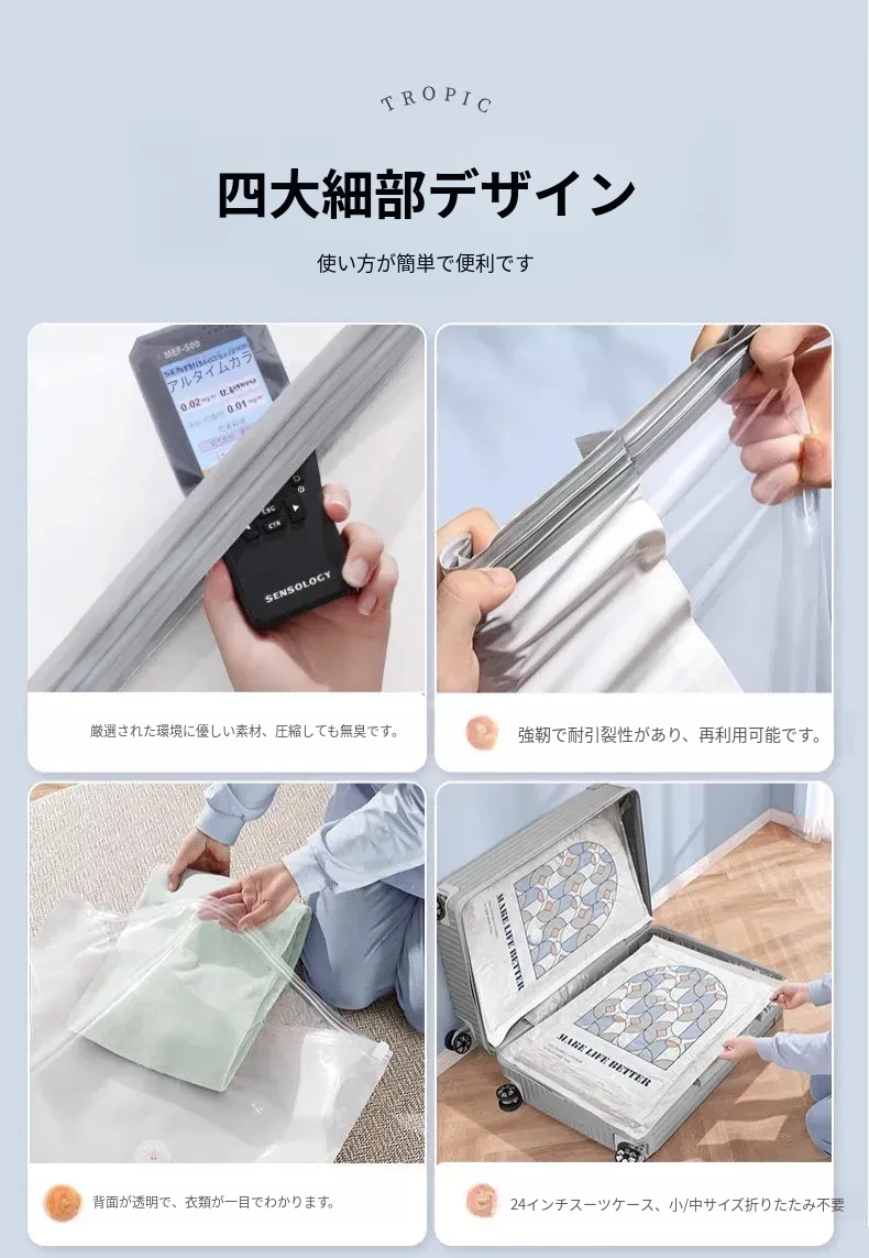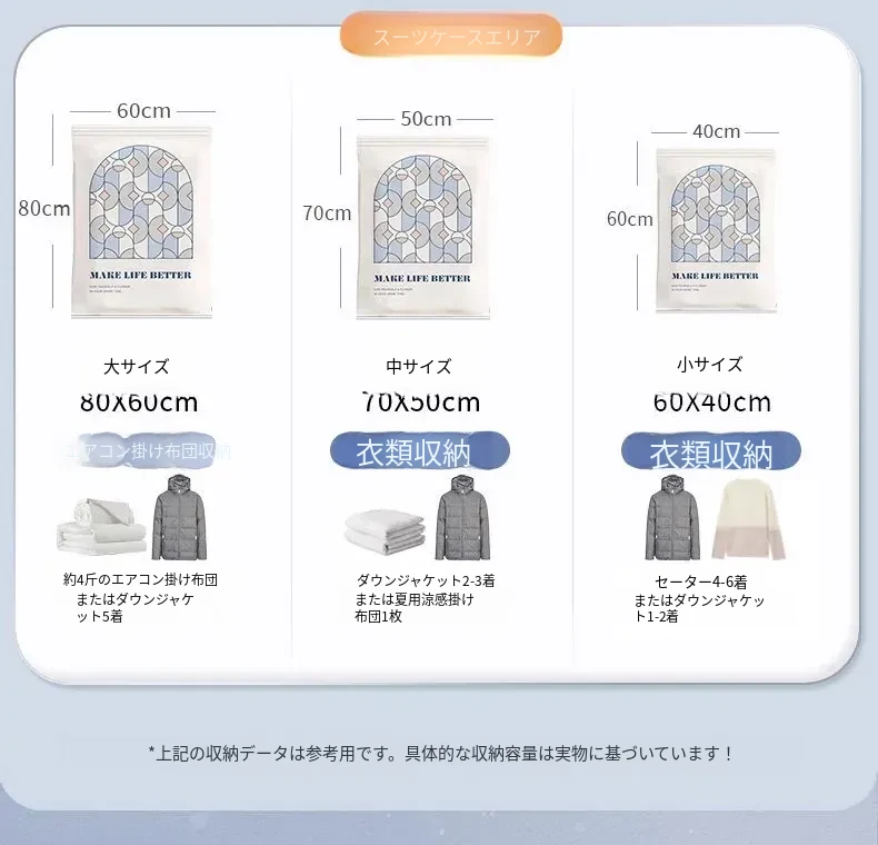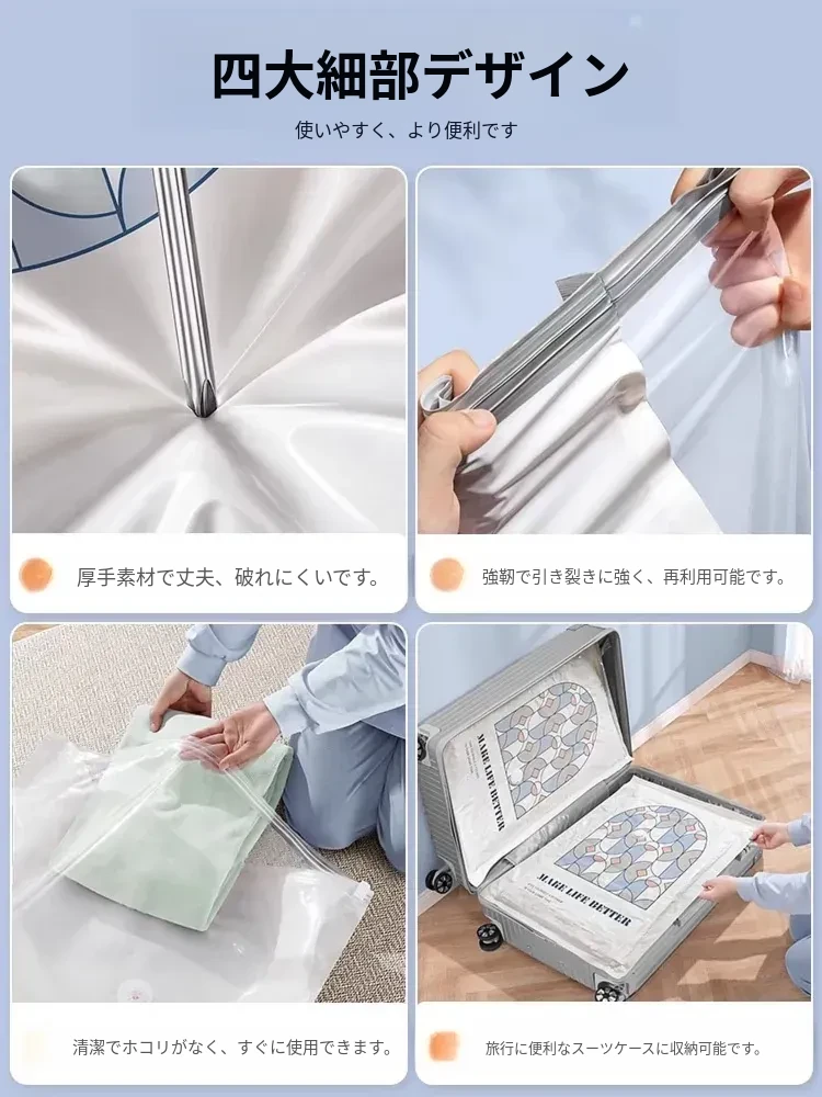真空圧縮袋 - 衣類や布団の収納に最適!旅行にも便利なスーツケース用抽出袋。羽毛服や毛布もコンパクトに収納。スペースを節約し、整理整頓をサポートします!