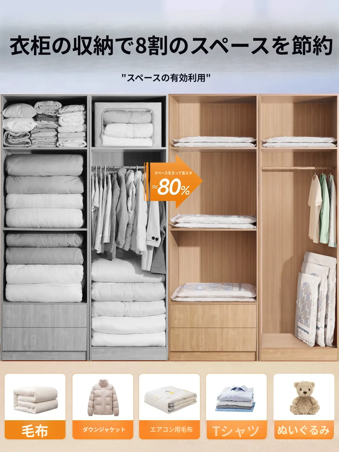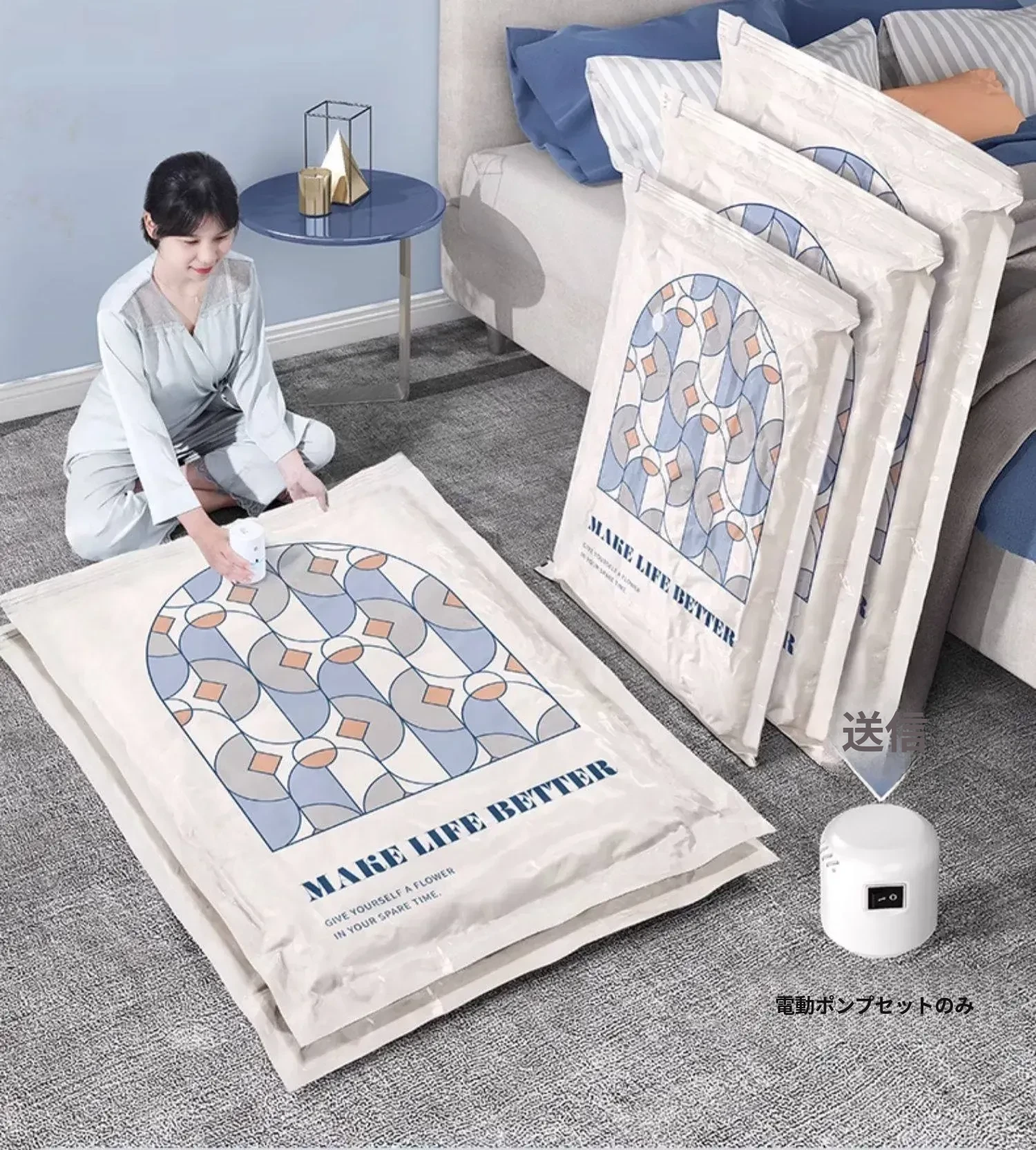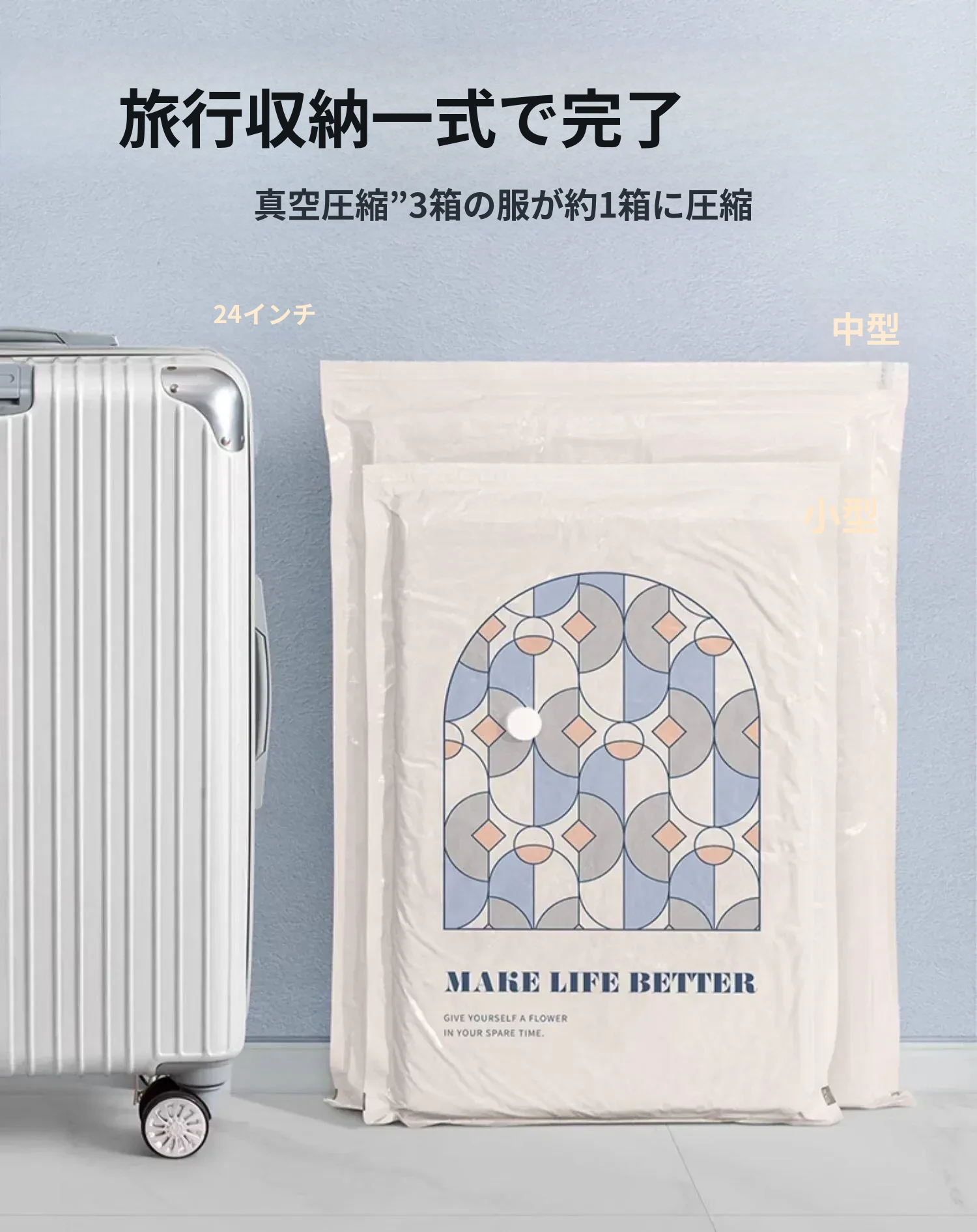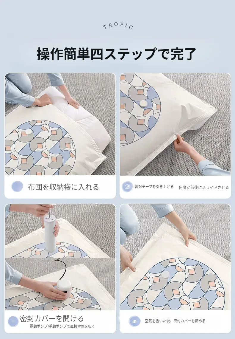 真空圧縮袋 - 衣類や布団の収納に最適!旅行にも便利なスーツケース用抽出袋。羽毛服や毛布もコンパクトに収納。スペースを節約し、整理整頓をサポートします!