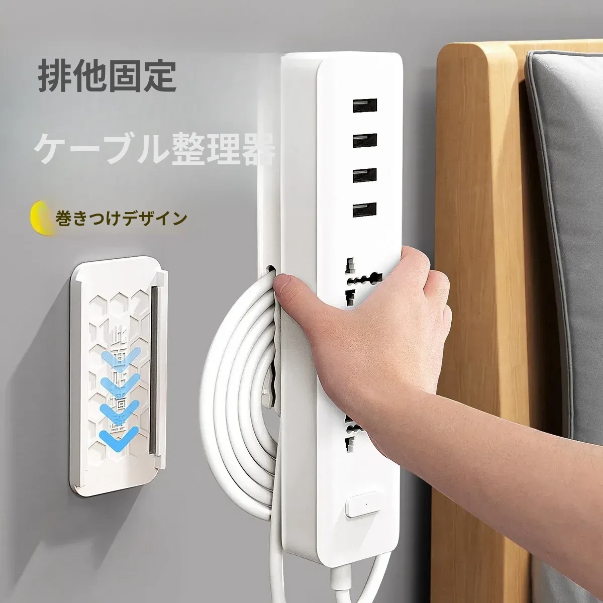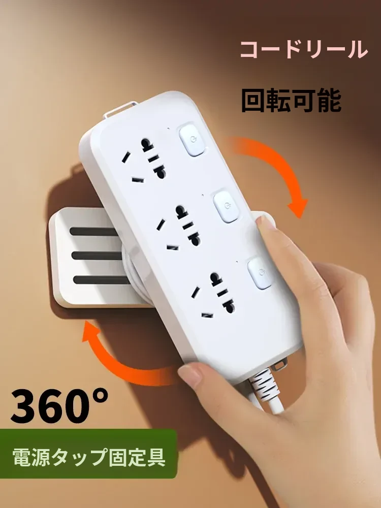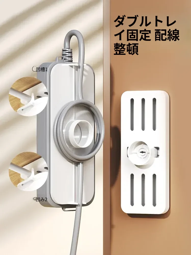 壁掛け用電源タップ固定器 - 簡単取り付け、穴あけ不要!ルーターや電源タップをしっかり固定し、スッキリとした配線を実現。壁に貼るだけで、快適な環境を作り出します!
